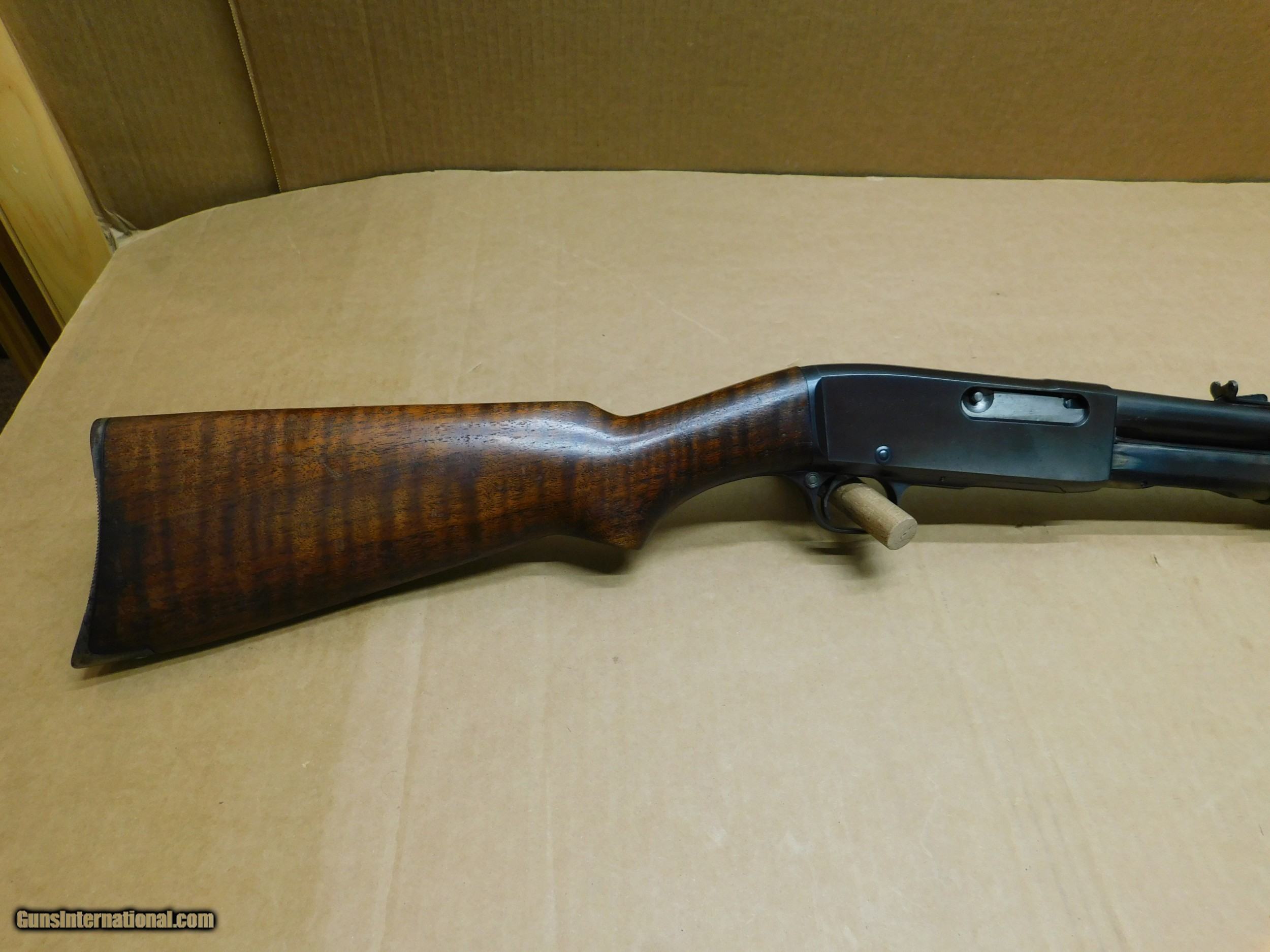 Description: This is a used Remington 141 pump action 35 rem rifle It is a 4+1 shot with a 24" blued barrel mfg 1936-40 SN-16448 SOLD Rifle Caliber: .35 Remington Manufacturer: Remington Model: 141 Serial Number: 16448 Barrel Length: 24 Condition: Used Metal Condition: good Wood Condition: good Bore Condition: good Barrel Type: round Action: Pump Triggers: Standard Stock: Wood Finish: Blue Sights: Open Manufacture Date: 1936-40 |