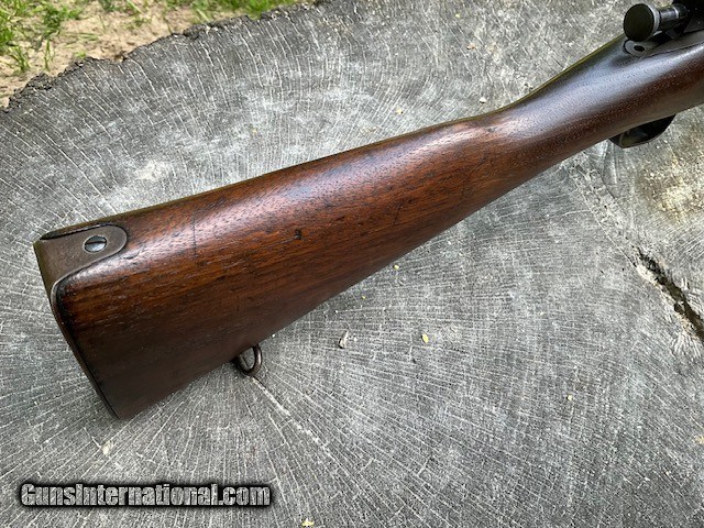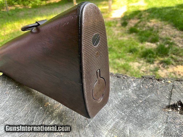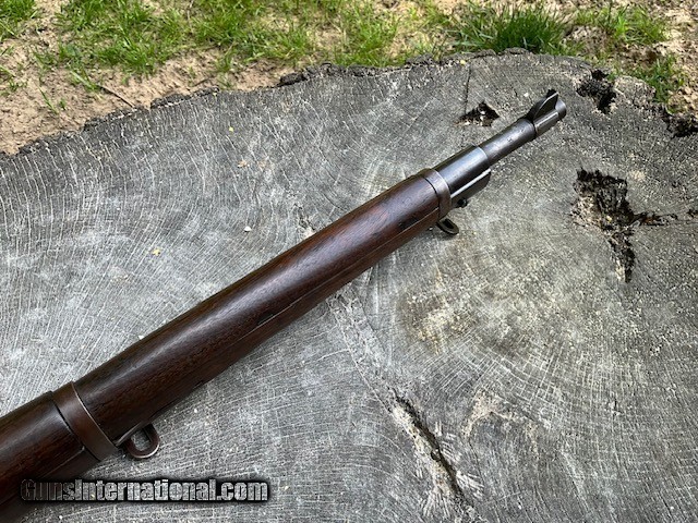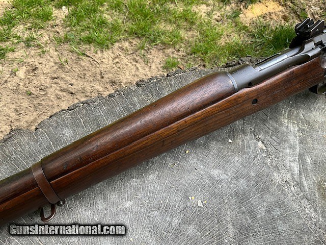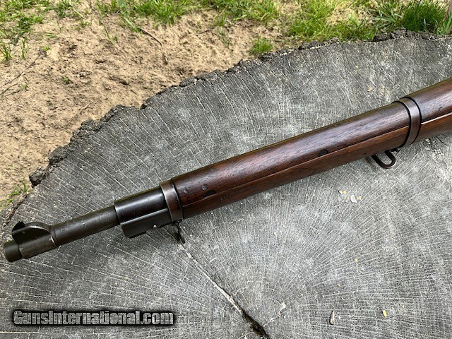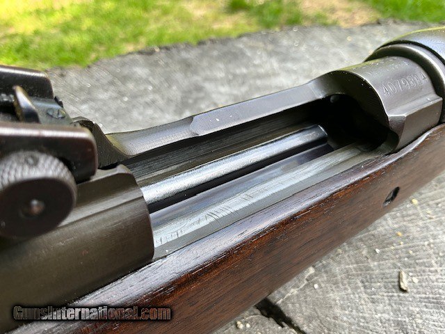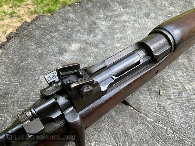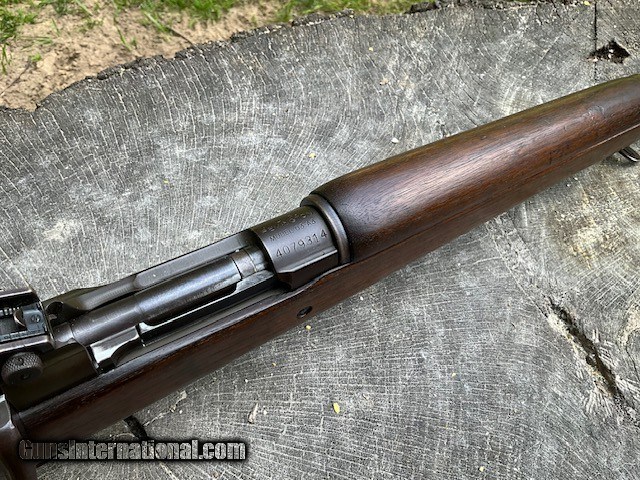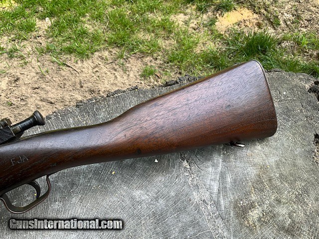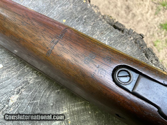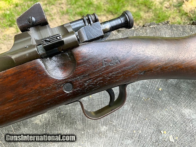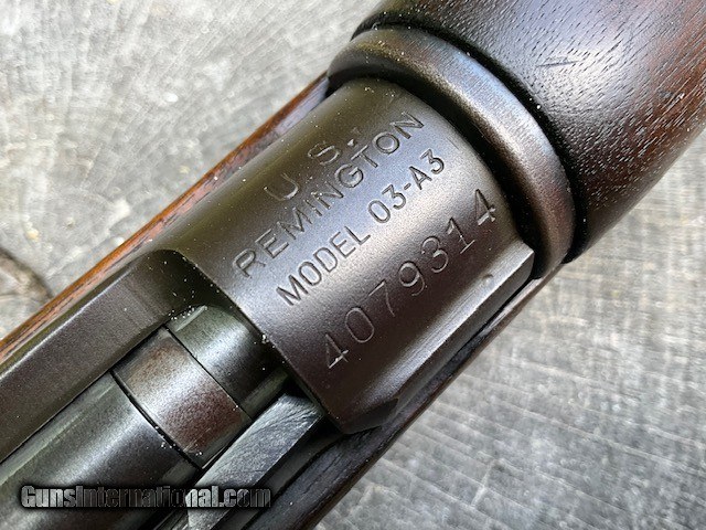 Description: 1943 WWII Remington 1903-A2. Original stock has FJA military inspectors stanp, Circle P acceptance stamp behind trigger co stock bottom with various other stampings front of floor plat on stock bottom. Barrel stamped with Flaming Bomb 10-43 with RA below front sight of barrel. All matching Remington components, all marked Remington. Excellent Parkerized finish remains on rifle. A very nice Remington 1903-A3 in top colletors condition. Shipping $53.00 SOLD Curio/Relic: Yes Rifle Caliber: .30-06 JDJ Manufacturer: Remengton Model: 1903-A3 Serial Number: 4079314 Bore: Good Condition: Very good |