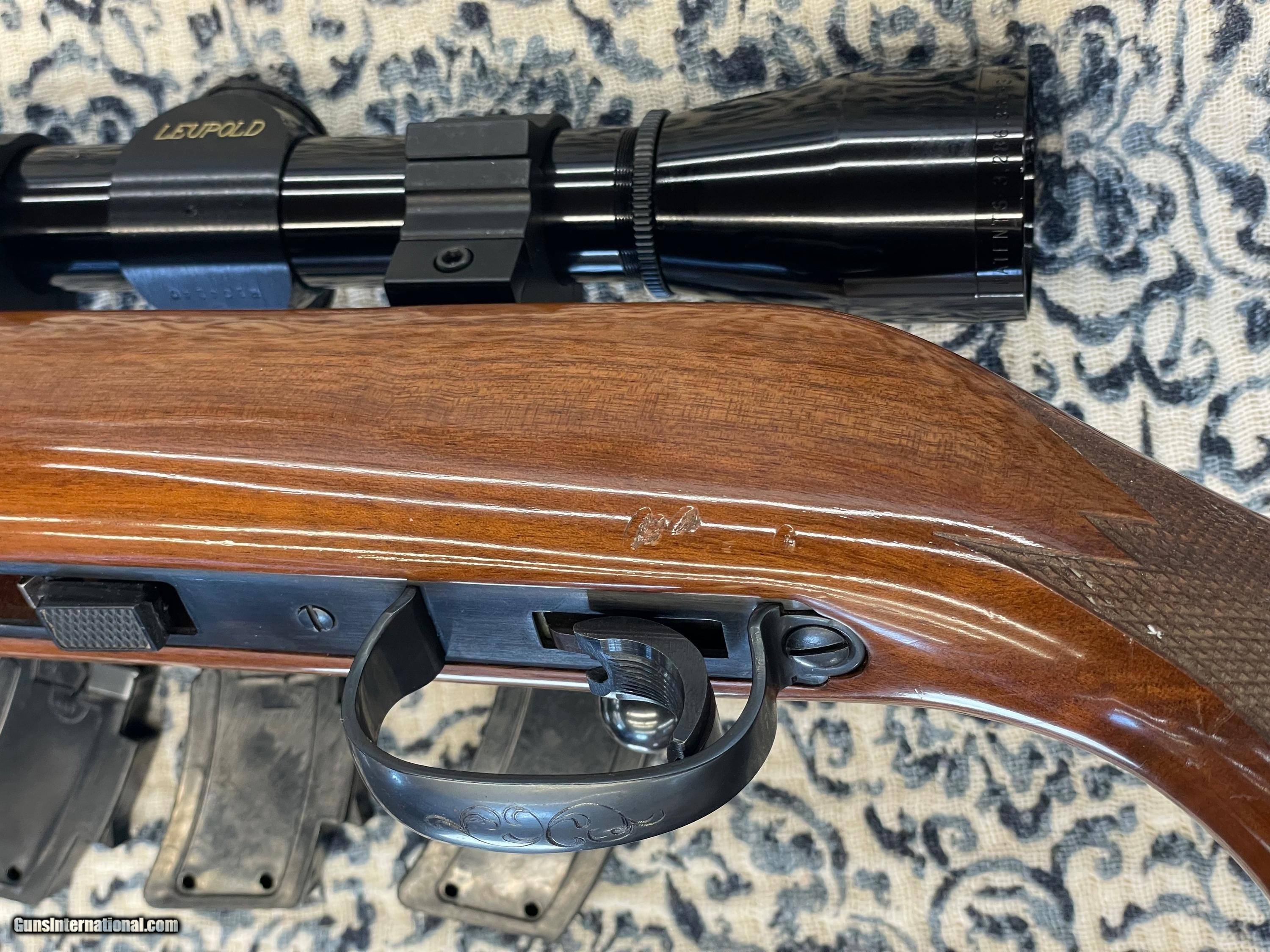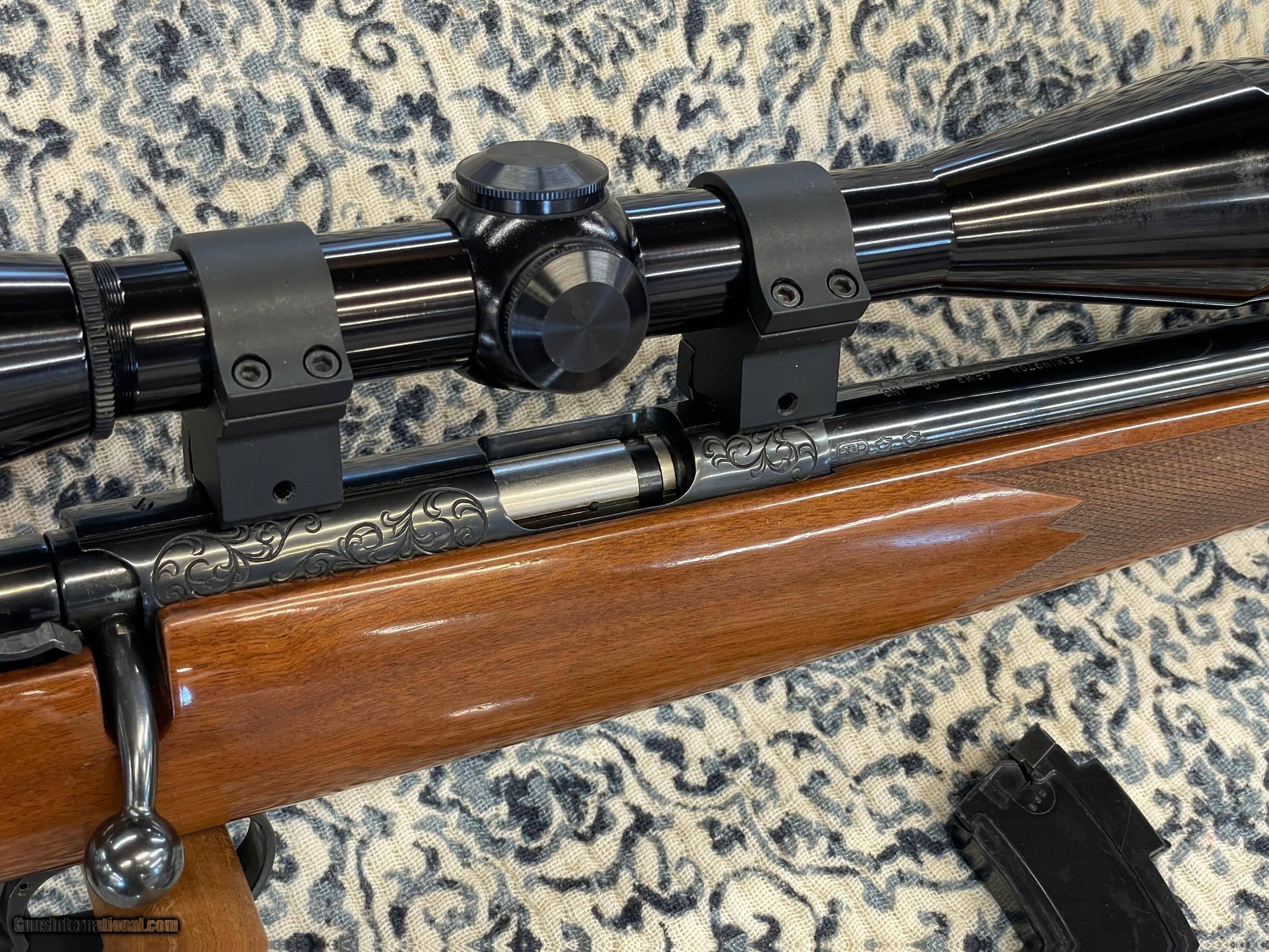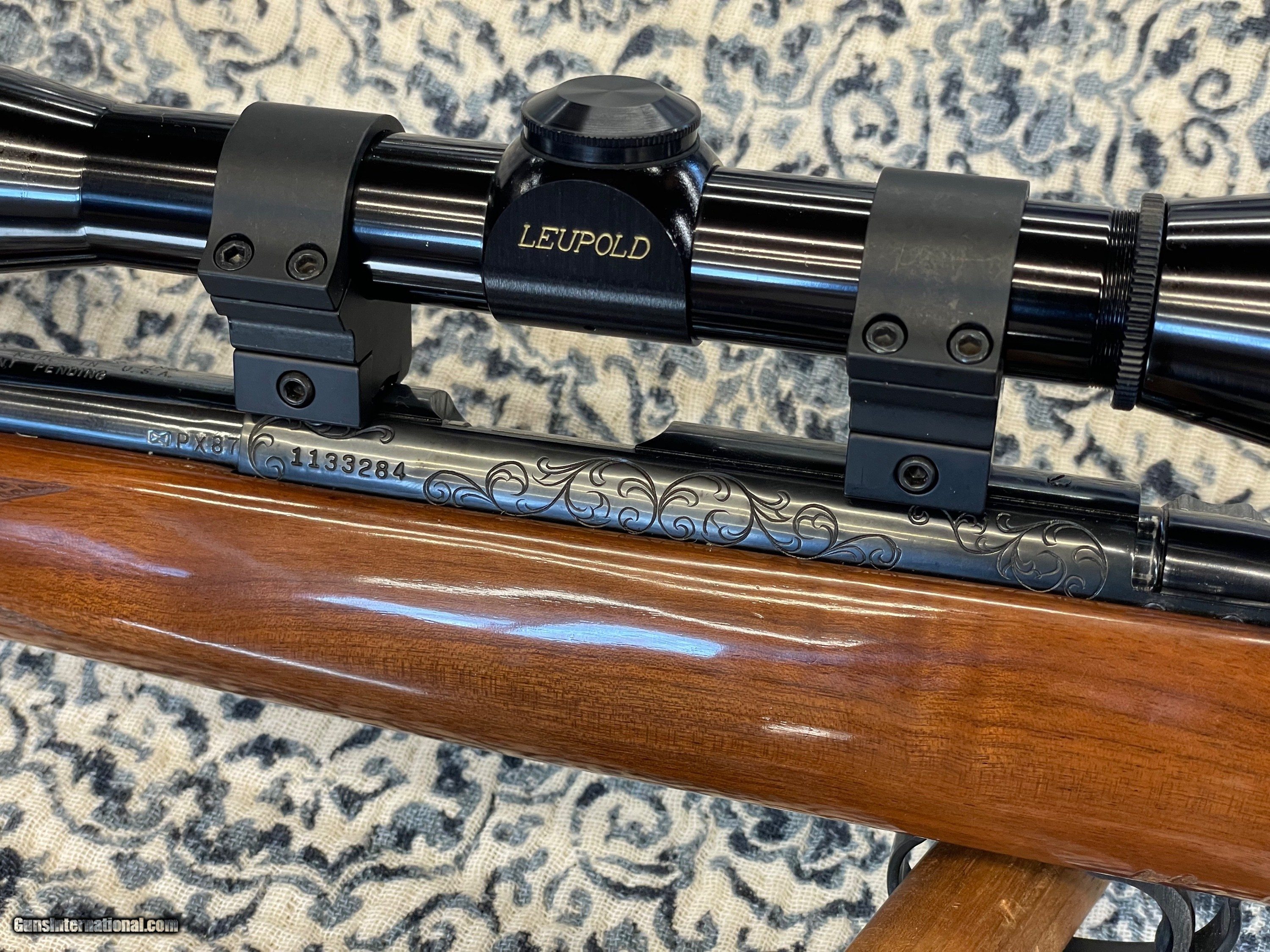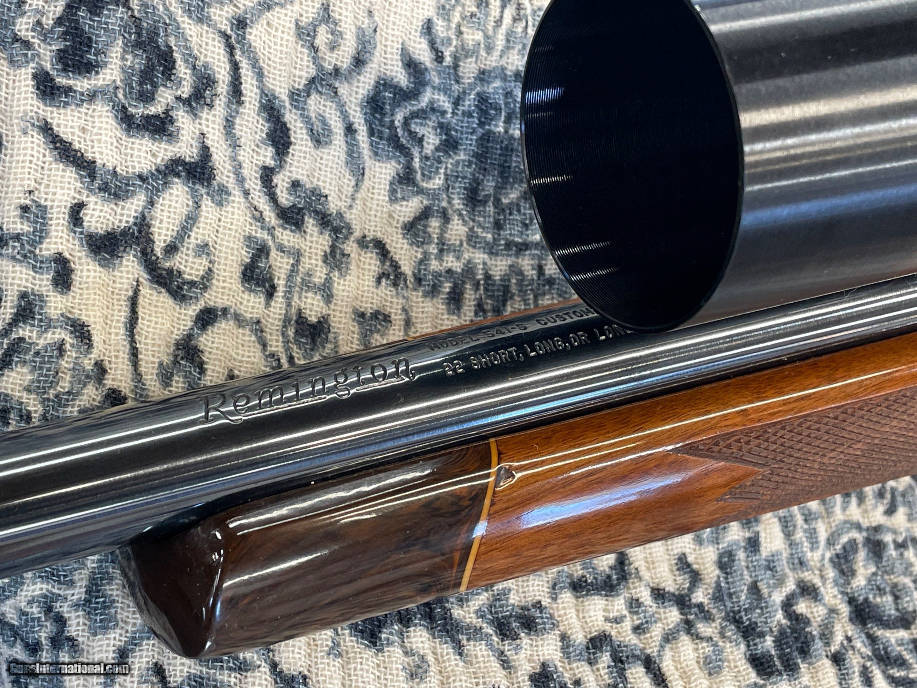 Description: Remington 541 S Custom Sporter .22 S, L, LR Very example of the remington 541 model in the custom sporter version "S" Factory engraving on the action. Gloss finish with backalite tip, grip cap and butt. All in great shape with no cracks. Comes with a Leupold 12x scope. Also three magazine included. Does have some minor handling marks. Rifle Caliber: .22 Long Rifle Manufacturer: Remington Model: 540 Serial Number: 1133284 Price: $1,600.00 Shipping: $45.00 Contact Seller |