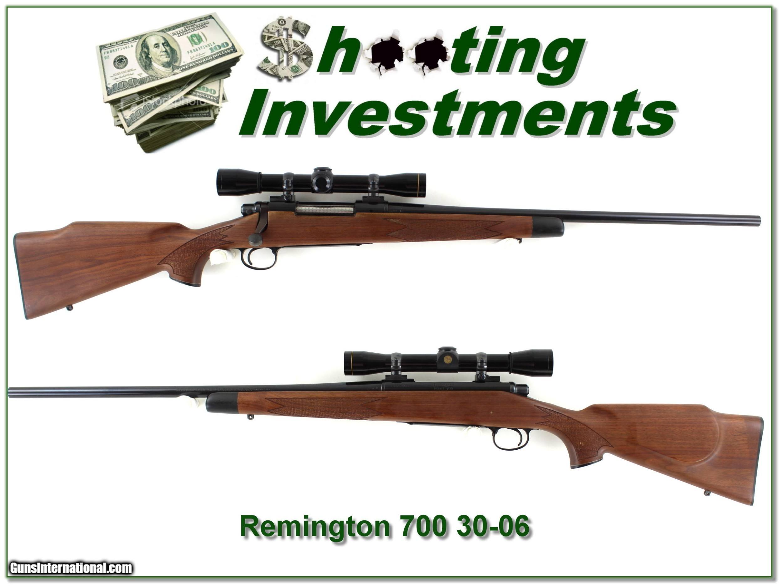 Description: This is a new condition 1985 made Remington 700 Classic in 30-06 made for Ducks Unlimited. It has no marks or signs of use and includes a 4X Gloss Leupold that is also a Ducks Unlimited special. I am sure just a couple rounds fired. This will make a classic setup for a hunter or collector that wants something no one else you know will have. Shipping and insurance is $39. Please email me with any questions or larger pictures. (Consign your quality firearms with Shooting Investments for only 12%! Let me know if you have any you would like to sell!) 20-0280 Payment: Payment is by Money Order, Cashiers Check or Personal Check. I can now also accept Credit Cards (MasterCard, Visa, Discover & American Express) with a 3% convenience fee. PayPal can be used for some items but never for firearms. Shipping: The shipping charge will be listed in each description. It is $39 for most firearms. Some heavy guns or those insured for over $2000 will be higher. Shipments to Alaska and Hawaii are higher because air shipment is required. Most firearms are shipped on Tuesday and Thursday and usually in 5 days of receipt of payment. We package all shipments carefully and insure them. Optics are shipped Priority Mail and most other non-firearm shipments are shipped First Class. Returns: Our return policy is simple. If for any reason you are not pleased with your purchase, you may return your item for a full refund of purchase price. Ammunition cannot be returned. It is important to us that you are happy. Guns cannot be fired or dissembled before returning them and they must be returned in the same condition as received. Notification of a return must occur with-in 3 days of receipt at your dealer. Shipping, convenience and dealer fees are not refundable and are the responsibility of the buyer. Lay-a-way: If needed, we offer a 60 day lay-a-way option on most firearms. It is 1/3 now, 1/3 in 30 days and 1/3 in 60 days. Lay-a-way firearm sales are final and if not completed the first payment cannot be returned. Consigning your firearms with Shooting Investments: We will help you get top dollar for your firearms. While most local guns shops charge 20% or more, our fee is only 12% with a minimum of $75. At your local gun shop it might take months to sell. Selling on-line provides instant access to thousands of interested buyers. You won’t find any other on-line dealer willing to sell your firearms for only 12% or listing every gun on 3 separate s. Selling through an House typically costs the seller 15% and the buyer an addition 15% (so 30%) and you have to wait several months to sell and longer to receive funds. If properly priced, we will sell your firearms in a few weeks. Send us an email or give us a call and we’ll explain how easy it is for you to get top dollar. Trading: Trading for use is really just buying your gun to re-sell. If you have a gun you want to trade, please email a picture and we will let you know what we can give or it. You will always get more if we sell it for you on consignment. Help for California Buyers: We are happy to ship to California. It is the buyer’s responsibility to make sure any item you buy is legal in your state. We are also happy to help with your purchase of a firearm from someone other than us. If you see a gun you would like to buy but the seller can’t or won’t ship to California they can ship to use and we’ll then ship it to your California dealer. The cost for this service is only $30 + shipping. Let us know if we can help! SOLD |