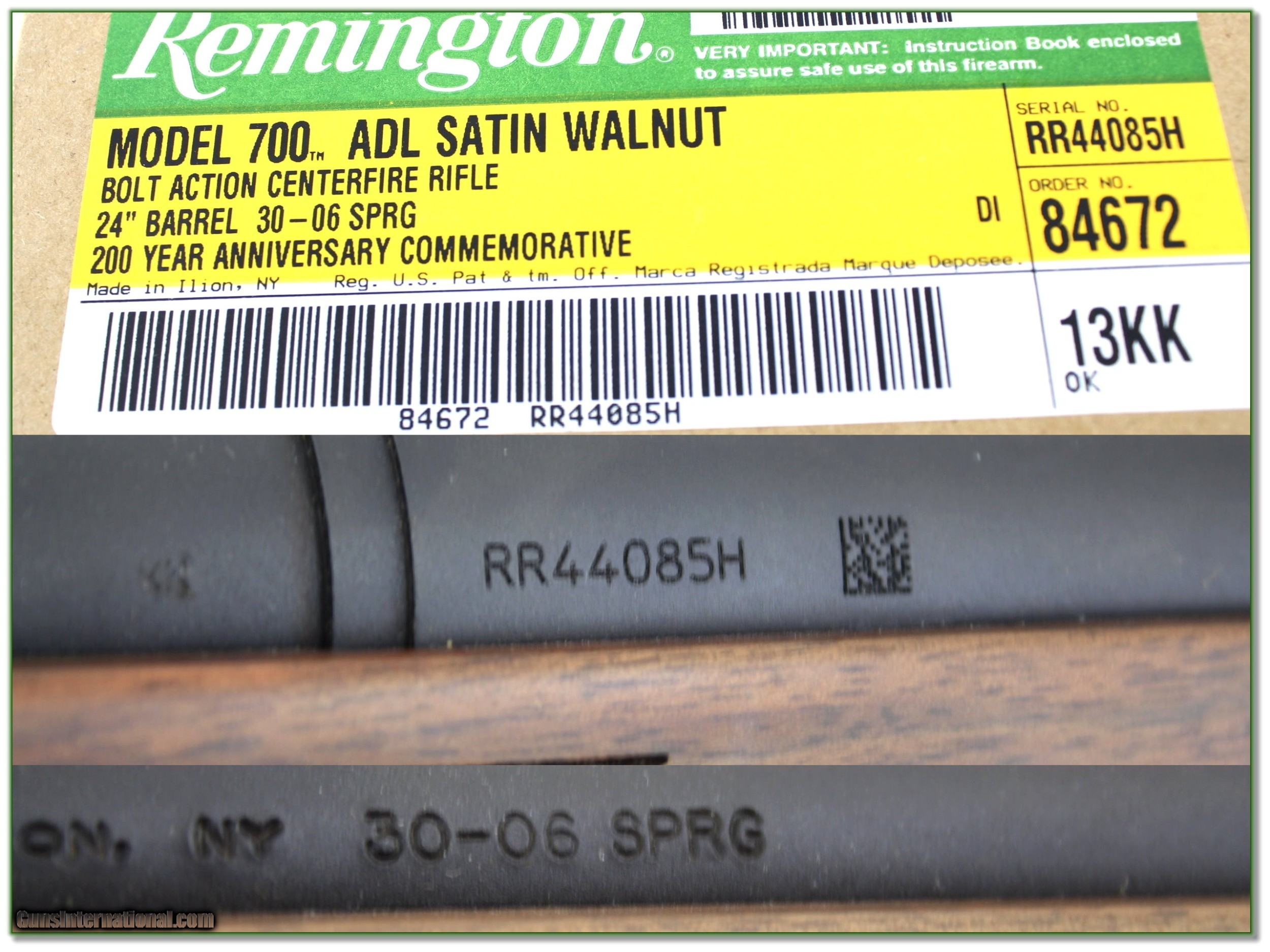 Description: This is a factory new and unfired Remington 700 ADL 200th year anniversary in 30-06. It comes as seen in original box with all papers. With the uncertainty of future Remington production, this will be a nice choice to put in your collection! I call it a Shooting Investment! Shipping and insurance is $39. Please email me with any questions or larger pictures. (Consign your quality firearms with Shooting Investments for only 12%! Let me know if you have any you would like to sell!) 20-1126 Payment: Payment is by Money Order, Cashiers Check or Personal Check. I can now also accept Credit Cards (MasterCard, Visa, Discover & American Express) with a 3% convenience fee. Shipping: The shipping charge will be listed in each description. It is $39 for most firearms. Some heavy guns or those insured for over $2000 will be higher. Shipments to Alaska and Hawaii are higher because air shipment is required. Most firearms are shipped on Tuesday and Thursday and usually in 5 days of receipt of payment. We package all shipments carefully and insure them. Optics are shipped Priority Mail and most other non-firearm shipments are shipped First Class. Returns: Our return policy is simple. If for any reason you are not pleased with your purchase, you may return your item for a full refund of purchase price. Ammunition cannot be returned. It is important to us that you are happy. Guns cannot be fired or dissembled before returning them and they must be returned in the same condition as received. Notification of a return must occur with-in 3 days of receipt at your dealer. Shipping, convenience and dealer fees are not refundable and are the responsibility of the buyer. Lay-a-way: If needed, we offer a 60 day lay-a-way option on most firearms. It is 1/3 now, 1/3 in 30 days and 1/3 in 60 days. Lay-a-way firearm sales are final and if not completed the first payment cannot be returned. Consigning your firearms with Shooting Investments: We will help you get top dollar for your firearms. While most local guns shops charge 20% or more, our fee is only 12% with a minimum of $75. At your local gun shop it might take months to sell. Selling on-line provides instant access to thousands of interested buyers. You won’t find any other on-line dealer willing to sell your firearms for only 12% or listing every gun on 3 separate s. Selling through an House typically costs the seller 15% and the buyer an addition 15% (so 30%) and you have to wait several months to sell and longer to receive funds. If properly priced, we will sell your firearms in a few weeks. Send us an email or give us a call and we’ll explain how easy it is for you to get top dollar. Trading: Trading for use is really just buying your gun to re-sell. If you have a gun you want to trade, please email a picture and we will let you know what we can give or it. You will always get more if we sell it for you on consignment. Help for California Buyers: We are happy to ship to California. It is the buyer’s responsibility to make sure any item you buy is legal in your state. We are also happy to help with your purchase of a firearm from someone other than us. If you see a gun you would like to buy but the seller can’t or won’t ship to California they can ship to use and we’ll then ship it to your California dealer. The cost for this service is only $30 + shipping. Let us know if we can help! SOLD |