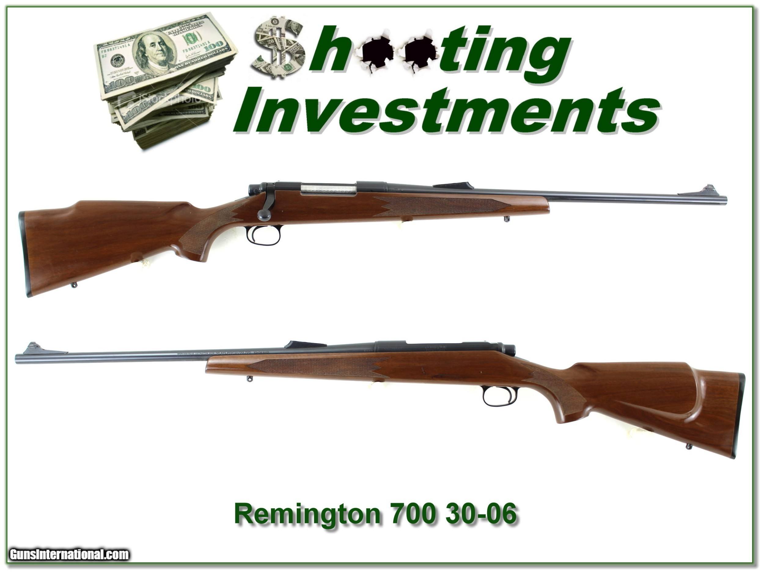 Description: This is an excellent condition Remington 700 ADL in 30-06. It is in lightly used condition. The blue is excellent with no marks and a 22in barrel. From the bolt jeweling I am sure only a few rounds fired. The too is excellent with one larger mark on the left side under the receiver. The rear sight blade was removed. Shipping and insurance is $39. Please email me with any questions or larger pictures. (Consign your quality firearms with Shooting Investments for only 12%! Let me know if you have any you would like to sell!) 21-0011 Payment: Payment is by Money Order, Cashiers Check or Personal Check. I can now also accept Credit Cards (MasterCard, Visa, Discover & American Express) with a 3% convenience fee. Shipping: The shipping charge will be listed in each description. It is $39 for most firearms. Some heavy guns or those insured for over $2000 will be higher. Shipments to Alaska and Hawaii are higher because air shipment is required. Most firearms are shipped on Tuesday and Thursday and usually in 5 days of receipt of payment. We package all shipments carefully and insure them. Optics are shipped Priority Mail and most other non-firearm shipments are shipped First Class. Returns: Our return policy is simple. If for any reason you are not pleased with your purchase, you may return your item for a full refund of purchase price. Ammunition cannot be returned. It is important to us that you are happy. Guns cannot be fired or dissembled before returning them and they must be returned in the same condition as received. Notification of a return must occur with-in 3 days of receipt at your dealer. Shipping, convenience and dealer fees are not refundable and are the responsibility of the buyer. Lay-a-way: If needed, we offer a 60 day lay-a-way option on most firearms. It is 1/3 now, 1/3 in 30 days and 1/3 in 60 days. Lay-a-way firearm sales are final and if not completed the first payment cannot be returned. Consigning your firearms with Shooting Investments: We will help you get top dollar for your firearms. While most local guns shops charge 20% or more, our fee is only 12% with a minimum of $75. At your local gun shop it might take months to sell. Selling on-line provides instant access to thousands of interested buyers. You won’t find any other on-line dealer willing to sell your firearms for only 12% or listing every gun on 3 separate s. Selling through an House typically costs the seller 15% and the buyer an addition 15% (so 30%) and you have to wait several months to sell and longer to receive funds. If properly priced, we will sell your firearms in a few weeks. Send us an email or give us a call and we’ll explain how easy it is for you to get top dollar. Trading: Trading for use is really just buying your gun to re-sell. If you have a gun you want to trade, please email a picture and we will let you know what we can give or it. You will always get more if we sell it for you on consignment. Help for California Buyers: We are happy to ship to California. It is the buyer’s responsibility to make sure any item you buy is legal in your state. We are also happy to help with your purchase of a firearm from someone other than us. If you see a gun you would like to buy but the seller can’t or won’t ship to California they can ship to use and we’ll then ship it to your California dealer. The cost for this service is only $30 + shipping. Let us know if we can help! SOLD |