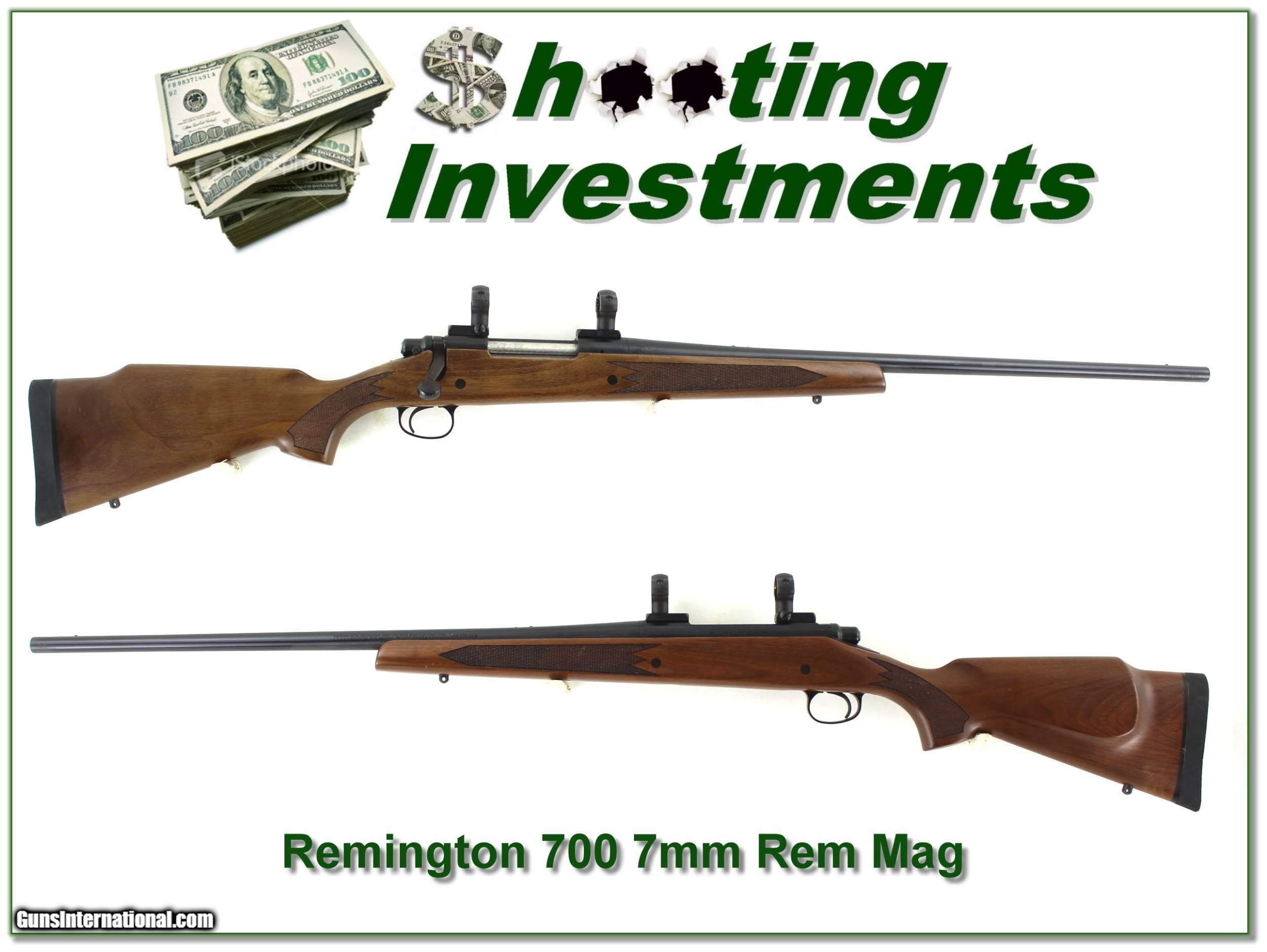Description: This is a near new excellent condition Remington 700. From the bolt jeweling we know only a few rounds ever fired. I find no marks on the metal or wood! It has a 24in barrel and come with bases and rings as seen. It will make a classic hunting gun and there will be no more of these! Shipping and insurance is $39. Please email me with any questions or larger pictures. (Consign your quality firearms with Shooting Investments for only 12%! Let me know if you have any you would like to sell!) 21-1138 Payment: Payment is by Money Order, Cashier’s Check or Personal Check. I can now also accept Credit Cards (MasterCard, Visa, Discover & American Express) with a 3% convenience fee. Shipping: The shipping charge will be listed in each description. It is $39 for most firearms. Some heavy guns or those insured for over $2000 will be higher. Shipments to Alaska and Hawaii are higher because air shipment is required. Most firearms are shipped on Tuesday and Thursday and usually in 5 days of receipt of payment. We package all shipments carefully and insure them. Optics are shipped Priority Mail and most other non-firearm shipments are shipped First Class. Returns: Our return policy is simple. If for any reason you are not pleased with your purchase, you may return your item for a full refund of purchase price. Ammunition cannot be returned. It is important to us that you are happy. Guns cannot be fired or dissembled before returning them and they must be returned in the same condition as received. Notification of a return must occur within 3 days of receipt at your dealer. Shipping, convenience and dealer fees are not refundable and are the responsibility of the buyer. Lay-a-way: If needed, we offer a 60 day lay-a-way option on most firearms. It is 1/3 now, 1/3 in 30 days and 1/3 in 60 days. Lay-a-way firearm sales are final and cannot be returned. If a lay-a-way is not completed the first payment cannot be refunded. Consigning your firearms with Shooting Investments: We will help you get top dollar for your firearms. While most local guns shops charge 20% or more, our fee is only 12% with a minimum of $75. At your local gun shop it might take months to sell. Selling on-line provides instant access to thousands of interested buyers. You won’t find any other on-line dealer willing to sell your firearms for only 12% or listing every gun on 3 separate s. Selling through an House typically costs the seller 15% and the buyer an addition 15% (so 30%) and you have to wait several months to sell and longer to receive funds. If properly priced, we will sell your firearms within a few weeks. Send us an email or give us a call and we’ll explain how easy it is for you to get top dollar. Trading: Trading for us is really just buying your gun to re-sell. If you have a gun you want to trade, please email a picture and we will let you know what we can give for it. You will always get more if we sell it for you on consignment. Help for California Buyers: We are happy to ship to California. It is the buyer’s responsibility to make sure any item you buy is legal in your state. We are also happy to help with your purchase of a firearm from someone other than us. If you see a gun you would like to buy but the seller can’t or won’t ship to California they can ship to use and we’ll then ship it to your California dealer. The cost for this service is only $30 + shipping. Let us know if we can help! SOLD |