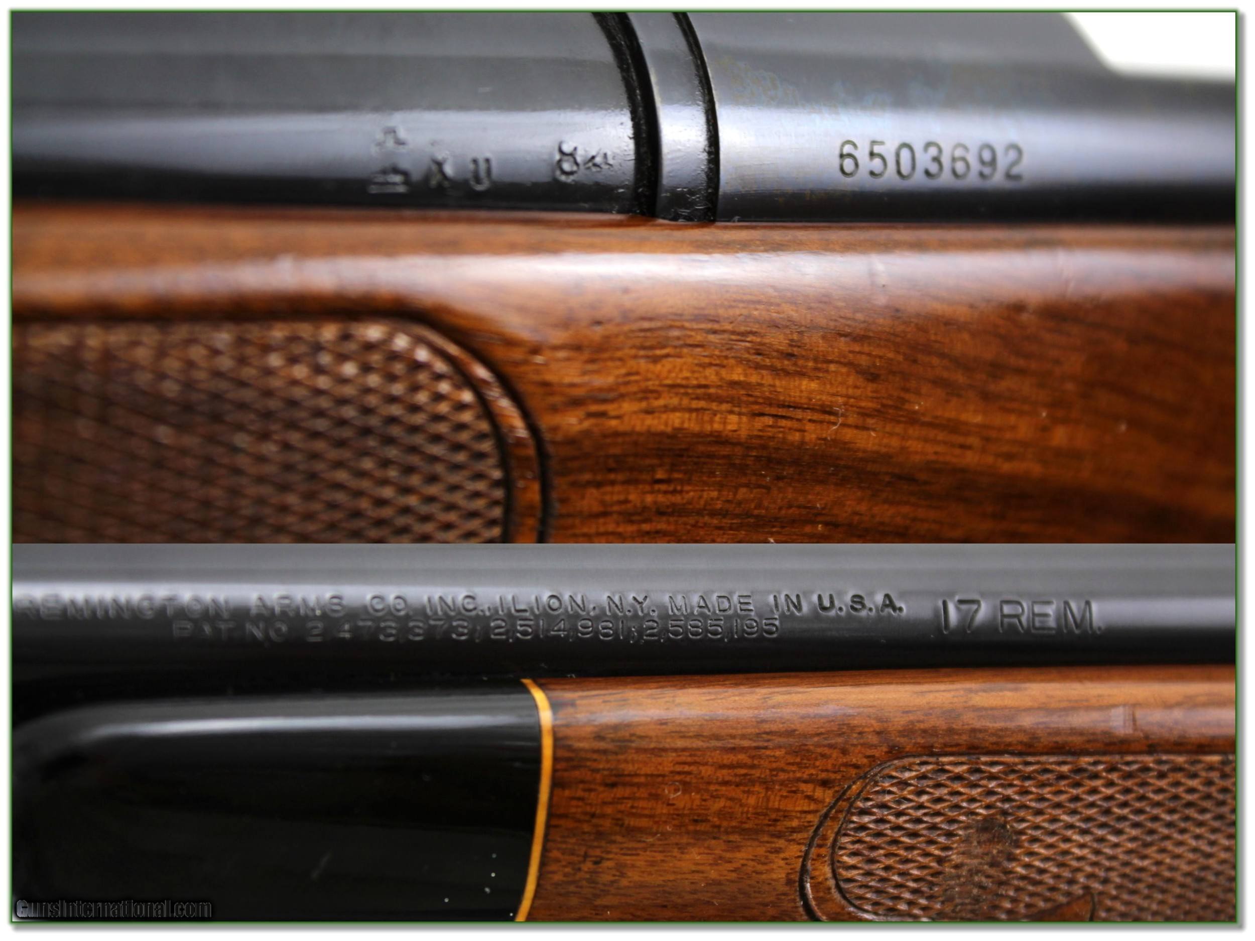 Description: Collectors and shooters, this is an excellent collector condition Remington 700 in 17 Remington. It is an early pre-prefix serial number with pressed-checkering stock. The barrel is 24 and the blue is excellent. I see no wear. From the jeweling on the bolt I know this one never fired many rounds. The wood only a couple storage marks. You would buff them out and have a near new Remington! This is Shooting Investment and will make a fine addition to your collection! Shipping and insurance is $39. Please email me with any questions or larger pictures. (Consign your quality firearms with Shooting Investments for only 12%! Let me know if you have any you would like to sell!) 20-1187 Payment: Payment is by Money Order, Cashiers Check or Personal Check. I can now also accept Credit Cards (MasterCard, Visa, Discover & American Express) with a 3% convenience fee. Shipping: The shipping charge will be listed in each description. It is $39 for most firearms. Some heavy guns or those insured for over $2000 will be higher. Shipments to Alaska and Hawaii are higher because air shipment is required. Most firearms are shipped on Tuesday and Thursday and usually in 5 days of receipt of payment. We package all shipments carefully and insure them. Optics are shipped Priority Mail and most other non-firearm shipments are shipped First Class. Returns: Our return policy is simple. If for any reason you are not pleased with your purchase, you may return your item for a full refund of purchase price. Ammunition cannot be returned. It is important to us that you are happy. Guns cannot be fired or dissembled before returning them and they must be returned in the same condition as received. Notification of a return must occur with-in 3 days of receipt at your dealer. Shipping, convenience and dealer fees are not refundable and are the responsibility of the buyer. Lay-a-way: If needed, we offer a 60 day lay-a-way option on most firearms. It is 1/3 now, 1/3 in 30 days and 1/3 in 60 days. Lay-a-way firearm sales are final and if not completed the first payment cannot be returned. Consigning your firearms with Shooting Investments: We will help you get top dollar for your firearms. While most local guns shops charge 20% or more, our fee is only 12% with a minimum of $75. At your local gun shop it might take months to sell. Selling on-line provides instant access to thousands of interested buyers. You won’t find any other on-line dealer willing to sell your firearms for only 12% or listing every gun on 3 separate s. Selling through an House typically costs the seller 15% and the buyer an addition 15% (so 30%) and you have to wait several months to sell and longer to receive funds. If properly priced, we will sell your firearms in a few weeks. Send us an email or give us a call and we’ll explain how easy it is for you to get top dollar. Trading: Trading for use is really just buying your gun to re-sell. If you have a gun you want to trade, please email a picture and we will let you know what we can give or it. You will always get more if we sell it for you on consignment. Help for California Buyers: We are happy to ship to California. It is the buyer’s responsibility to make sure any item you buy is legal in your state. We are also happy to help with your purchase of a firearm from someone other than us. If you see a gun you would like to buy but the seller can’t or won’t ship to California they can ship to use and we’ll then ship it to your California dealer. The cost for this service is only $30 + shipping. Let us know if we can help! SOLD |