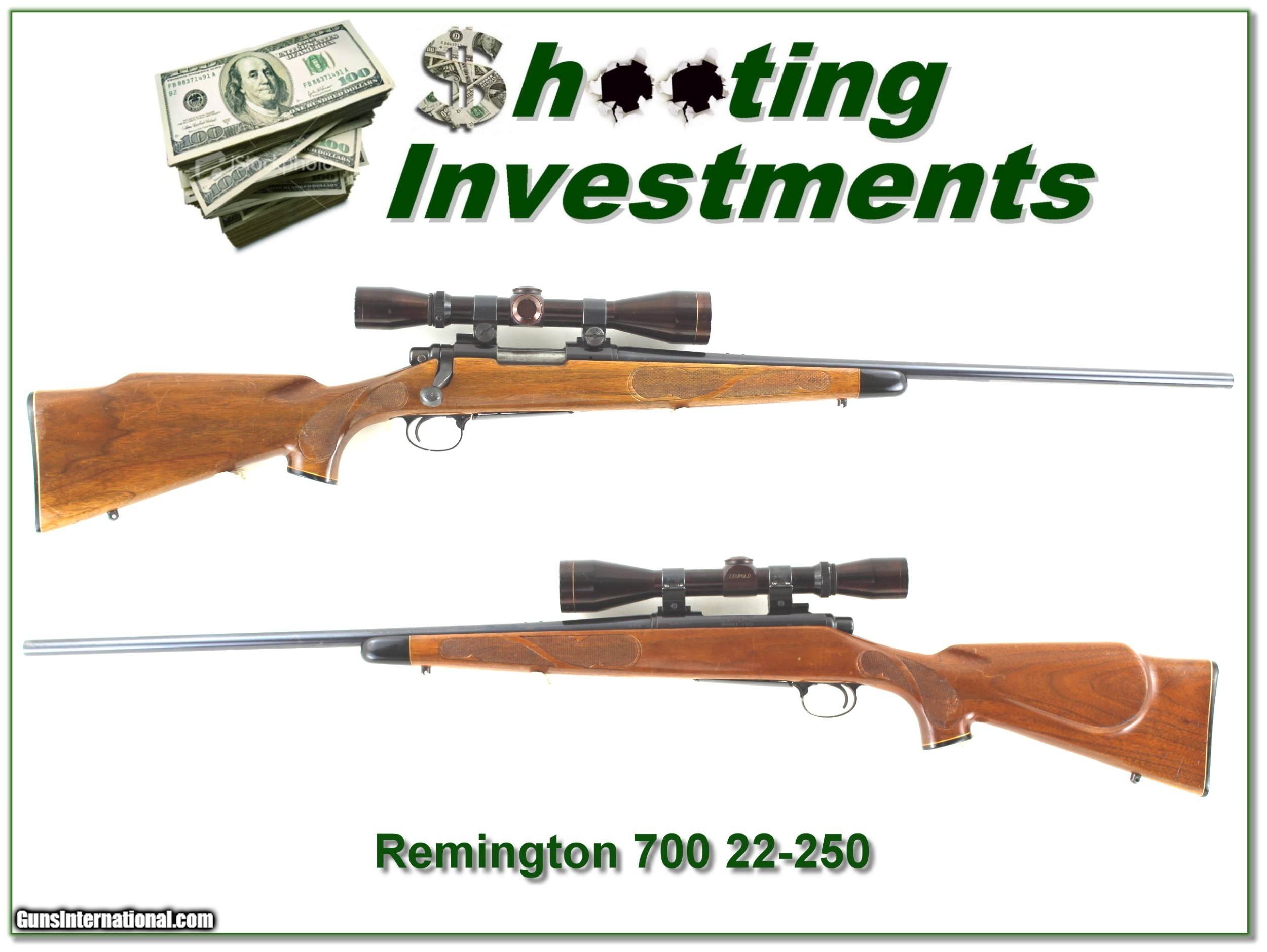 Description: This is a 1970 made Remington 700 in 22-250 in very good condition. It is the standard barrel (not heavy barrel). The blue is all there, and the wood has numerous light marks from some field use. It includes a Leupold Vari-X II 3-9 scope. It will make a classic hunting gun! I am selling this one on consignment and as such lay-a-way can’t be used. It does of course have the standard 3-day inspection. Shipping and insurance is $39. Please email me with any questions or larger pictures. (Consign your quality firearms with Shooting Investments for only 12%! Let me know if you have any you would like to sell!) 21-0582 Payment: Payment is by Money Order, Cashiers Check or Personal Check. I can now also accept Credit Cards (MasterCard, Visa, Discover & American Express) with a 3% convenience fee. Shipping: The shipping charge will be listed in each description. It is $39 for most firearms. Some heavy guns or those insured for over $2000 will be higher. Shipments to Alaska and Hawaii are higher because air shipment is required. Most firearms are shipped on Tuesday and Thursday and usually in 5 days of receipt of payment. We package all shipments carefully and insure them. Optics are shipped Priority Mail and most other non-firearm shipments are shipped First Class. Returns: Our return policy is simple. If for any reason you are not pleased with your purchase, you may return your item for a full refund of purchase price. Ammunition cannot be returned. It is important to us that you are happy. Guns cannot be fired or dissembled before returning them and they must be returned in the same condition as received. Notification of a return must occur with-in 3 days of receipt at your dealer. Shipping, convenience and dealer fees are not refundable and are the responsibility of the buyer. Lay-a-way: If needed, we offer a 60 day lay-a-way option on most firearms. It is 1/3 now, 1/3 in 30 days and 1/3 in 60 days. Lay-a-way firearm sales are final and if not completed the first payment cannot be returned. Consigning your firearms with Shooting Investments: We will help you get top dollar for your firearms. While most local guns shops charge 20% or more, our fee is only 12% with a minimum of $75. At your local gun shop it might take months to sell. Selling on-line provides instant access to thousands of interested buyers. You won’t find any other on-line dealer willing to sell your firearms for only 12% or listing every gun on 3 separate s. Selling through an House typically costs the seller 15% and the buyer an addition 15% (so 30%) and you have to wait several months to sell and longer to receive funds. If properly priced, we will sell your firearms in a few weeks. Send us an email or give us a call and we’ll explain how easy it is for you to get top dollar. Trading: Trading for use is really just buying your gun to re-sell. If you have a gun you want to trade, please email a picture and we will let you know what we can give or it. You will always get more if we sell it for you on consignment. Help for California Buyers: We are happy to ship to California. It is the buyer’s responsibility to make sure any item you buy is legal in your state. We are also happy to help with your purchase of a firearm from someone other than us. If you see a gun you would like to buy but the seller can’t or won’t ship to California they can ship to use and we’ll then ship it to your California dealer. The cost for this service is only $30 + shipping. Let us know if we can help! SOLD |