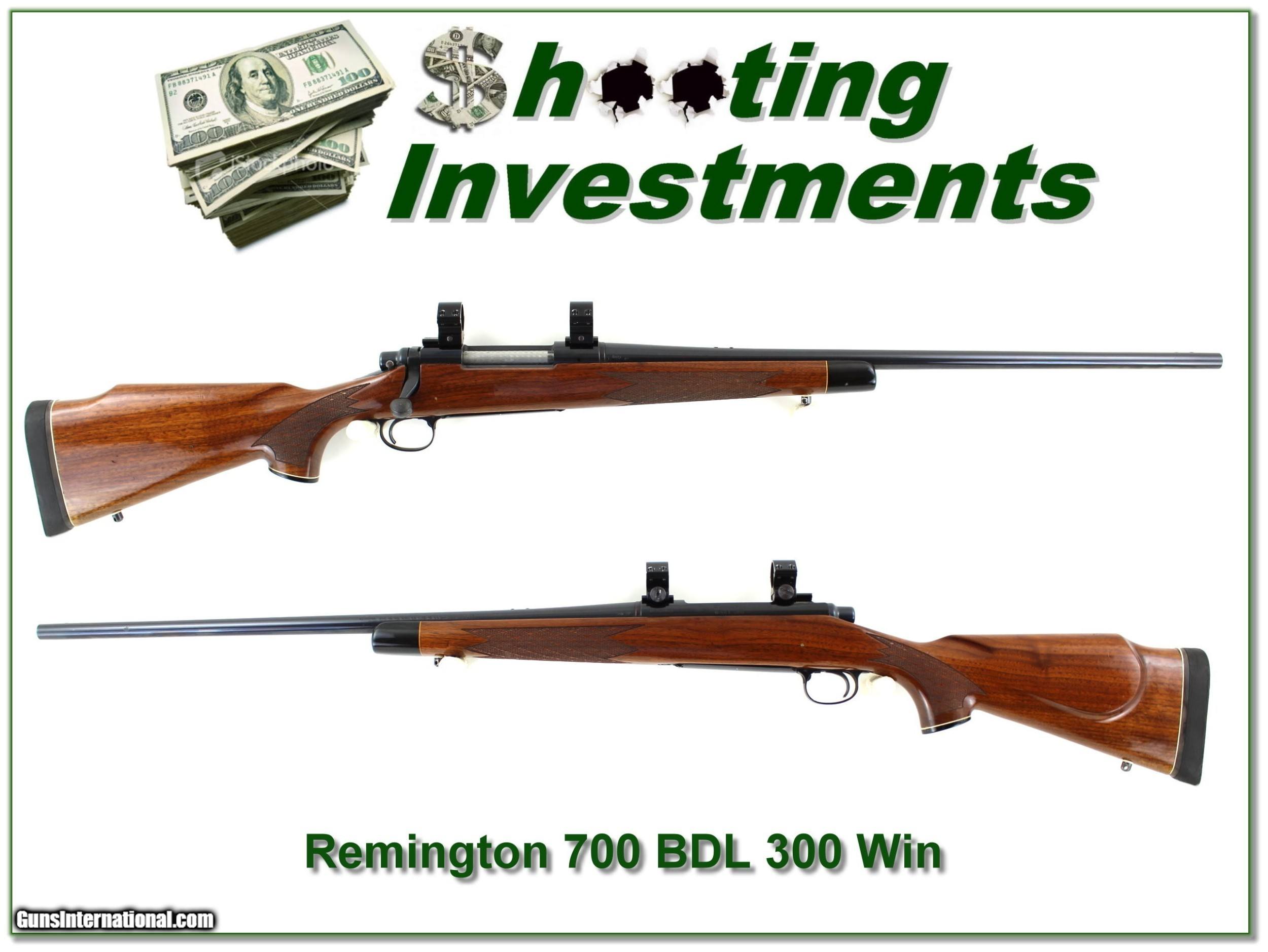 Description: This is a Remington 700 BDL in the hard-hitting 300 Winchester Magnum. It has a 24in barrel and comes with bases and rings as seen. The blue is excellent, and the wood has scattered minor marks from use. It will make a classic big-game hunting gun and they just don’t make them like they used too! Shipping and insurance is $39. Please email me with any questions or larger pictures. (Consign your quality firearms with Shooting Investments for only 12%! Let me know if you have any you would like to sell!) 20-0561 Payment: Payment is by Money Order, Cashiers Check or Personal Check. I can now also accept MasterCard and Visa with a 3% convenience fee. PayPal can be used for some items but never firearms. Please let us know if you would like to pay via PayPal. Shipping: The shipping charge will be listed in each description. It is $39 for most guns. Some heavy guns or those insured for over $2000 will be higher. Shipments to Alaska and Hawaii are higher because air shipment is required. Most firearms are shipped on Tuesday and Thursday and usually in 5 days of receipt of payment. We package all shipments carefully and insure them. Returns: Our return policy is simple. If for any reason you are not pleased with your purchase, you may return your item for a full refund of purchase price. Ammunition cannot be returned. It is important to us that you are happy. Guns cannot be fired or dissembled before returning them and they must be returned in the same condition as received. Notification of a return must occur with-in 3 days of receipt at your dealer. Shipping, convenience and dealer fees are not refundable and are the responsibility of the buyer. Lay-a-way: If needed, we offer a 60 day lay-a-way option on most firearms. It is 1/3 now, 1/3 in 30 days and 1/3 in 60 days. Lay-a-way firearm sales are final and if not completed the first payment cannot be returned. Consigning your firearms with Shooting Investments: We will help you get top dollar for your firearms. While most local guns shops charge 20% or more, our fee is only 12% with a minimum of $75. At your local gun shop it might take months to sell. Selling on-line provides instant access to thousands of interested buyers. You won’t find any other on-line dealer willing to sell your firearms for only 12% or listing every gun on 3 separate s. Selling through an House typically costs the seller 15% and the buyer an addition 15% (so 30%) and you have to wait several months to sell and longer to receive funds. If properly priced, we will sell your firearms in a few weeks. Send us an email or give us a call and we’ll explain how easy it is for you to get top dollar. Trading: Trading for use is really just buying your gun to re-sell. If you have a gun you want to trade, please email a picture and we will let you know what we can give or it. You will always get more if we sell it for you on consignment. Help for California Buyers: We are happy to ship to California. It is the buyer’s responsibility to make sure any item you buy is legal in your state. We are also happy to help with your purchase of a firearm from someone other than us. If you see a gun you would like to buy but the seller can’t or won’t ship to California they can ship to use and we’ll then ship it to your California dealer. The cost for this service is only $30 + shipping. Let us know if we can help! SOLD |