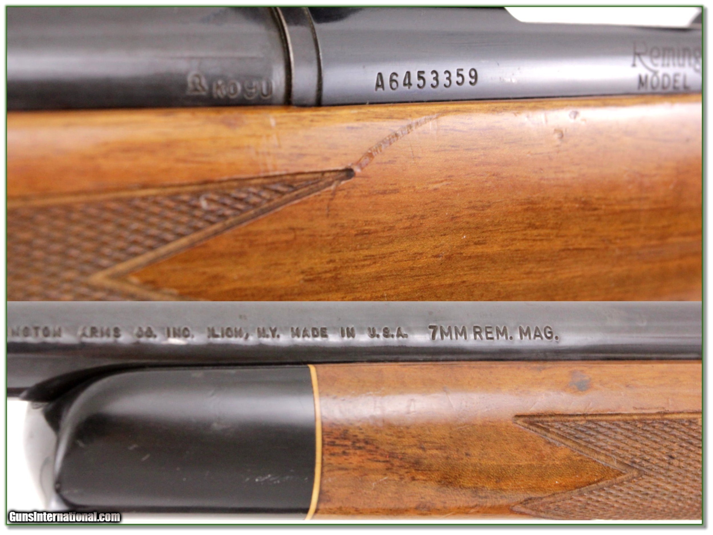 Description: This is a Remington 700 BDL in the flat shooting 7mm Remington Magnum. It is used with some hunting marks. The bore is bright and shinny and like most hunting guns, not shot a lot. It has a 24in barrel and comes with bases and rings as seen. Shipping with insurance is $39. Please email me with any questions or larger pictures. (Consign your quality firearms with Shooting Investments for only 12%! Let me know if you have any you would like to sell!) 19-0889 Payment: Payment is by Money Order, Cashiers Check or Personal Check. I can now also accept Credit Cards (MasterCard, Visa, Discover & American Express) with a 3% convenience fee. PayPal can be used for some items but never for firearms. Shipping: The shipping charge will be listed in each description. It is $39 for most firearms. Some heavy guns or those insured for over $2000 will be higher. Shipments to Alaska and Hawaii are higher because air shipment is required. Most firearms are shipped on Tuesday and Thursday and usually in 5 days of receipt of payment. We package all shipments carefully and insure them. Optics are shipped Priority Mail and most other non-firearm shipments are shipped First Class. Returns: Our return policy is simple. If for any reason you are not pleased with your purchase, you may return your item for a full refund of purchase price. Ammunition cannot be returned. It is important to us that you are happy. Guns cannot be fired or dissembled before returning them and they must be returned in the same condition as received. Notification of a return must occur with-in 3 days of receipt at your dealer. Shipping, convenience and dealer fees are not refundable and are the responsibility of the buyer. Lay-a-way: If needed, we offer a 60 day lay-a-way option on most firearms. It is 1/3 now, 1/3 in 30 days and 1/3 in 60 days. Lay-a-way firearm sales are final and if not completed the first payment cannot be returned. Consigning your firearms with Shooting Investments: We will help you get top dollar for your firearms. While most local guns shops charge 20% or more, our fee is only 12% with a minimum of $75. At your local gun shop it might take months to sell. Selling on-line provides instant access to thousands of interested buyers. You won’t find any other on-line dealer willing to sell your firearms for only 12% or listing every gun on 3 separate s. Selling through an House typically costs the seller 15% and the buyer an addition 15% (so 30%) and you have to wait several months to sell and longer to receive funds. If properly priced, we will sell your firearms in a few weeks. Send us an email or give us a call and we’ll explain how easy it is for you to get top dollar. Trading: Trading for use is really just buying your gun to re-sell. If you have a gun you want to trade, please email a picture and we will let you know what we can give or it. You will always get more if we sell it for you on consignment. Help for California Buyers: We are happy to ship to California. It is the buyer’s responsibility to make sure any item you buy is legal in your state. We are also happy to help with your purchase of a firearm from someone other than us. If you see a gun you would like to buy but the seller can’t or won’t ship to California they can ship to use and we’ll then ship it to your California dealer. The cost for this service is only $30 + shipping. Let us know if we can help! SOLD |