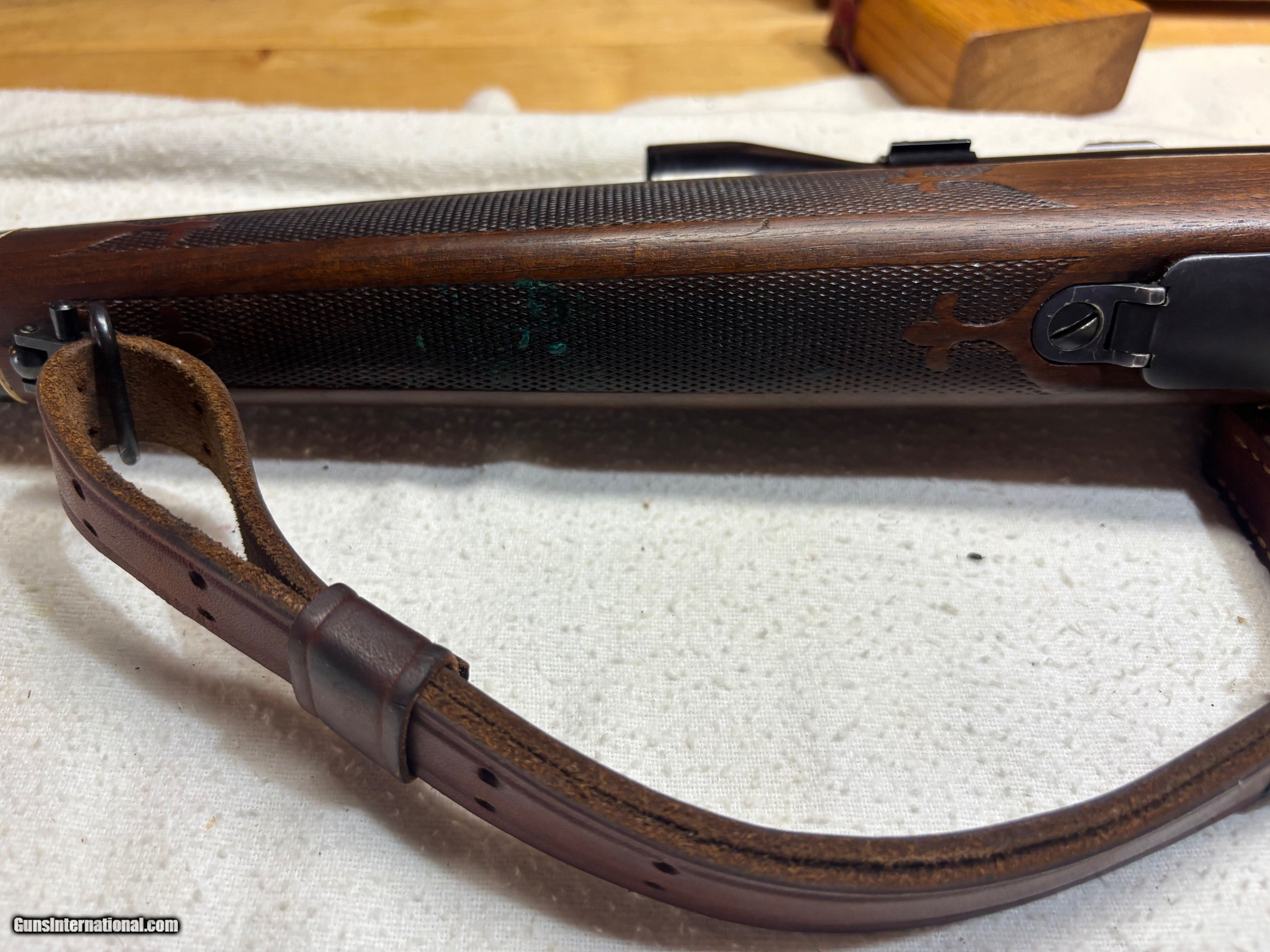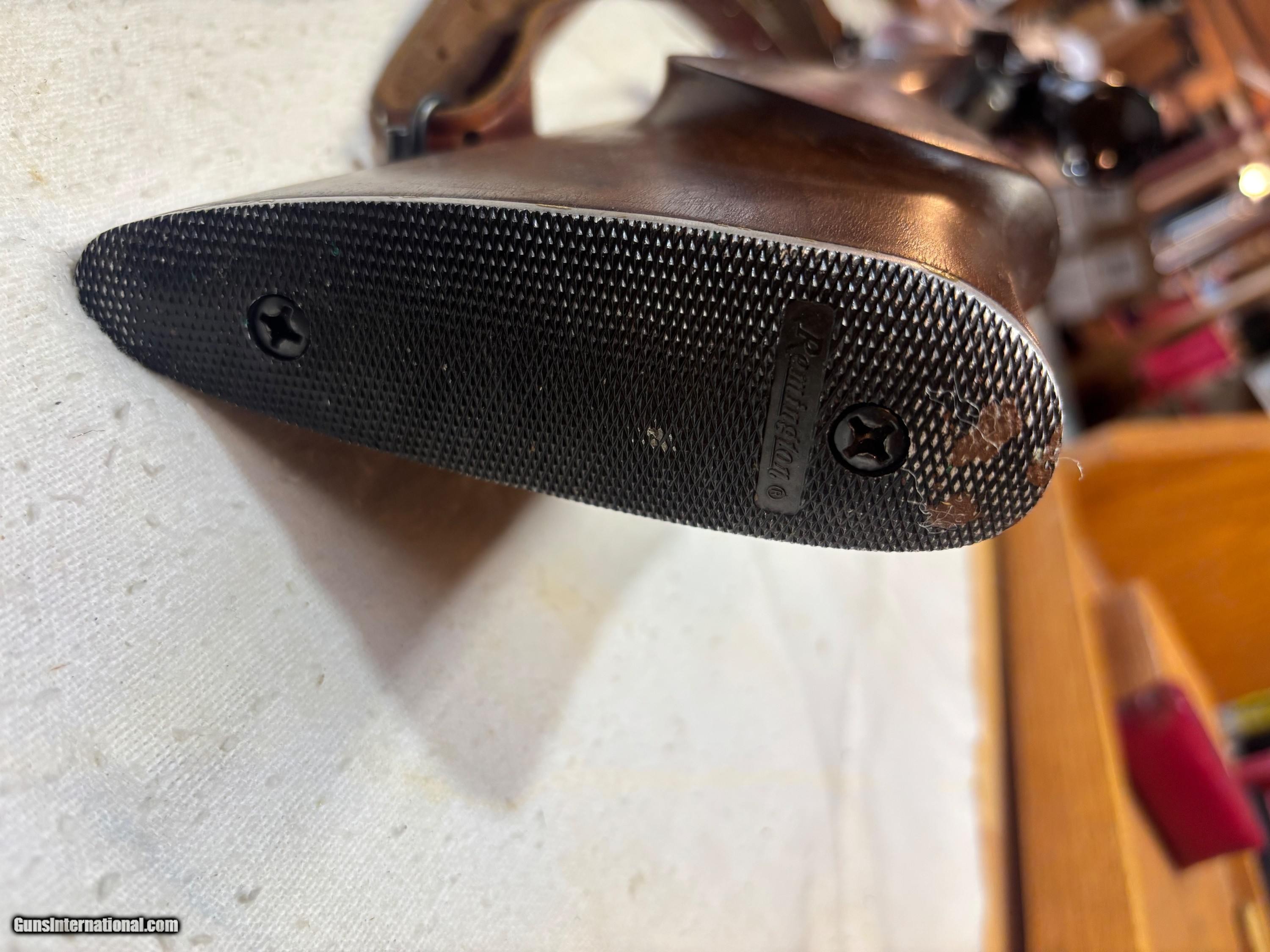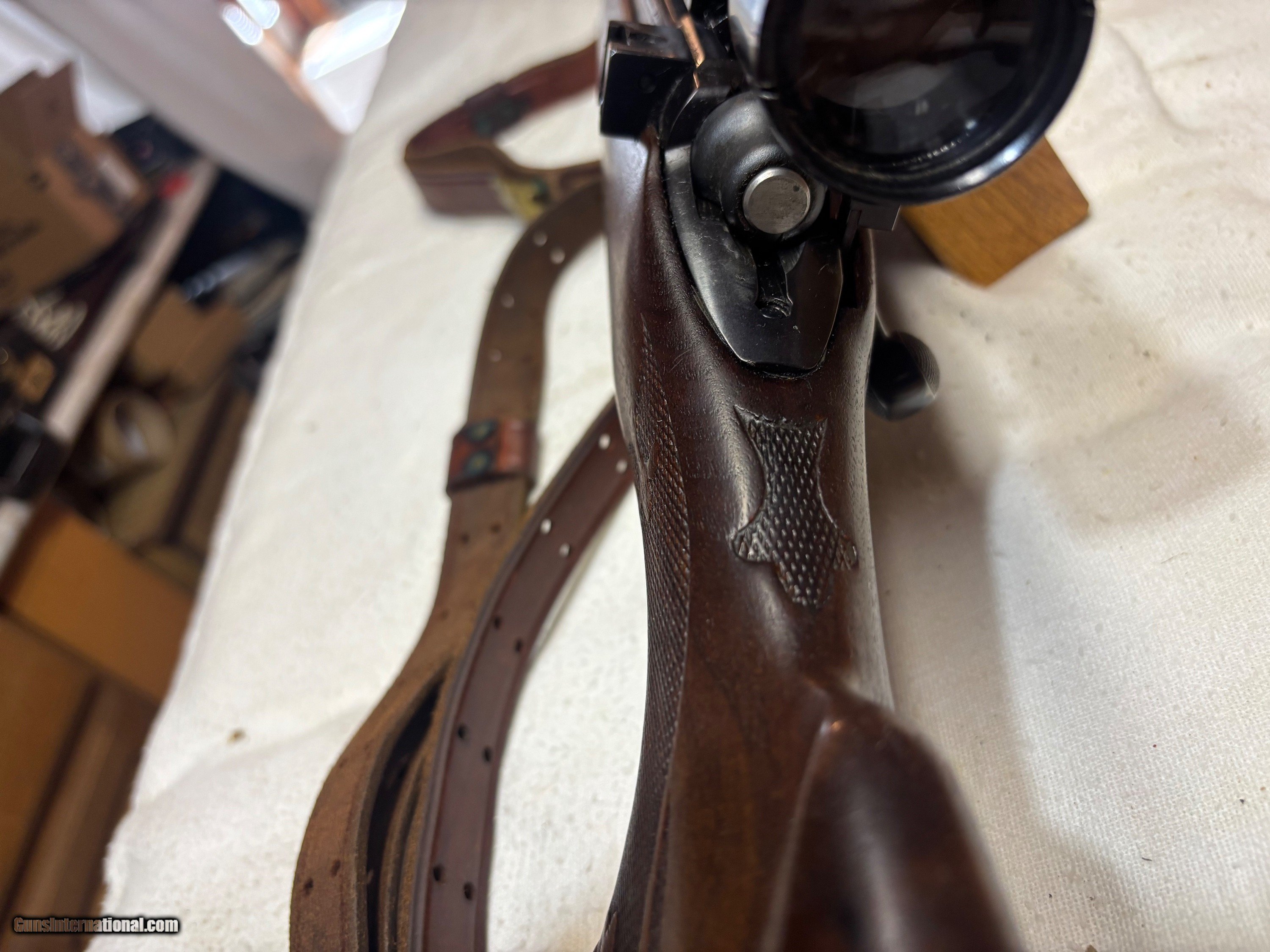 Description: Beautiful Remington Model 700 Bolt Action Rifle in 280 Caliber. This hunting rifle is in great condition with a 4 K Weaver Scope, sling , Monte Carlo style cheek piece. The stock is in great condition and has checkering customary to a Deluxe grade and has the black tip on the end. The 20 inch barrel has a clean crisp bore and Serial number is 27042 indicative of a Pre 64 piece. This well care for rifle would be a great addition to your hunting arsenal. Original receiver sight and standard rear sight which were removed will be included as well. Buyer pays all costs of shipping and insurance calculated to your FFL location. Buyer is responsible for all taxes. Cashiers check or money order only accepted. ( Shipping to Alaska, Hawaii, California not available) (No Returns) SOLD Rifle Caliber: .280 Remington Manufacturer: Remington Model: 700 Serial Number: 27043 Barrel Length: 20 inches Condition: Great Metal Condition: Great Wood Condition: Great Bore Condition: Great Action: Bolt |