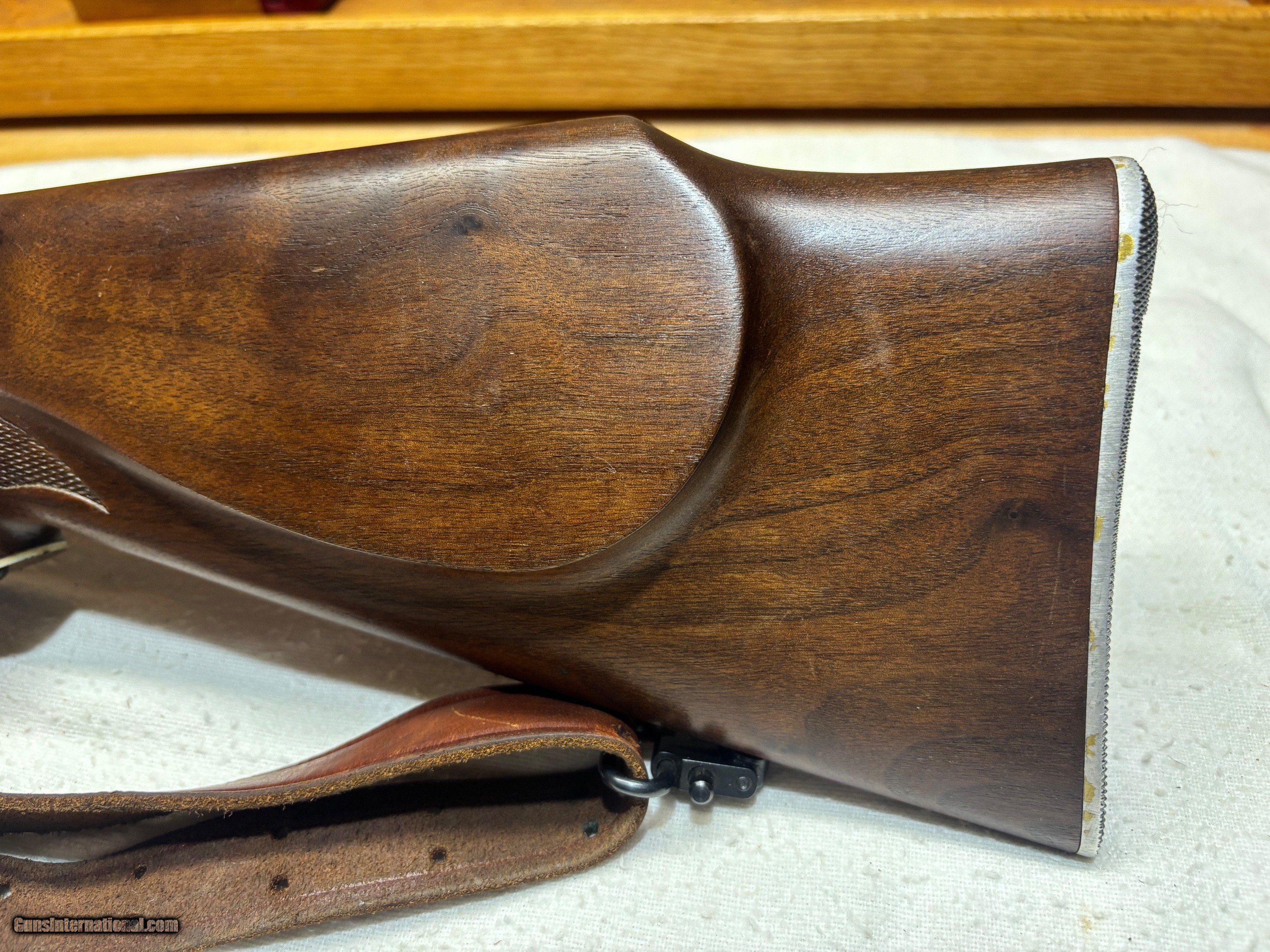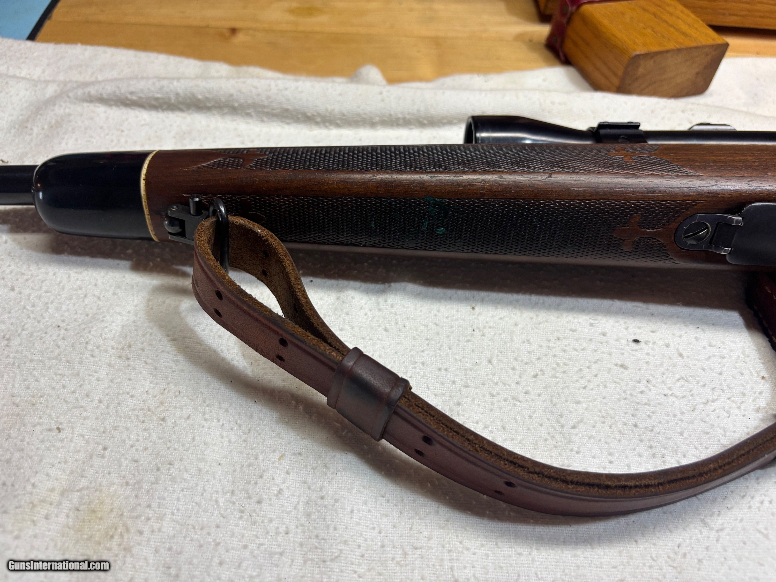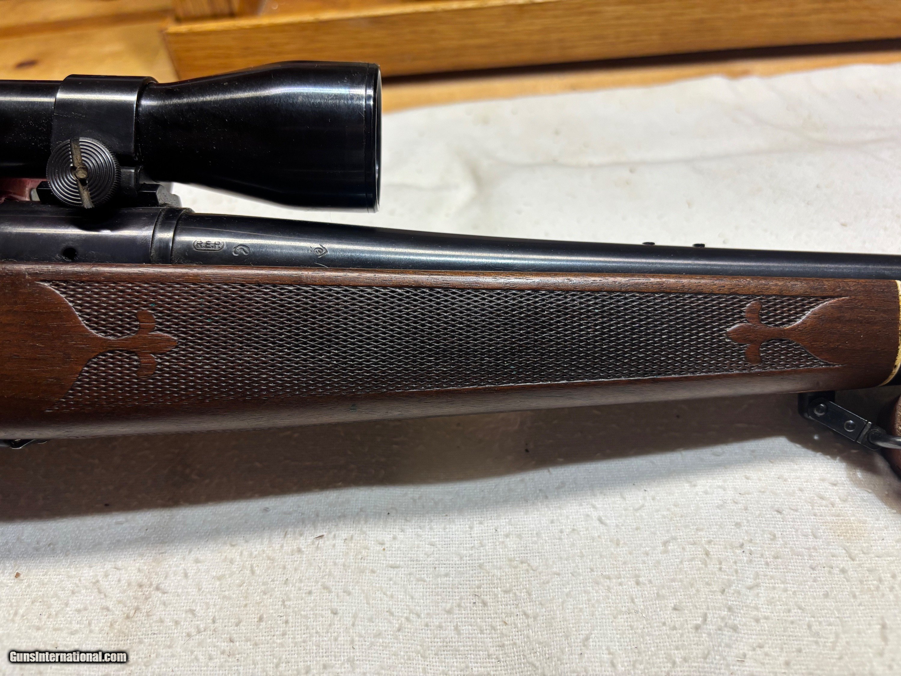 Description: Beautiful Remington Model 700 Bolt Action Rifle in 280 Caliber. This hunting rifle is in great condition with a 4 K Weaver Scope, sling , Monte Carlo style cheek piece. The stock is in great condition and has checkering customary to a Deluxe grade and has the black tip on the end. The 20 inch barrel has a clean crisp bore and Serial number is 27042 indicative of a Pre 64 piece. This well care for rifle would be a great addition to your hunting arsenal. Original receiver sight and standard rear sight which were removed will be included as well. Buyer pays all costs of shipping and insurance calculated to your FFL location. Buyer is responsible for all taxes. Cashiers check or money order only accepted. ( Shipping to Alaska, Hawaii, California not available) (No Returns) SOLD Rifle Caliber: .280 Remington Manufacturer: Remington Model: 700 Serial Number: 27043 Barrel Length: 20 inches Condition: Great Metal Condition: Great Wood Condition: Great Bore Condition: Great Action: Bolt |