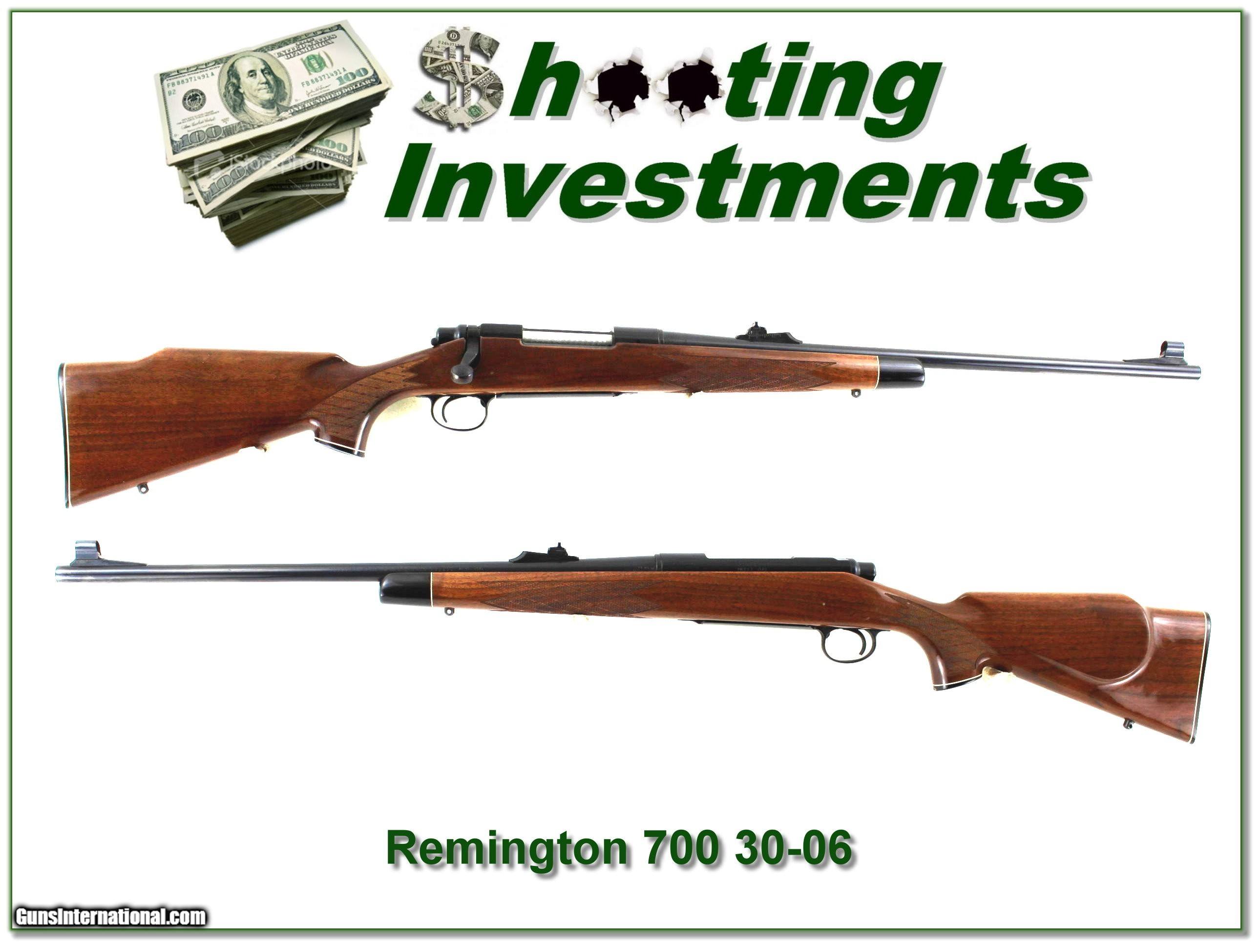 Description: Collectors and hunters, this is an excellent near new Remington 700 BDL in 30-06. It was made in 1986 and has a 22in barrel with open sights. I don’t find any marks on the metal and none of note on the wood. It is a real Shooting Investment. Shipping and insurance is $49. Please email me with any questions or larger pictures. (Consign your quality firearms with Shooting Investments for only 12%! Let me know if you have any you would like to sell!) 24-0160 Payment: Payment is by Money Order, Cashier’s Check or Personal Check. I can now also accept Credit Cards (MasterCard, Visa, Discover & American Express) with a 3% convenience fee. Shipping: The shipping charge will be listed in each description. It is $49 for most firearms. Some heavy guns or those insured for over $2000 will be higher. Shipments to Alaska and Hawaii are higher because air shipment is required. Most firearms are shipped on Tuesday and Thursday and usually in 5 days of receipt of payment. We package all shipments carefully and insure them. Optics are shipped Priority Mail and most other non-firearm shipments are shipped First Class. Returns: Our return policy is simple. If for any reason you are not pleased with your purchase, you may return your item for a full refund of purchase price. Ammunition cannot be returned. It is important to us that you are happy. Guns cannot be fired or dissembled before returning them and they must be returned in the same condition as received. Notification of a return must occur within 3 days of receipt at your dealer. Shipping, convenience and dealer fees are not refundable and are the responsibility of the buyer. Lay-a-way: If needed, we offer a 60 day lay-a-way option on most firearms. It is 1/3 now, 1/3 in 30 days and 1/3 in 60 days. Lay-a-way firearm sales are final and cannot be returned. If a lay-a-way is not completed the first payment cannot be refunded. Consigning your firearms with Shooting Investments: We will help you get top dollar for your firearms. While most local guns shops charge 20% or more, our fee is only 12% with a minimum of $75. At your local gun shop it might take months to sell. Selling on-line provides instant access to thousands of interested buyers. You won’t find any other on-line dealer willing to sell your firearms for only 12% or listing every gun on 3 separate s. Selling through an House typically costs the seller 15% and the buyer an addition 15% (so 30%) and you have to wait several months to sell and longer to receive funds. If properly priced, we will sell your firearms within a few weeks. Send us an email or give us a call and we’ll explain how easy it is for you to get top dollar. Trading: Trading for us is really just buying your gun to re-sell. If you have a gun you want to trade, please email a picture and we will let you know what we can give for it. You will always get more if we sell it for you on consignment. SOLD |