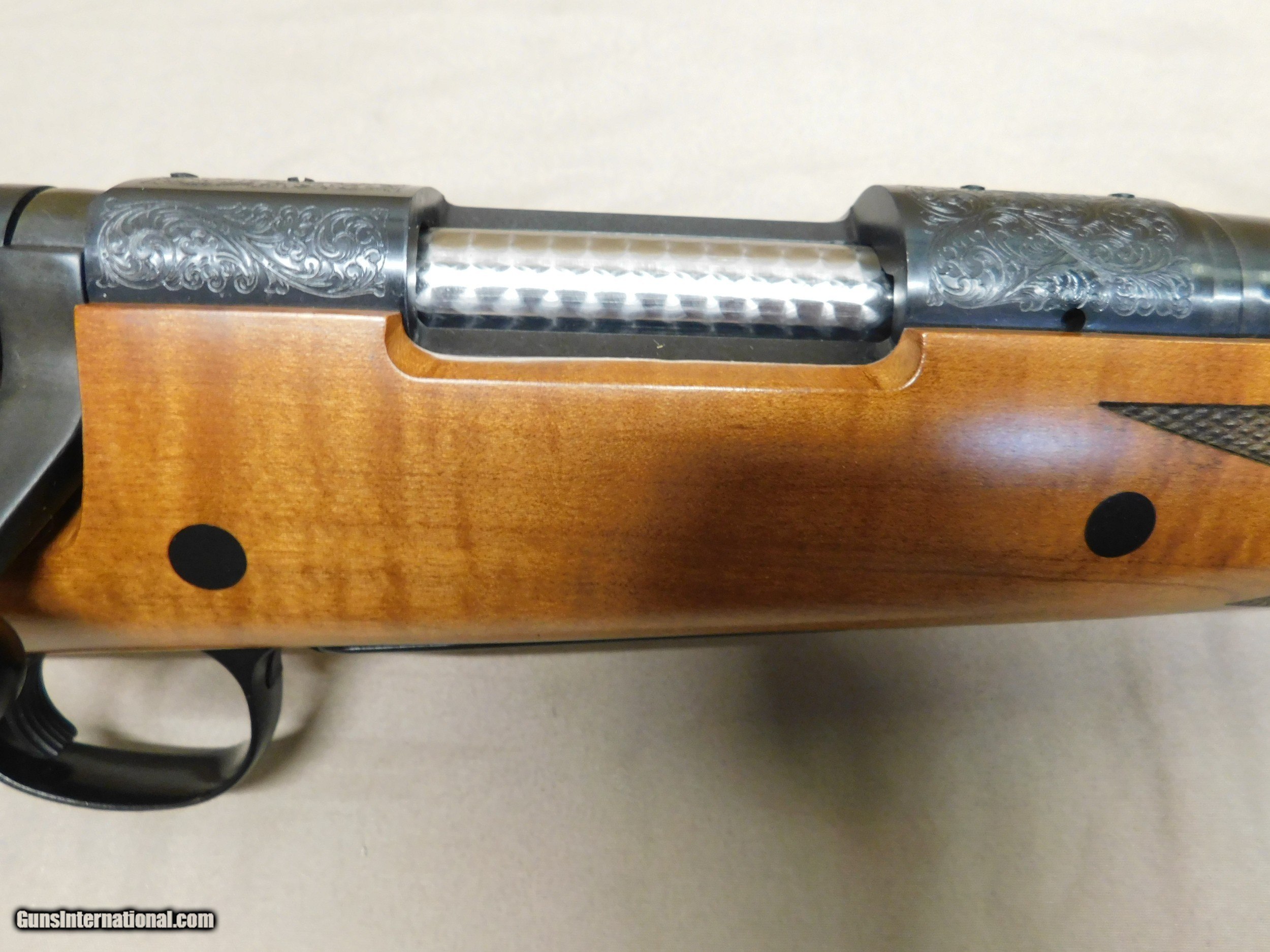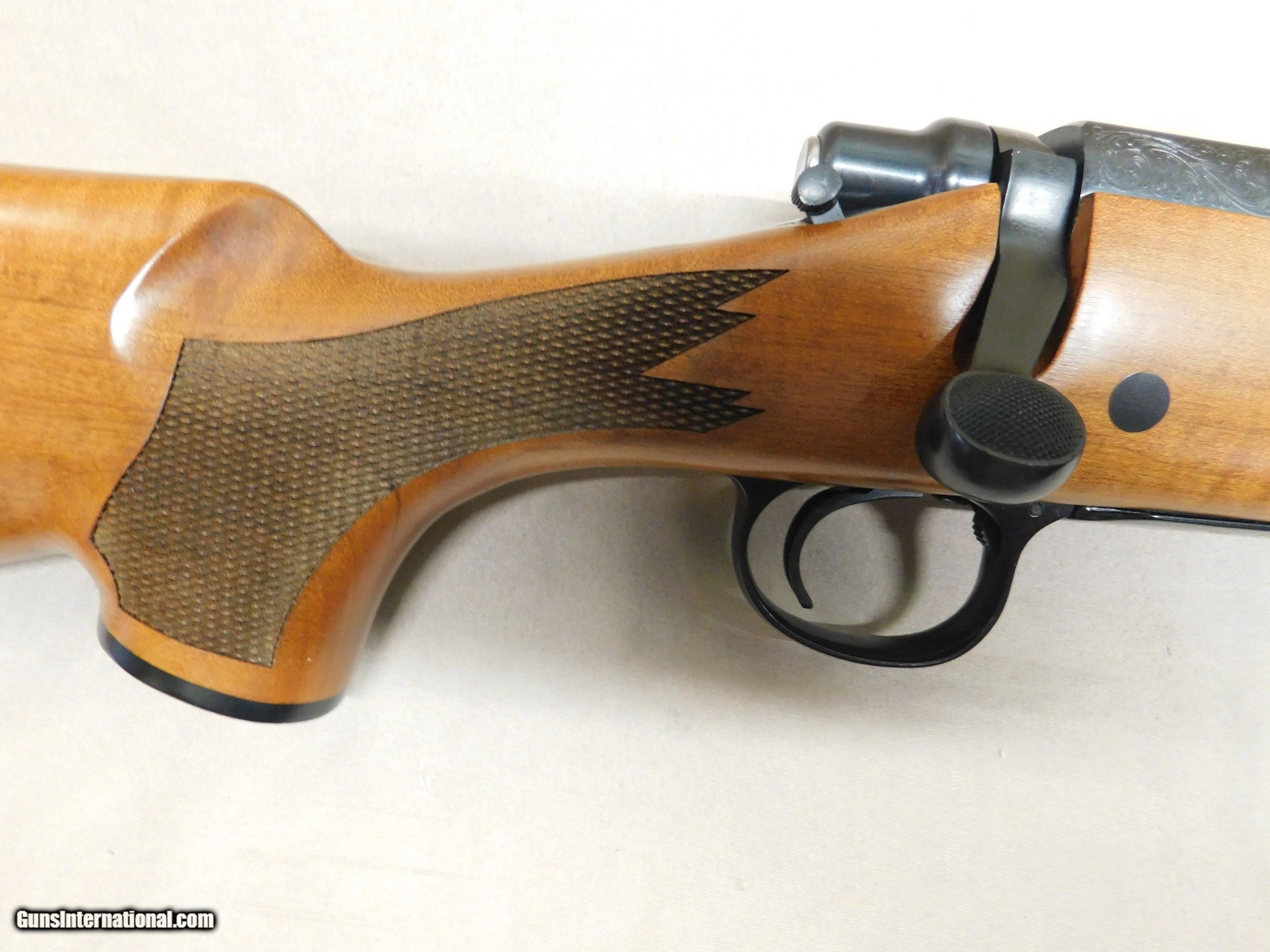 Description: This is a new unfired Remington 700 CDL 270 WSM bolt action rifle It is a 3+1 shot with a 24" blued barrel It a N.W.T.F. in collector case, Hard case with green felt lined Highly engraved reciever with checkered walnut stock, Mfg 2005 SN-WT032277 SOLD Rifle Caliber: .270 Winchester Short Magnum Manufacturer: Remington Model: 700 CDL Serial Number: WT062277 Barrel Length: 24 Condition: New in Collector Case Metal Condition: Excellent Wood Condition: Excellent Bore Condition: Excellent Barrels: Blue Barrel Type: Round Action: Bolt Stock: Checkered Walnut with sling studs Butt Pad: Rubber Finish: Blue Manufacture Date: 2005 Extras: Highly Engraved Receiver Case: In Green felt line Hard case |
