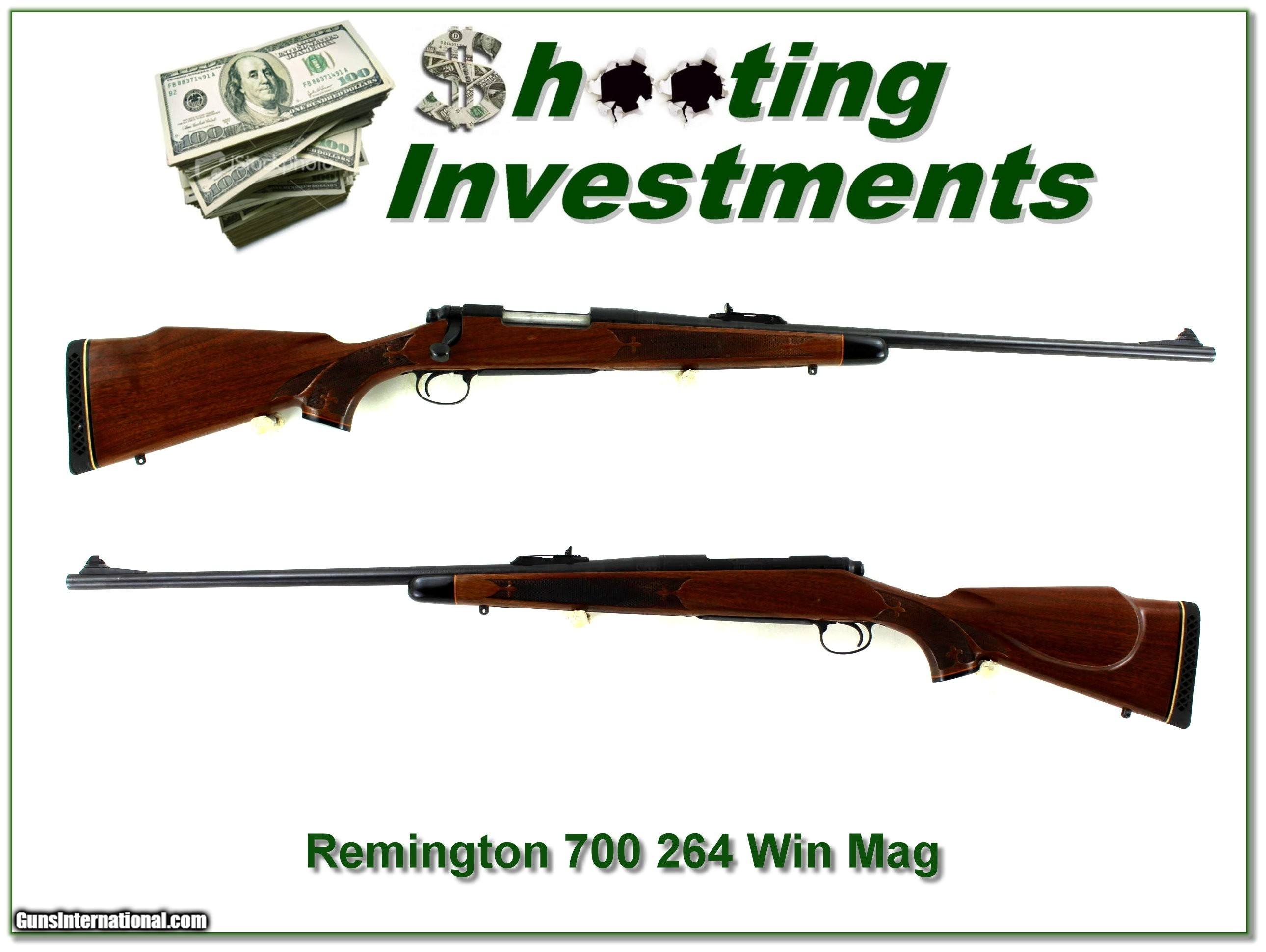 Description: Collectors, this is an excellent condition 1966 made Remington 700 in 264 Winchester Magnum. It is the early Stainless Steel 700. I’ve had many but none as nice as this one. Most have fading of the coating on the receiver. This one doesn’t have any fading. The metal is about new with a 24in barrel and factory sights. The wood has only a few insignificant handing marks. From the bolt face I’m sure this one was test fired only. I’m not sure you can find a nicer one. It is a real Shooting Investment. Shipping and insurance is $49. Please email me with any questions or larger pictures. (Consign your quality firearms with Shooting Investments for only 12%! Let me know if you have any you would like to sell!) 23-0824 Payment: Payment is by Money Order, Cashier’s Check or Personal Check. I can now also accept Credit Cards (MasterCard, Visa, Discover & American Express) with a 3% convenience fee. Shipping: The shipping charge will be listed in each description. It is $49 for most firearms. Some heavy guns or those insured for over $2000 will be higher. Shipments to Alaska and Hawaii are higher because air shipment is required. Most firearms are shipped on Tuesday and Thursday and usually in 5 days of receipt of payment. We package all shipments carefully and insure them. Optics are shipped Priority Mail and most other non-firearm shipments are shipped First Class. Returns: Our return policy is simple. If for any reason you are not pleased with your purchase, you may return your item for a full refund of purchase price. Ammunition cannot be returned. It is important to us that you are happy. Guns cannot be fired or dissembled before returning them and they must be returned in the same condition as received. Notification of a return must occur within 3 days of receipt at your dealer. Shipping, convenience and dealer fees are not refundable and are the responsibility of the buyer. Lay-a-way: If needed, we offer a 60 day lay-a-way option on most firearms. It is 1/3 now, 1/3 in 30 days and 1/3 in 60 days. Lay-a-way firearm sales are final and cannot be returned. If a lay-a-way is not completed the first payment cannot be refunded. Consigning your firearms with Shooting Investments: We will help you get top dollar for your firearms. While most local guns shops charge 20% or more, our fee is only 12% with a minimum of $75. At your local gun shop it might take months to sell. Selling on-line provides instant access to thousands of interested buyers. You won’t find any other on-line dealer willing to sell your firearms for only 12% or listing every gun on 3 separate s. Selling through an House typically costs the seller 15% and the buyer an addition 15% (so 30%) and you have to wait several months to sell and longer to receive funds. If properly priced, we will sell your firearms within a few weeks. Send us an email or give us a call and we’ll explain how easy it is for you to get top dollar. Trading: Trading for us is really just buying your gun to re-sell. If you have a gun you want to trade, please email a picture and we will let you know what we can give for it. You will always get more if we sell it for you on consignment. SOLD |