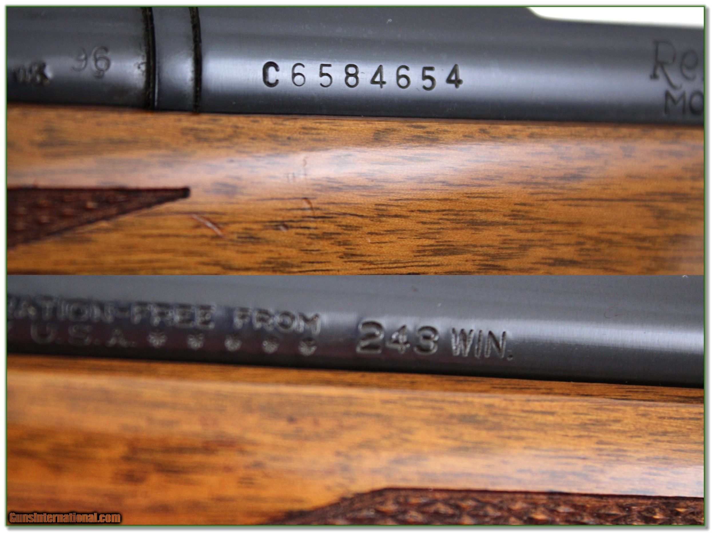 Description: This is a 1990 made Remington 700 in 243 Winchester. It has a 22in barrel with open sights and the metal is in excellent condition. From the bolt jeweling I’m sure only a few rounds fired. The wood has beautiful grain and figure with a few marks. It will make a classic hunting gun! Shipping and insurance is $49. Please email me with any questions or larger pictures. (Consign your quality firearms with Shooting Investments for only 12%! Let me know if you have any you would like to sell!) 23-0020 Payment: Payment is by Money Order, Cashiers Check or Personal Check. I can now also accept Credit Cards (MasterCard, Visa, Discover & American Express) with a 3% convenience fee. Shipping: The shipping charge will be listed in each description. It is $49 for most long guns. Some heavy guns, over 48in boxes or those insured for over $2000 will be higher. Shipments to Alaska and Hawaii are higher because air shipment is required. Most firearms are shipped on Tuesday and Thursday and usually in 5 days of receipt of payment. We package all shipments carefully and insure them. Optics are shipped Priority Mail and most other non-firearm shipments are shipped First Class. Returns: Our return policy is simple. If for any reason you are not pleased with your purchase, you may return your item for a full refund of purchase price. Ammunition cannot be returned. It is important to us that you are happy. Guns cannot be fired or dissembled before returning them and they must be returned in the same condition as received. Notification of a return must occur with-in 3 days of receipt at your dealer. Shipping, convenience and dealer fees are not refundable and are the responsibility of the buyer. Lay-a-way: If needed, we offer a 60 day lay-a-way option on most firearms. It is 1/3 now, 1/3 in 30 days and 1/3 in 60 days. Lay-a-way firearm sales are final and if not completed the first payment cannot be returned. Consigning your firearms with Shooting Investments: We will help you get top dollar for your firearms. While most local guns shops charge 20% or more, our fee is only 12% with a minimum of $75. At your local gun shop it might take months to sell. Selling on-line provides instant access to thousands of interested buyers. You won’t find any other on-line dealer willing to sell your firearms for only 12% or listing every gun on 3 separate s. Selling through an House typically costs the seller 15% and the buyer an addition 15% (so 30%) and you have to wait several months to sell and longer to receive funds. If properly priced, we will sell your firearms in a few weeks. Send us an email or give us a call and we’ll explain how easy it is for you to get top dollar. Trading: Trading for use is really just buying your gun to re-sell. If you have a gun you want to trade, please email a picture and we will let you know what we can give or it. You will always get more if we sell it for you on consignment. Help for California Buyers: We are happy to ship to California. It is the buyer’s responsibility to make sure any item you buy is legal in your state. We are also happy to help with your purchase of a firearm from someone other than us. If you see a gun you would like to buy but the seller can’t or won’t ship to California they can ship to use and we’ll then ship it to your California dealer. The cost for this service is only $30 + shipping. Let us know if we can help! SOLD |