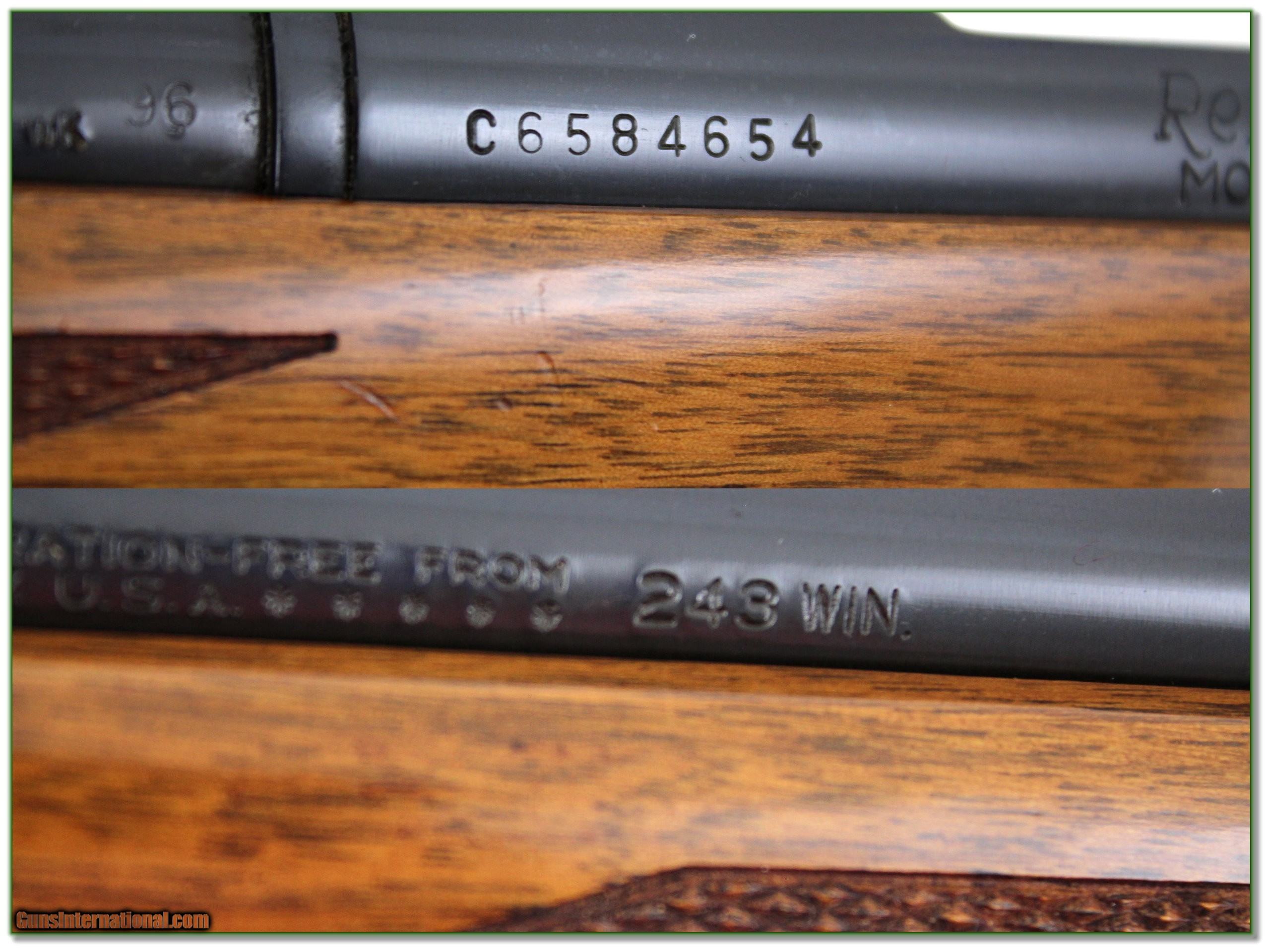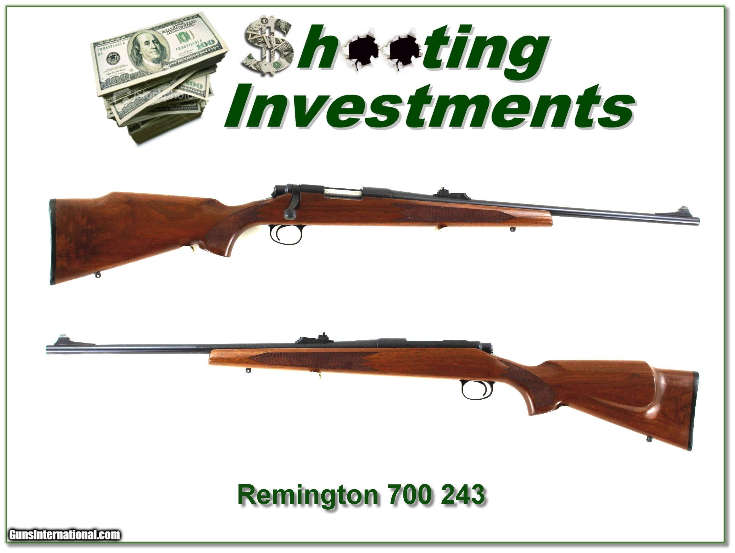 Description: This is a 1990 made Remington 700 in 243 Winchester. It has a 22in barrel with open sights and the metal is in excellent condition. From the bolt jeweling I’m sure only a few rounds fired. The wood has beautiful grain and figure with a few marks. It will make a classic hunting gun! Shipping and insurance is $49. Please email me with any questions or larger pictures. (Consign your quality firearms with Shooting Investments for only 12%! Let me know if you have any you would like to sell!) 23-0020 Payment: Payment is by Money Order, Cashier’s Check or Personal Check. I can now also accept Credit Cards (MasterCard, Visa, Discover & American Express) with a 3% convenience fee. Shipping: The shipping charge will be listed in each description. It is $49 for most firearms. Some heavy guns or those insured for over $2000 will be higher. Shipments to Alaska and Hawaii are higher because air shipment is required. Most firearms are shipped on Tuesday and Thursday and usually in 5 days of receipt of payment. We package all shipments carefully and insure them. Optics are shipped Priority Mail and most other non-firearm shipments are shipped First Class. Returns: Our return policy is simple. If for any reason you are not pleased with your purchase, you may return your item for a full refund of purchase price. Ammunition cannot be returned. It is important to us that you are happy. Guns cannot be fired or dissembled before returning them and they must be returned in the same condition as received. Notification of a return must occur within 3 days of receipt at your dealer. Shipping, convenience and dealer fees are not refundable and are the responsibility of the buyer. Lay-a-way: If needed, we offer a 60 day lay-a-way option on most firearms. It is 1/3 now, 1/3 in 30 days and 1/3 in 60 days. Lay-a-way firearm sales are final and cannot be returned. If a lay-a-way is not completed the first payment cannot be refunded. Consigning your firearms with Shooting Investments: We will help you get top dollar for your firearms. While most local guns shops charge 20% or more, our fee is only 12% with a minimum of $75. At your local gun shop it might take months to sell. Selling on-line provides instant access to thousands of interested buyers. You won’t find any other on-line dealer willing to sell your firearms for only 12% or listing every gun on 3 separate s. Selling through an House typically costs the seller 15% and the buyer an addition 15% (so 30%) and you have to wait several months to sell and longer to receive funds. If properly priced, we will sell your firearms within a few weeks. Send us an email or give us a call and we’ll explain how easy it is for you to get top dollar. Trading: Trading for us is really just buying your gun to re-sell. If you have a gun you want to trade, please email a picture and we will let you know what we can give for it. You will always get more if we sell it for you on consignment. Help for California Buyers: We are happy to ship to California. It is the buyer’s responsibility to make sure any item you buy is legal in your state. We are also happy to help with your purchase of a firearm from someone other than us. If you see a gun you would like to buy but the seller can’t or won’t ship to California they can ship to use and we’ll then ship it to your California dealer. The cost for this service is only $30 + shipping. Let us know if we can help! SOLD |