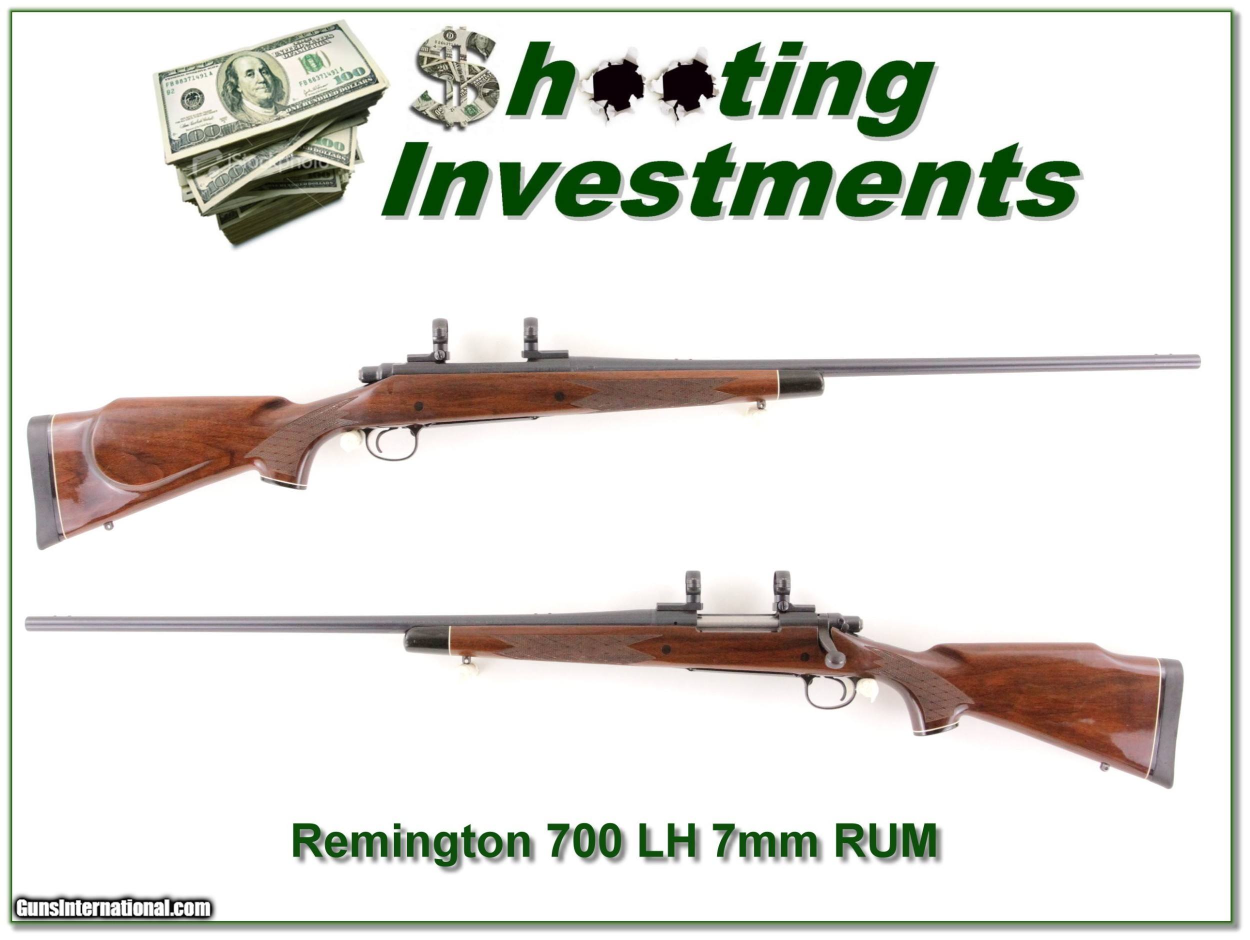 Description: This is a very hard to find Remington 700 Left-Handed in the flat shooting 7mm RUM! The blue is in excellent condition and the wood has just a few minor marks. The barrel is 26in and it comes with bases and rings as seen. It will make an excellent long-range gun for the Left-Handed shooter. Shipping with insurance is $39. Please email me with any questions or larger pictures. (Consign your quality firearms with Shooting Investments for only 12%! Let me know if you have any you would like to sell!) 19-1536 Payment: Payment is by Money Order, Cashiers Check or Personal Check. I can now also accept Credit Cards (MasterCard, Visa, Discover & American Express) with a 3% convenience fee. PayPal can be used for some items but never for firearms. Shipping: The shipping charge will be listed in each description. It is $39 for most firearms. Some heavy guns or those insured for over $2000 will be higher. Shipments to Alaska and Hawaii are higher because air shipment is required. Most firearms are shipped on Tuesday and Thursday and usually in 5 days of receipt of payment. We package all shipments carefully and insure them. Optics are shipped Priority Mail and most other non-firearm shipments are shipped First Class. Returns: Our return policy is simple. If for any reason you are not pleased with your purchase, you may return your item for a full refund of purchase price. Ammunition cannot be returned. It is important to us that you are happy. Guns cannot be fired or dissembled before returning them and they must be returned in the same condition as received. Notification of a return must occur with-in 3 days of receipt at your dealer. Shipping, convenience and dealer fees are not refundable and are the responsibility of the buyer. Lay-a-way: If needed, we offer a 60 day lay-a-way option on most firearms. It is 1/3 now, 1/3 in 30 days and 1/3 in 60 days. Lay-a-way firearm sales are final and if not completed the first payment cannot be returned. Consigning your firearms with Shooting Investments: We will help you get top dollar for your firearms. While most local guns shops charge 20% or more, our fee is only 12% with a minimum of $75. At your local gun shop it might take months to sell. Selling on-line provides instant access to thousands of interested buyers. You won’t find any other on-line dealer willing to sell your firearms for only 12% or listing every gun on 3 separate s. Selling through an House typically costs the seller 15% and the buyer an addition 15% (so 30%) and you have to wait several months to sell and longer to receive funds. If properly priced, we will sell your firearms in a few weeks. Send us an email or give us a call and we’ll explain how easy it is for you to get top dollar. Trading: Trading for use is really just buying your gun to re-sell. If you have a gun you want to trade, please email a picture and we will let you know what we can give or it. You will always get more if we sell it for you on consignment. Help for California Buyers: We are happy to ship to California. It is the buyer’s responsibility to make sure any item you buy is legal in your state. We are also happy to help with your purchase of a firearm from someone other than us. If you see a gun you would like to buy but the seller can’t or won’t ship to California they can ship to use and we’ll then ship it to your California dealer. The cost for this service is only $30 + shipping. Let us know if we can help! SOLD |