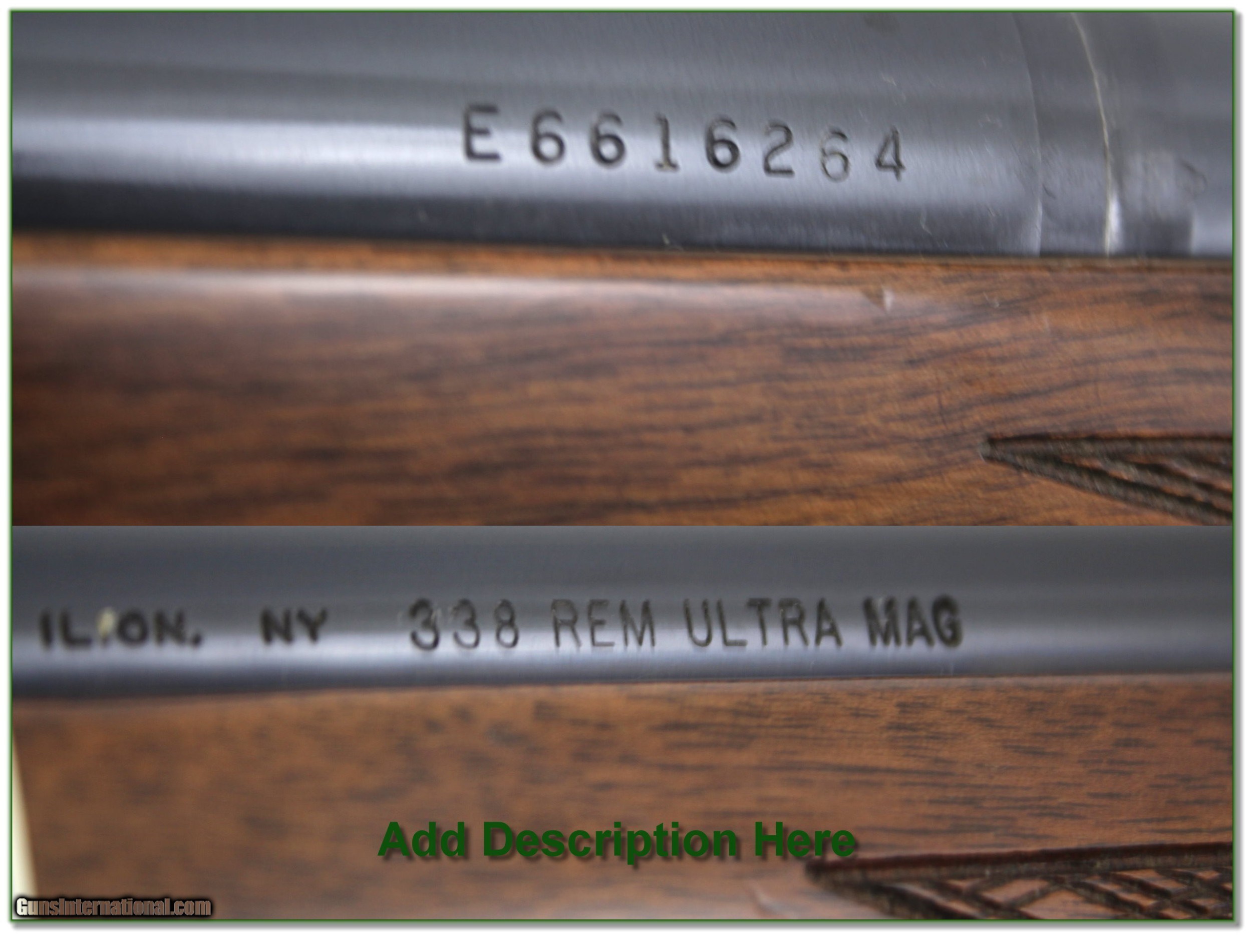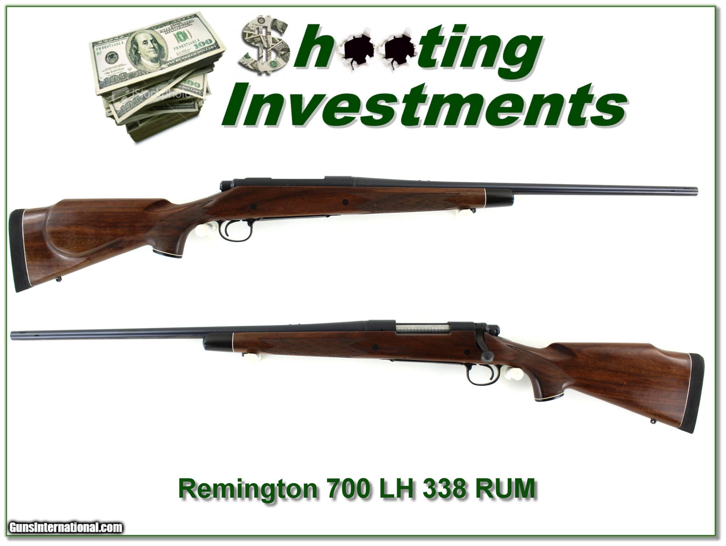 Description: This is a hard to find Left-handed Remington 700 in the hard hitting 338 RUM! It is in excellent condition with factory engraved floorplate as seen. I see no marks of note on blue or wood. The barrel was shortened to 23in with a target crown and magna-porting. Recoil will be more like a 30-06 and this one is perfect for hunting in the deep woods where a 26in barrel just isn’t practical. It has a professionally installed decelerator pad with 13.5in LOP. It will make an excellent big game hunting gun. Shipping and insurance is $39. Please email me with any questions or larger pictures. (Consign your quality firearms with Shooting Investments for only 12%! Let me know if you have any you would like to sell!) 20-0199 Payment: Payment is by Money Order, Cashiers Check or Personal Check. I can now also accept MasterCard and Visa with a 3% convenience fee. PayPal can be used for some items but never firearms. Please let us know if you would like to pay via PayPal. Shipping: The shipping charge will be listed in each description. It is $39 for most long guns and $29 for most handguns. Some heavy guns or those insured for over $2000 will be higher. Shipments to Alaska and Hawaii are higher because air shipment is required. Most firearms are shipped on Tuesday and Thursday and usually in 5 days of receipt of payment. We package all shipments carefully and insure them. For long guns you can purchase a new Plano case for $19. They now cost us $22 when buying 100 at a time. Optics are shipped Priority Mail and most other non-firearm shipments are shipped First Class. Returns: Our return policy is simple. If for any reason you are not pleased with your purchase, you may return your item for a full refund of purchase price. Ammunition cannot be returned. It is important to us that you are happy. Guns cannot be fired or dissembled before returning them and they must be returned in the same condition as received. Notification of a return must occur with-in 3 days of receipt at your dealer. Shipping, convenience and dealer fees are not refundable and are the responsibility of the buyer. Lay-a-way: If needed, we offer a 60 day lay-a-way option on most firearms. It is 1/3 now, 1/3 in 30 days and 1/3 in 60 days. Lay-a-way firearm sales are final and if not completed the first payment cannot be returned. Consigning your firearms with Shooting Investments: We will help you get top dollar for your firearms. While most local guns shops charge 20% or more, our fee is only 12% with a minimum of $75. At your local gun shop it might take months to sell. Selling on-line provides instant access to thousands of interested buyers. You won’t find any other on-line dealer willing to sell your firearms for only 12% or listing every gun on 3 separate s. Selling through an House typically costs the seller 15% and the buyer an addition 15% (so 30%) and you have to wait several months to sell and longer to receive funds. If properly priced, we will sell your firearms in a few weeks. Send us an email or give us a call and we’ll explain how easy it is for you to get top dollar. Trading: Trading for use is really just buying your gun to re-sell. If you have a gun you want to trade, please email a picture and we will let you know what we can give or it. You will always get more if we sell it for you on consignment. Help for California Buyers: We are happy to ship to California. It is the buyer’s responsibility to make sure any item you buy is legal in your state. We are also happy to help with your purchase of a firearm from someone other than us. If you see a gun you would like to buy but the seller can’t or won’t ship to California they can ship to use and we’ll then ship it to your California dealer. The cost for this service is only $30 + shipping. Let us know if we can help! SOLD |