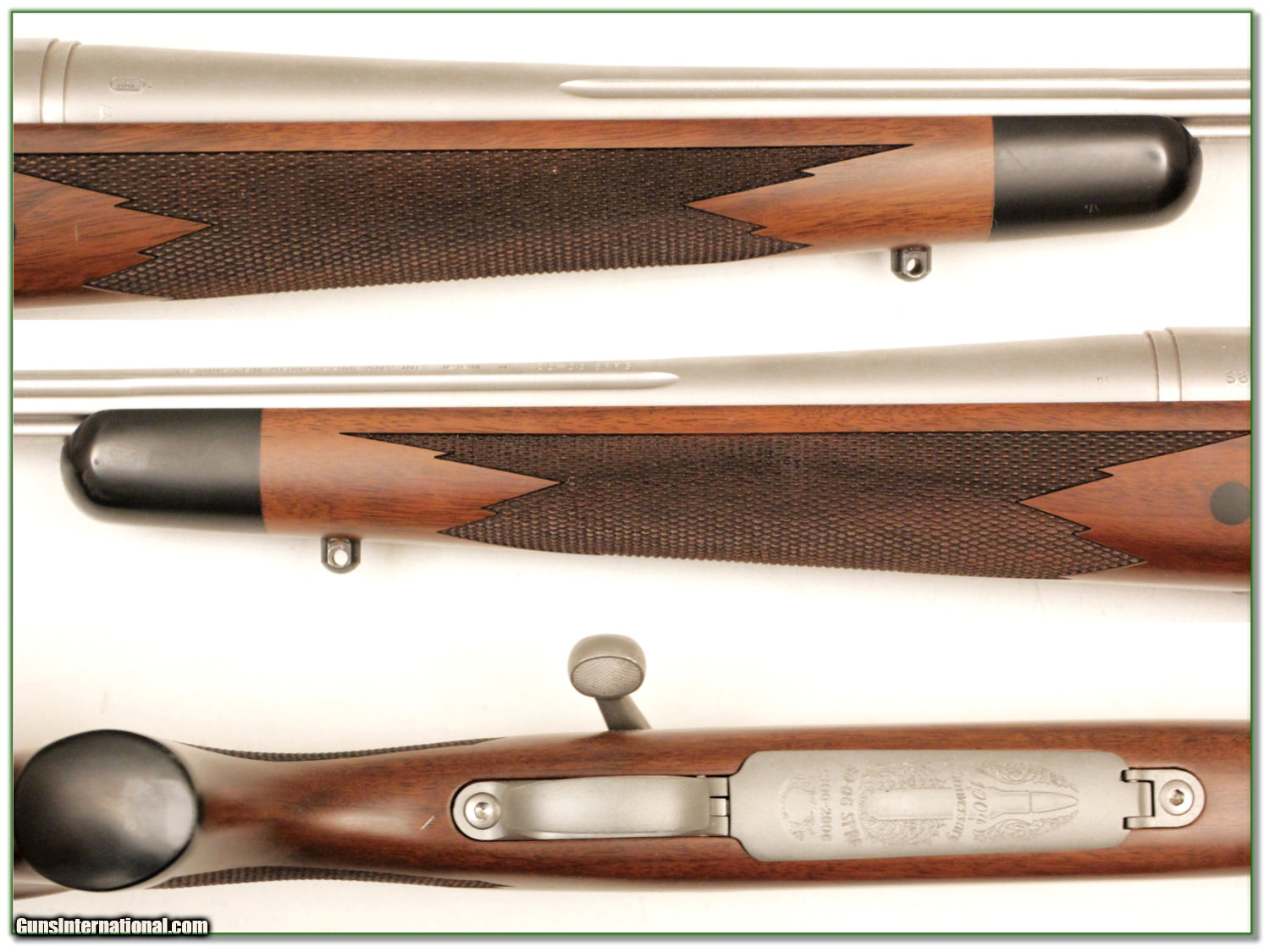 Description: Collectors, this is a 700 Limited. It is the 2006 100 year 30-06 commemorative. These were made with beautiful Walnut stock and stainless fluted barres. The floorplate was engraved as shown. I am selling this one on consignment and as such lay-a-way can’t be used. It does of course have the standard 3 day inspection. Shipping and insurance is $35 or $15 more if you want it shipped in a new Plano hard case. Please email me with any questions or larger pictures. (I now consign quality firearms only 10%! Let me know if you have any you would like to sell!) [15-1314] Payment: Payment is by Money Order, Cashiers Check or Personal Check. I can now also accept MasterCard and Visa with a 3% convenience fee. PayPal can be used for some items but never firearms. Please let us know if you would like to pay via PayPal. Shipping: The shipping charge will be listed in each description. It is $35 for most guns. Some heavy guns or those insured for over $2000 will be higher. Shipments to Alaska and Hawaii are higher because air shipment is required. Most firearms are shipped within 5 days of receipt of payment. We prefer shipping at the beginning of the week to avoid firearms in transit over weekends. We package all shipments carefully and insure them for the full purchase price, rounded up to the next $100. In the unlikely event that damage occurs, it is important that you save all packaging material for the claims process. Optics are shipped Priority Mail and most other non-firearm shipments are shipped First Class. Returns: Our return policy is simple. If for any reason you are not pleased with your purchase, you may return your item for a refund. The only exception is ammunition, it cannot be returned. It is important to us that you are happy. Guns cannot be fired or dissembled before returning them and must be returned in the same condition as received. Notification of a return must occur with-in 3 days of receipt at your dealer. Shipping, convenience and dealer fees are not refundable and are the responsibility of the buyer. Lay-a-way: If needed, we offer a 60 day lay-a-way option on most firearms. It is 1/3 now, 1/3 in 30 days and 1/3 in 60 days. Lay-a-way firearm sales are final. Consigning your firearms with Shooting Investments: We will help you get top dollar for your firearms. While most local guns shops charge 20% or more, our fee is only 10% with a minimum of $50. At your local gun shop it might take months to sell. Selling on-line provides instant access to thousands of interested buyers. You won’t find any other on-line dealer willing to sell your firearms for only 10% or listing every gun on 4 separate s. Selling through an House typically costs the seller 15% and the buyer an addition 15% (so 30%) and you have to wait several months to sell and longer to receive funds. If properly priced, we will sell your firearms in a week or two. Send us an email or give us a call and we’ll explain how easy it is for you to get top dollar. Trading: We collect guns and usually just trade for guns we want to add to our collections. We often sell guns for others wanting to purchase one of ours. We find this the most fair to both of us. Our Commission is only 10% and we hold the gun you want until yours sells. Please contact us if you want to sell one of yours to buy one of ours. Help for California Buyers: We are happy to ship to California. It is the buyer’s responsibility to make sure any item you buy is legal in your state. We are also happy to help with your purchase of a firearm from someone other than us. If you see a gun you would like to buy but the seller can’t or won’t ship to California we can help. You buy the gun and have it shipped to us. We’ll then ship it to your California dealer. The cost for this service is only $30 + shipping. Let me know if we can help! SOLD |
