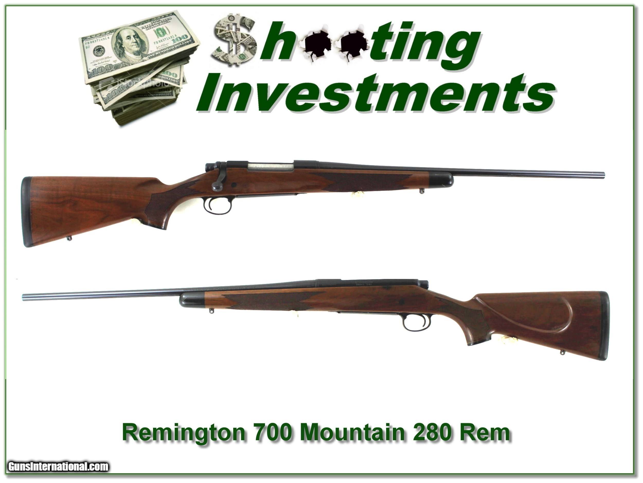 Description: This is a very nice and hard to find Remington 700 Mountain rifle in 280 Remington. This one was made in 1995. These are lightweight guns made with 24in pencil barrels. This one has a few minor marks from some use and will make a classic lightweight hunting gun in a hard to find rifle. It is a real Shooting Investment for sure! Shipping and insurance is $49. Please email me with any questions or larger pictures. (Consign your quality firearms with Shooting Investments for only 12%! Let me know if you have any you would like to sell!) 22-0329 Payment: Payment is by Money Order, Cashiers Check or Personal Check. I can now also accept Credit Cards (MasterCard, Visa, Discover & American Express) with a 3% convenience fee. Shipping: The shipping charge will be listed in each description. It is $49 for most long guns. Some heavy guns, over 48in boxes or those insured for over $2000 will be higher. Shipments to Alaska and Hawaii are higher because air shipment is required. Most firearms are shipped on Tuesday and Thursday and usually in 5 days of receipt of payment. We package all shipments carefully and insure them. Optics are shipped Priority Mail and most other non-firearm shipments are shipped First Class. Returns: Our return policy is simple. If for any reason you are not pleased with your purchase, you may return your item for a full refund of purchase price. Ammunition cannot be returned. It is important to us that you are happy. Guns cannot be fired or dissembled before returning them and they must be returned in the same condition as received. Notification of a return must occur with-in 3 days of receipt at your dealer. Shipping, convenience and dealer fees are not refundable and are the responsibility of the buyer. Lay-a-way: If needed, we offer a 60 day lay-a-way option on most firearms. It is 1/3 now, 1/3 in 30 days and 1/3 in 60 days. Lay-a-way firearm sales are final and if not completed the first payment cannot be returned. Consigning your firearms with Shooting Investments: We will help you get top dollar for your firearms. While most local guns shops charge 20% or more, our fee is only 12% with a minimum of $75. At your local gun shop it might take months to sell. Selling on-line provides instant access to thousands of interested buyers. You won’t find any other on-line dealer willing to sell your firearms for only 12% or listing every gun on 3 separate s. Selling through an House typically costs the seller 15% and the buyer an addition 15% (so 30%) and you have to wait several months to sell and longer to receive funds. If properly priced, we will sell your firearms in a few weeks. Send us an email or give us a call and we’ll explain how easy it is for you to get top dollar. Trading: Trading for use is really just buying your gun to re-sell. If you have a gun you want to trade, please email a picture and we will let you know what we can give or it. You will always get more if we sell it for you on consignment. Help for California Buyers: We are happy to ship to California. It is the buyer’s responsibility to make sure any item you buy is legal in your state. We are also happy to help with your purchase of a firearm from someone other than us. If you see a gun you would like to buy but the seller can’t or won’t ship to California they can ship to use and we’ll then ship it to your California dealer. The cost for this service is only $30 + shipping. Let us know if we can help! SOLD |