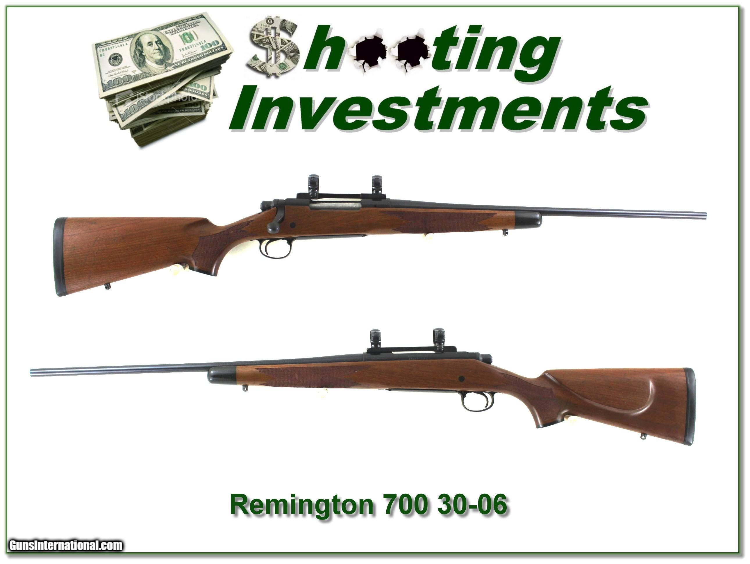 Description: Hunters, this is the lightweight Remington 700 “Mountain” rifle in the do almost everything 30-06! It was made in 1989. The blue is excellent, and the wood has some marks from use as seen. It has a lightweight 22in barrel and comes with bases and rings as seen. It will make a classic hunting gun! Shipping and insurance is $49. Please email me with any questions or larger pictures. (Consign your quality firearms with Shooting Investments for only 12%! Let me know if you have any you would like to sell!) 24-1116 Payment: Payment is by Money Order, Cashier’s Check or Personal Check. I can now also accept Credit Cards (MasterCard, Visa, Discover & American Express) with a 3% convenience fee. Shipping: The shipping charge will be listed in each description. It is $49 for most firearms. Some heavy guns or those insured for over $2000 will be higher. Shipments to Alaska and Hawaii are higher because air shipment is required. Most firearms are shipped on Tuesday and Thursday and usually in 5 days of receipt of payment. We package all shipments carefully and insure them. Optics are shipped Priority Mail and most other non-firearm shipments are shipped First Class. Returns: Our return policy is simple. If for any reason you are not pleased with your purchase, you may return your item for a full refund of purchase price. Ammunition cannot be returned. It is important to us that you are happy. Guns cannot be fired or dissembled before returning them and they must be returned in the same condition as received. Notification of a return must occur within 3 days of receipt at your dealer. Shipping, convenience and dealer fees are not refundable and are the responsibility of the buyer. Lay-a-way: If needed, we offer a 60 day lay-a-way option on most firearms. It is 1/3 now, 1/3 in 30 days and 1/3 in 60 days. Lay-a-way firearm sales are final and cannot be returned. If a lay-a-way is not completed the first payment cannot be refunded. Consigning your firearms with Shooting Investments: We will help you get top dollar for your firearms. While most local guns shops charge 20% or more, our fee is only 12% with a minimum of $75. At your local gun shop it might take months to sell. Selling on-line provides instant access to thousands of interested buyers. You won’t find any other on-line dealer willing to sell your firearms for only 12% or listing every gun on 3 separate s. Selling through an House typically costs the seller 15% and the buyer an addition 15% (so 30%) and you have to wait several months to sell and longer to receive funds. If properly priced, we will sell your firearms within a few weeks. Send us an email or give us a call and we’ll explain how easy it is for you to get top dollar. Trading: Trading for us is really just buying your gun to re-sell. If you have a gun you want to trade, please email a picture and we will let you know what we can give for it. You will always get more if we sell it for you on consignment. SOLD |