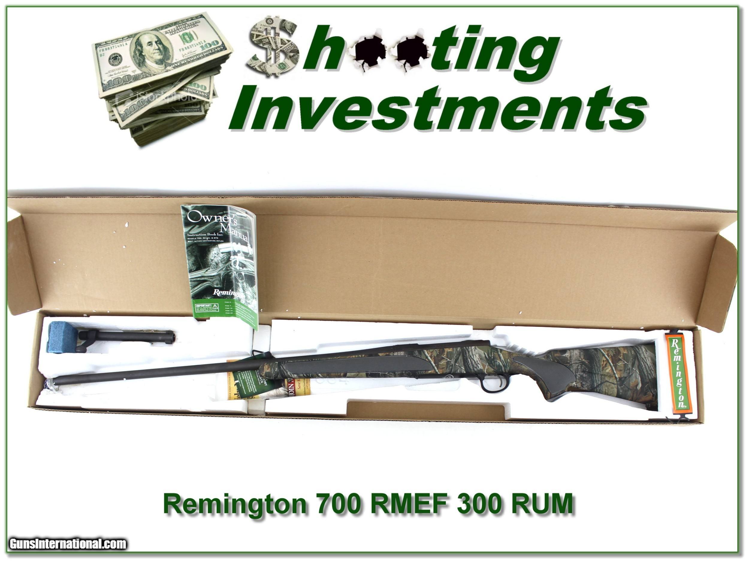 Description: Shooters, hunters and collectors, this is a NIB Remington 700 RMEF in the hard-hitting flat shooting 300 RUM. If fired I can’t tell. There no marks on stock or metal. The barrel is 26in and it comes as seen in box with papers! It is a real Shooting Investment. Shipping and insurance is $39. Please email me with any questions or larger pictures. (Consign your quality firearms with Shooting Investments for only 12%! Let me know if you have any you would like to sell!) 21-1373 Payment: Payment is by Money Order, Cashier’s Check or Personal Check. I can now also accept Credit Cards (MasterCard, Visa, Discover & American Express) with a 3% convenience fee. Shipping: The shipping charge will be listed in each description. It is $39 for most firearms. Some heavy guns or those insured for over $2000 will be higher. Shipments to Alaska and Hawaii are higher because air shipment is required. Most firearms are shipped on Tuesday and Thursday and usually in 5 days of receipt of payment. We package all shipments carefully and insure them. Optics are shipped Priority Mail and most other non-firearm shipments are shipped First Class. Returns: Our return policy is simple. If for any reason you are not pleased with your purchase, you may return your item for a full refund of purchase price. Ammunition cannot be returned. It is important to us that you are happy. Guns cannot be fired or dissembled before returning them and they must be returned in the same condition as received. Notification of a return must occur within 3 days of receipt at your dealer. Shipping, convenience and dealer fees are not refundable and are the responsibility of the buyer. Lay-a-way: If needed, we offer a 60 day lay-a-way option on most firearms. It is 1/3 now, 1/3 in 30 days and 1/3 in 60 days. Lay-a-way firearm sales are final and cannot be returned. If a lay-a-way is not completed the first payment cannot be refunded. Consigning your firearms with Shooting Investments: We will help you get top dollar for your firearms. While most local guns shops charge 20% or more, our fee is only 12% with a minimum of $75. At your local gun shop it might take months to sell. Selling on-line provides instant access to thousands of interested buyers. You won’t find any other on-line dealer willing to sell your firearms for only 12% or listing every gun on 3 separate s. Selling through an House typically costs the seller 15% and the buyer an addition 15% (so 30%) and you have to wait several months to sell and longer to receive funds. If properly priced, we will sell your firearms within a few weeks. Send us an email or give us a call and we’ll explain how easy it is for you to get top dollar. Trading: Trading for us is really just buying your gun to re-sell. If you have a gun you want to trade, please email a picture and we will let you know what we can give for it. You will always get more if we sell it for you on consignment. Help for California Buyers: We are happy to ship to California. It is the buyer’s responsibility to make sure any item you buy is legal in your state. We are also happy to help with your purchase of a firearm from someone other than us. If you see a gun you would like to buy but the seller can’t or won’t ship to California they can ship to use and we’ll then ship it to your California dealer. The cost for this service is only $30 + shipping. Let us know if we can help! SOLD |