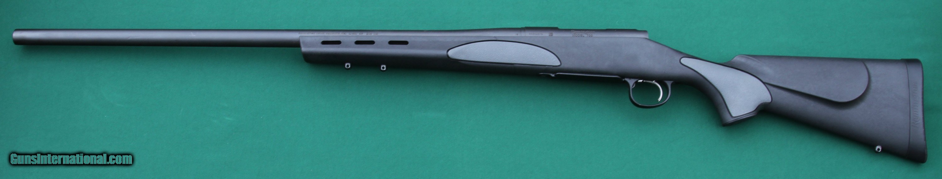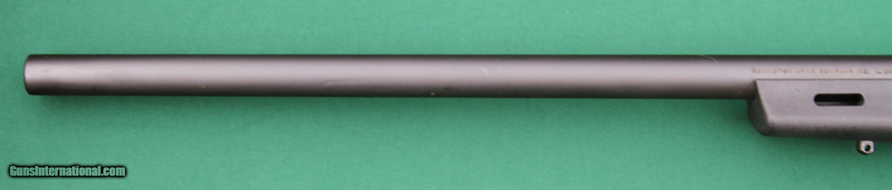 Description: This Remington 700 SPS Varmint .308 Win bolt-action rifle has a synthetic vented beavertail stock with light-gray accented pads on the forend and pistol grip, a 26-inch barrel, a 4+1 ammunition capacity. It is also factory drilled and tapped for iron sights. It comes with the original Owner’s Manual with data stickers, but there are box, papers, or accessories with the gun. The condition of the gun is 99 percent. I hesitate to call anything 100 percent that is not new-in-the-box. The owner says it has about three to four hundred rounds fired through it. The metal has no scratches, mars, scuffs, or signs of wear. The bore is bright and shiny. The synthetic stock is practically perfect; it also has no mars or scuffs, or signs of wear. The Remington rubber recoil pad is also unmarked. The photos are high resolution, so zoom to see details. Contact me for additional photos of any area you would like to see or see better. The buyer pays USPS Priority mail ($40) and insurance ($13.25). Insurance is calculated from the USPS - $11.50 for the first $600 of insurance, plus $1.75 for each additional $100 of insurance (rounded up) above the first $600 dollars. The fastest way to get this gun is to pay with USPS (U.S. Postal Service) money order, as they are like cash. I will ship the pistol immediately upon receipt of a USPS money order and an FFL. As USPS money orders are limited to $1,000, this purchase will require two USPS money orders. I will also accept a personal check and other types of money orders, as well as bank checks and cashier's checks, but I will hold the gun until it clears my bank; this includes bank checks and cashier’s checks. I do not accept credit cards, debit cards, or PayPal. Check or money order must be made out to Jerry Pownall or Barboursville Arms. SOLD |