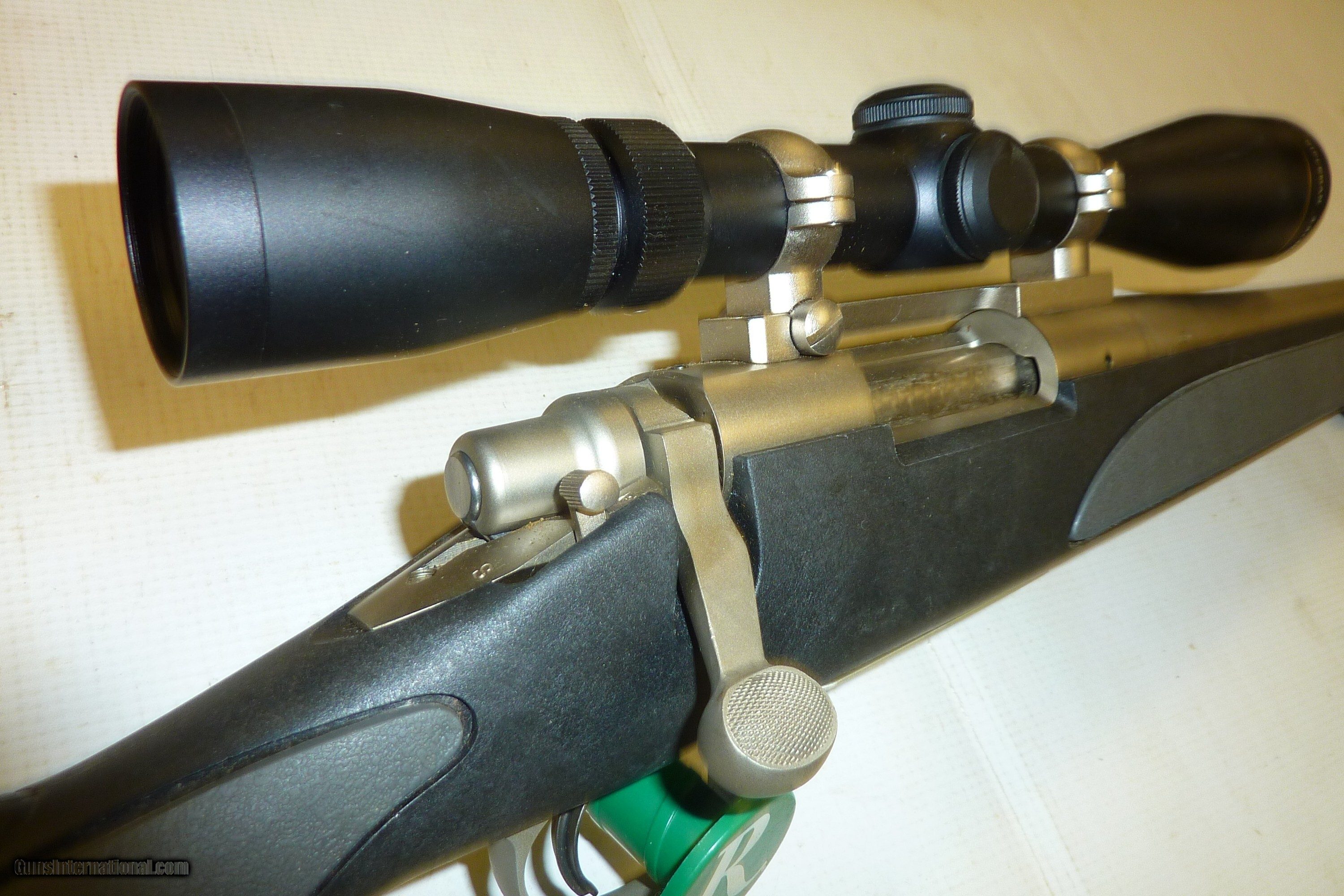 Description: Remington 700 300WSM 24" barrel Stainless, Black Synthetic stock with grey inserts Hinged floorplate, bright bore, Leupold rings and bases support a Leupold Rifleman 3x9x40 rifle scope with a standard duplex. A one-owner. No sales to CA. Additional shipping to AK,HI,PR. Price: $1,199.00 Shipping: $75.00 Contact Seller |