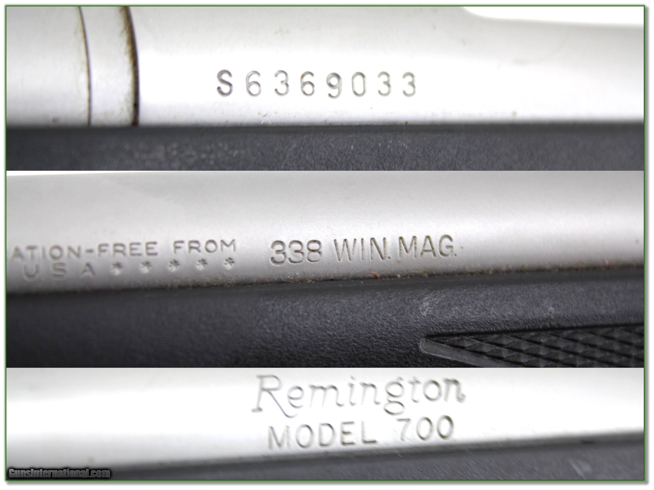Description: This is a near new Remington 700 BDL stainless in the hard-hitting 338 Win Mag. From the jeweling on the bolt I’m sure only a couple rounds fired! It has a 24in barrel and will make a classic all-weather big-game hunting gun. Remember they don’t make them like this anymore! It is a real Shooting Investment! Shipping and insurance is $39. Please email me with any questions or larger pictures. (Consign your quality firearms with Shooting Investments for only 12%! Let me know if you have any you would like to sell!) 20-0979 Payment: Payment is by Money Order, Cashiers Check or Personal Check. I can now also accept Credit Cards (MasterCard, Visa, Discover & American Express) with a 3% convenience fee. Shipping: The shipping charge will be listed in each description. It is $39 for most firearms. Some heavy guns or those insured for over $2000 will be higher. Shipments to Alaska and Hawaii are higher because air shipment is required. Most firearms are shipped on Tuesday and Thursday and usually in 5 days of receipt of payment. We package all shipments carefully and insure them. Optics are shipped Priority Mail and most other non-firearm shipments are shipped First Class. Returns: Our return policy is simple. If for any reason you are not pleased with your purchase, you may return your item for a full refund of purchase price. Ammunition cannot be returned. It is important to us that you are happy. Guns cannot be fired or dissembled before returning them and they must be returned in the same condition as received. Notification of a return must occur with-in 3 days of receipt at your dealer. Shipping, convenience and dealer fees are not refundable and are the responsibility of the buyer. Lay-a-way: If needed, we offer a 60 day lay-a-way option on most firearms. It is 1/3 now, 1/3 in 30 days and 1/3 in 60 days. Lay-a-way firearm sales are final and if not completed the first payment cannot be returned. Consigning your firearms with Shooting Investments: We will help you get top dollar for your firearms. While most local guns shops charge 20% or more, our fee is only 12% with a minimum of $75. At your local gun shop it might take months to sell. Selling on-line provides instant access to thousands of interested buyers. You won’t find any other on-line dealer willing to sell your firearms for only 12% or listing every gun on 3 separate s. Selling through an House typically costs the seller 15% and the buyer an addition 15% (so 30%) and you have to wait several months to sell and longer to receive funds. If properly priced, we will sell your firearms in a few weeks. Send us an email or give us a call and we’ll explain how easy it is for you to get top dollar. Trading: Trading for use is really just buying your gun to re-sell. If you have a gun you want to trade, please email a picture and we will let you know what we can give or it. You will always get more if we sell it for you on consignment. Help for California Buyers: We are happy to ship to California. It is the buyer’s responsibility to make sure any item you buy is legal in your state. We are also happy to help with your purchase of a firearm from someone other than us. If you see a gun you would like to buy but the seller can’t or won’t ship to California they can ship to use and we’ll then ship it to your California dealer. The cost for this service is only $30 + shipping. Let us know if we can help! SOLD |