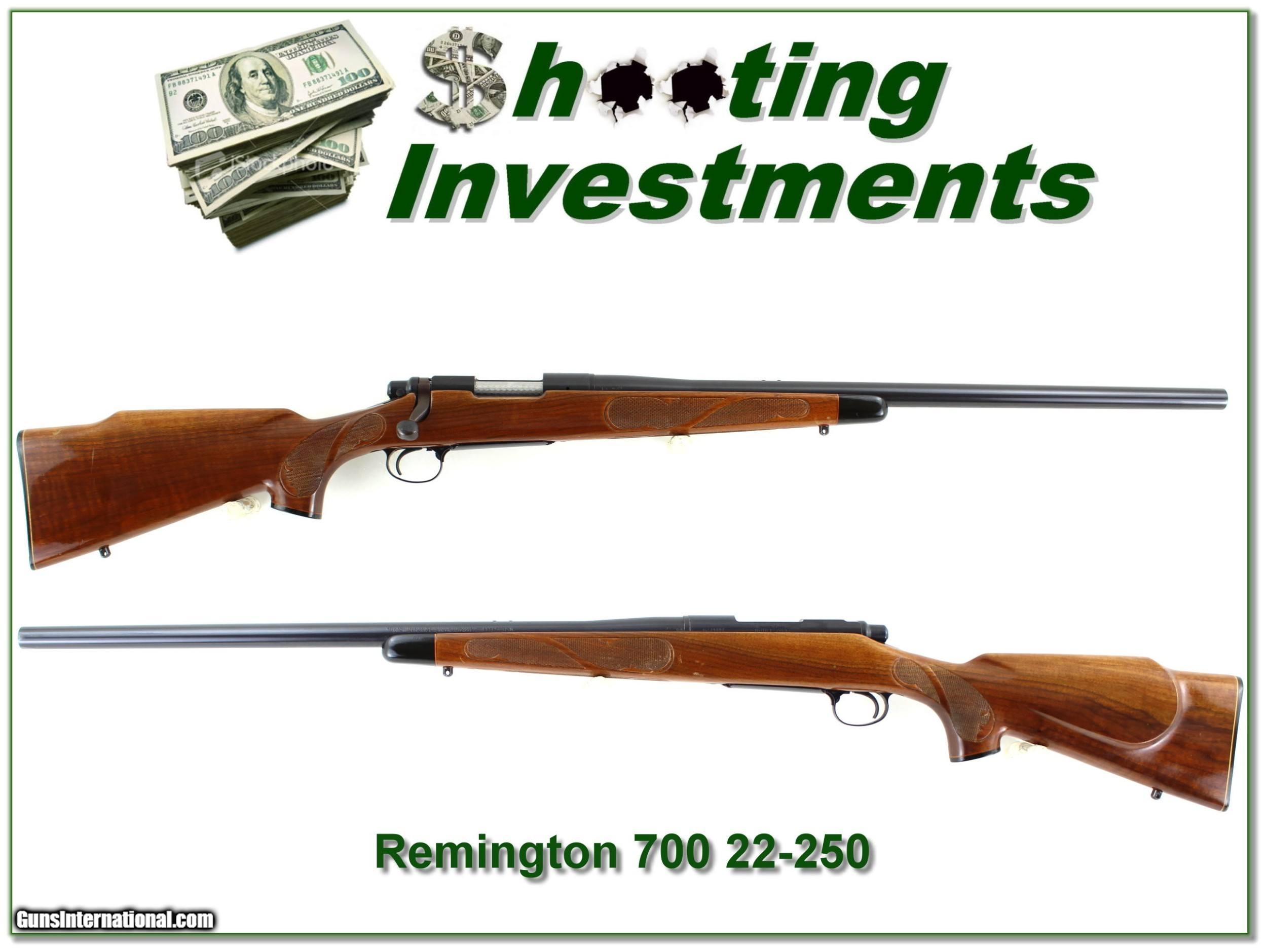 Description: This is an early Remington 700 Varmint Special with pressed checkering. It is a 22-250 Remington. The metal is about new condition with no marks or wear. From the bolt jeweling I am sure not many rounds fired. The wood has a few marks that could be touched up to make a top collector gun. I am selling this one on consignment and as such lay-a-way can’t be used. It does of course have the standard 3-day inspection. Shipping and insurance is $39. Please email me with any questions or larger pictures. (Consign your quality firearms with Shooting Investments for only 12%! Let me know if you have any you would like to sell!) 21-0359 Payment: Payment is by Money Order, Cashiers Check or Personal Check. I can now also accept Credit Cards (MasterCard, Visa, Discover & American Express) with a 3% convenience fee. Shipping: The shipping charge will be listed in each description. It is $39 for most firearms. Some heavy guns or those insured for over $2000 will be higher. Shipments to Alaska and Hawaii are higher because air shipment is required. Most firearms are shipped on Tuesday and Thursday and usually in 5 days of receipt of payment. We package all shipments carefully and insure them. Optics are shipped Priority Mail and most other non-firearm shipments are shipped First Class. Returns: Our return policy is simple. If for any reason you are not pleased with your purchase, you may return your item for a full refund of purchase price. Ammunition cannot be returned. It is important to us that you are happy. Guns cannot be fired or dissembled before returning them and they must be returned in the same condition as received. Notification of a return must occur with-in 3 days of receipt at your dealer. Shipping, convenience and dealer fees are not refundable and are the responsibility of the buyer. Lay-a-way: If needed, we offer a 60 day lay-a-way option on most firearms. It is 1/3 now, 1/3 in 30 days and 1/3 in 60 days. Lay-a-way firearm sales are final and if not completed the first payment cannot be returned. Consigning your firearms with Shooting Investments: We will help you get top dollar for your firearms. While most local guns shops charge 20% or more, our fee is only 12% with a minimum of $75. At your local gun shop it might take months to sell. Selling on-line provides instant access to thousands of interested buyers. You won’t find any other on-line dealer willing to sell your firearms for only 12% or listing every gun on 3 separate s. Selling through an House typically costs the seller 15% and the buyer an addition 15% (so 30%) and you have to wait several months to sell and longer to receive funds. If properly priced, we will sell your firearms in a few weeks. Send us an email or give us a call and we’ll explain how easy it is for you to get top dollar. Trading: Trading for use is really just buying your gun to re-sell. If you have a gun you want to trade, please email a picture and we will let you know what we can give or it. You will always get more if we sell it for you on consignment. Help for California Buyers: We are happy to ship to California. It is the buyer’s responsibility to make sure any item you buy is legal in your state. We are also happy to help with your purchase of a firearm from someone other than us. If you see a gun you would like to buy but the seller can’t or won’t ship to California they can ship to use and we’ll then ship it to your California dealer. The cost for this service is only $30 + shipping. Let us know if we can help! SOLD |
