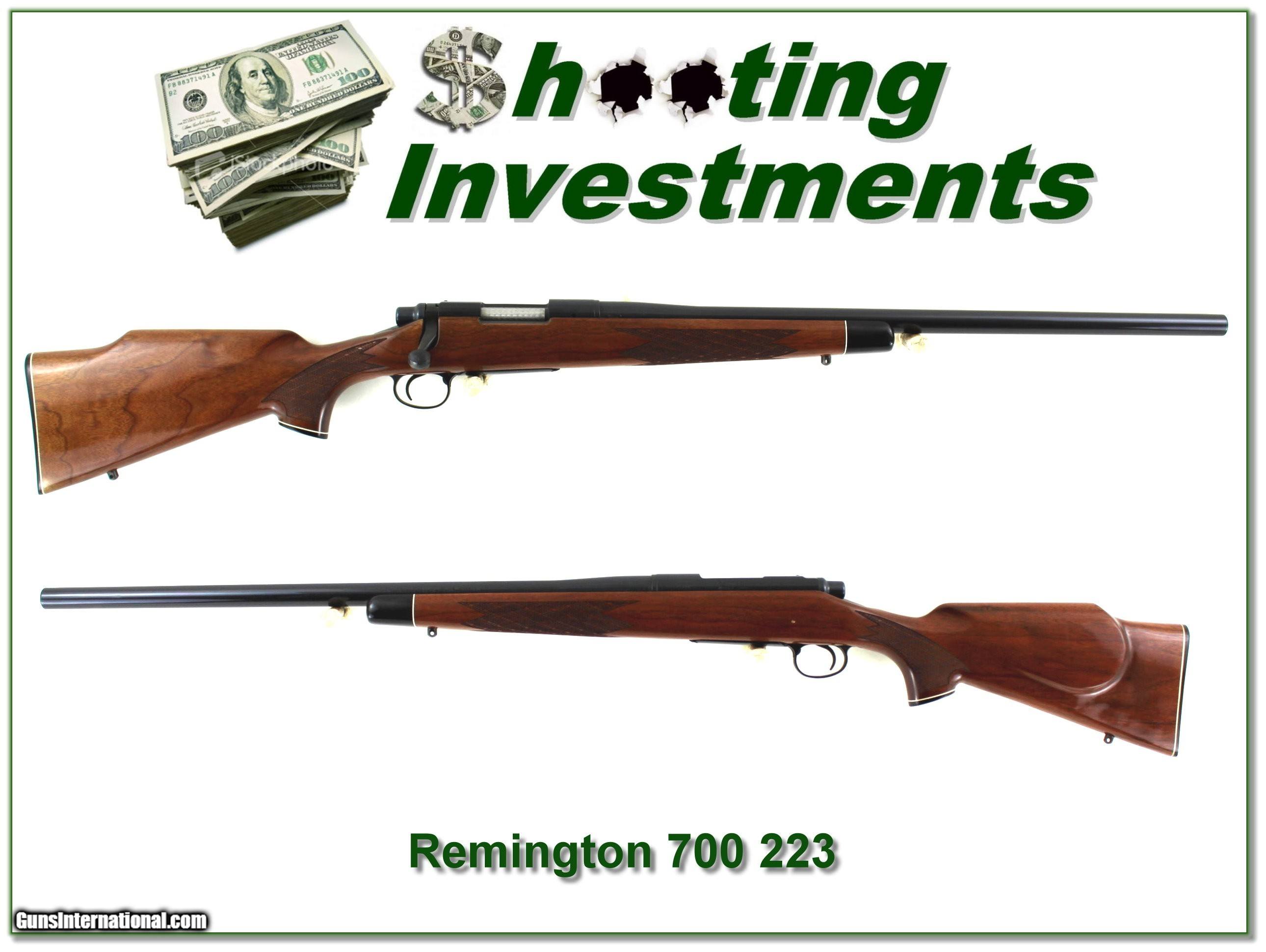 Description: Collectors, this is a 1984 made Remington 700 Varmint Special in 223 Remington. It has a 24in heavy barrel and is near new! From the bolt jeweling we know only a few rounds fired. I find no marks on the blue and only a couple insignificant handing marks on the wood. It is a real Shooting Investment. Shipping and insurance is $49. Please email me with any questions or larger pictures. (Consign your quality firearms with Shooting Investments for only 12%! Let me know if you have any you would like to sell!) 23-0776 Payment: Payment is by Money Order, Cashier’s Check or Personal Check. I can now also accept Credit Cards (MasterCard, Visa, Discover & American Express) with a 3% convenience fee. Shipping: The shipping charge will be listed in each description. It is $49 for most firearms. Some heavy guns or those insured for over $2000 will be higher. Shipments to Alaska and Hawaii are higher because air shipment is required. Most firearms are shipped on Tuesday and Thursday and usually in 5 days of receipt of payment. We package all shipments carefully and insure them. Optics are shipped Priority Mail and most other non-firearm shipments are shipped First Class. Returns: Our return policy is simple. If for any reason you are not pleased with your purchase, you may return your item for a full refund of purchase price. Ammunition cannot be returned. It is important to us that you are happy. Guns cannot be fired or dissembled before returning them and they must be returned in the same condition as received. Notification of a return must occur within 3 days of receipt at your dealer. Shipping, convenience and dealer fees are not refundable and are the responsibility of the buyer. Lay-a-way: If needed, we offer a 60 day lay-a-way option on most firearms. It is 1/3 now, 1/3 in 30 days and 1/3 in 60 days. Lay-a-way firearm sales are final and cannot be returned. If a lay-a-way is not completed the first payment cannot be refunded. Consigning your firearms with Shooting Investments: We will help you get top dollar for your firearms. While most local guns shops charge 20% or more, our fee is only 12% with a minimum of $75. At your local gun shop it might take months to sell. Selling on-line provides instant access to thousands of interested buyers. You won’t find any other on-line dealer willing to sell your firearms for only 12% or listing every gun on 3 separate s. Selling through an House typically costs the seller 15% and the buyer an addition 15% (so 30%) and you have to wait several months to sell and longer to receive funds. If properly priced, we will sell your firearms within a few weeks. Send us an email or give us a call and we’ll explain how easy it is for you to get top dollar. Trading: Trading for us is really just buying your gun to re-sell. If you have a gun you want to trade, please email a picture and we will let you know what we can give for it. You will always get more if we sell it for you on consignment. SOLD |