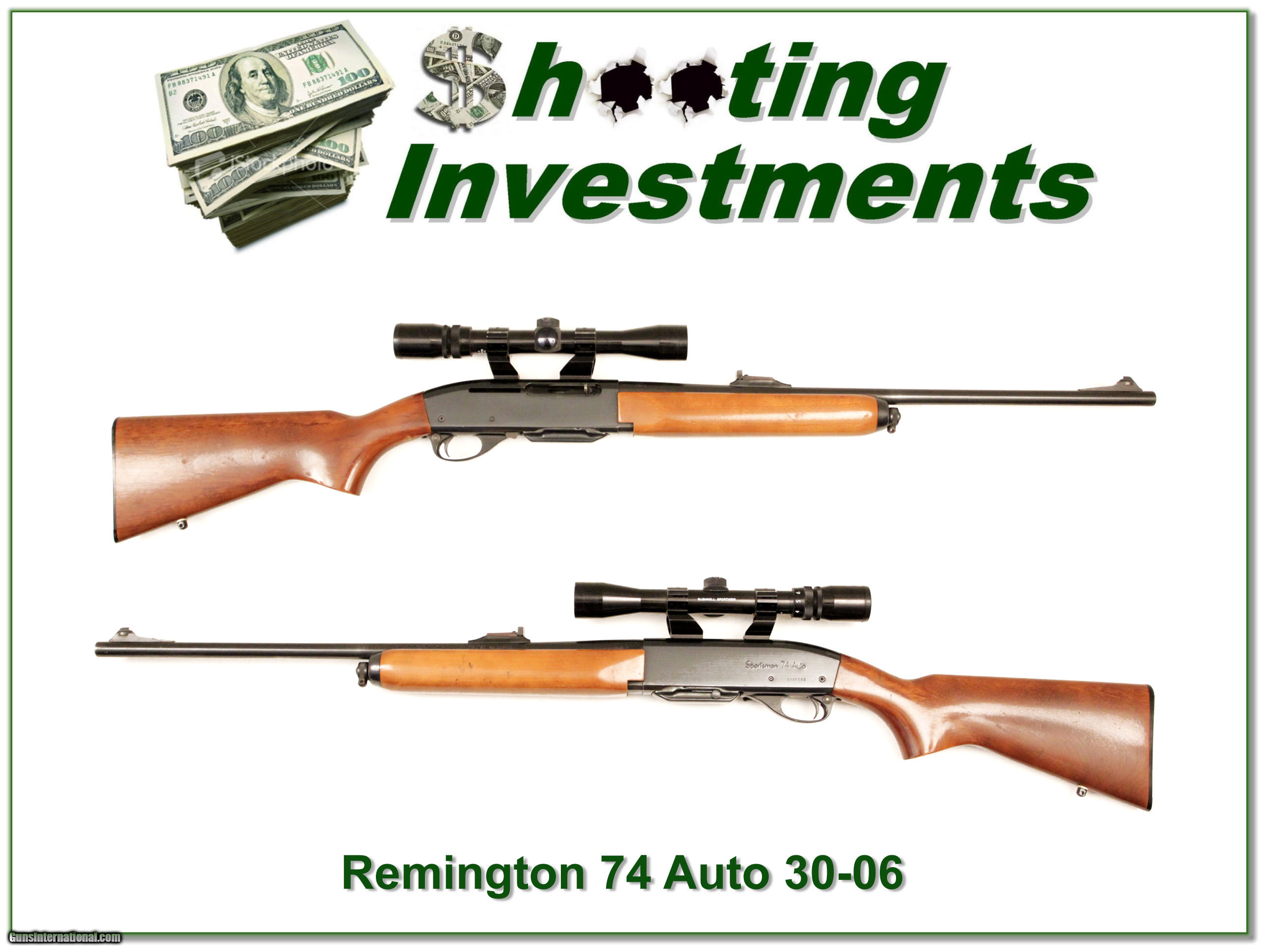 Description: This is a nice example of the vintage Remington 74 Sportsman. This is a semi-auto in 30-06. It has some hunting use as seen but it ready to go. It comes with scope as shown. It will make a classic hunting gun and MUCH less than buying a new semi-auto of equivalent quality. I am selling this one on consignment and as such lay-a-way can’t be used. It does of course have the standard 3 day inspection. Shipping and insurance is $35 or $15 more if you want it shipped in a new Plano hard case. Please email me with any questions or larger pictures. (I now consign quality firearms only 10%! Let me know if you have any you would like to sell!) [16-0438] Payment: Payment is by Money Order, Cashiers Check or Personal Check. I can now also accept MasterCard and Visa with a 3% convenience fee. PayPal can be used for some items but never firearms. Please let us know if you would like to pay via PayPal. Shipping: The shipping charge will be listed in each description. It is $35 for most guns. Some heavy guns or those insured for over $2000 will be higher. Shipments to Alaska and Hawaii are higher because air shipment is required. Most firearms are shipped within 5 days of receipt of payment. We prefer shipping at the beginning of the week to avoid firearms in transit over weekends. We package all shipments carefully and insure them for the full purchase price, rounded up to the next $100. In the unlikely event that damage occurs, it is important that you save all packaging material for the claims process. Optics are shipped Priority Mail and most other non-firearm shipments are shipped First Class. Returns: Our return policy is simple. If for any reason you are not pleased with your purchase, you may return your item for a refund. The only exception is ammunition, it cannot be returned. It is important to us that you are happy. Guns cannot be fired or dissembled before returning them and must be returned in the same condition as received. Notification of a return must occur with-in 3 days of receipt at your dealer. Shipping, convenience and dealer fees are not refundable and are the responsibility of the buyer. Lay-a-way: If needed, we offer a 60 day lay-a-way option on most firearms. It is 1/3 now, 1/3 in 30 days and 1/3 in 60 days. Lay-a-way firearm sales are final. Consigning your firearms with Shooting Investments: We will help you get top dollar for your firearms. While most local guns shops charge 20% or more, our fee is only 10% with a minimum of $50. At your local gun shop it might take months to sell. Selling on-line provides instant access to thousands of interested buyers. You won’t find any other on-line dealer willing to sell your firearms for only 10% or listing every gun on 4 separate s. Selling through an House typically costs the seller 15% and the buyer an addition 15% (so 30%) and you have to wait several months to sell and longer to receive funds. If properly priced, we will sell your firearms in a week or two. Send us an email or give us a call and we’ll explain how easy it is for you to get top dollar. Trading: We collect guns and usually just trade for guns we want to add to our collections. We often sell guns for others wanting to purchase one of ours. We find this the most fair to both of us. Our Commission is only 10% and we hold the gun you want until yours sells. Please contact us if you want to sell one of yours to buy one of ours. Help for California Buyers: We are happy to ship to California. It is the buyer’s responsibility to make sure any item you buy is legal in your state. We are also happy to help with your purchase of a firearm from someone other than us. If you see a gun you would like to buy but the seller can’t or won’t ship to California we can help. You buy the gun and have it shipped to us. We’ll then ship it to your California dealer. The cost for this service is only $30 + shipping. Let me know if we can help! SOLD |