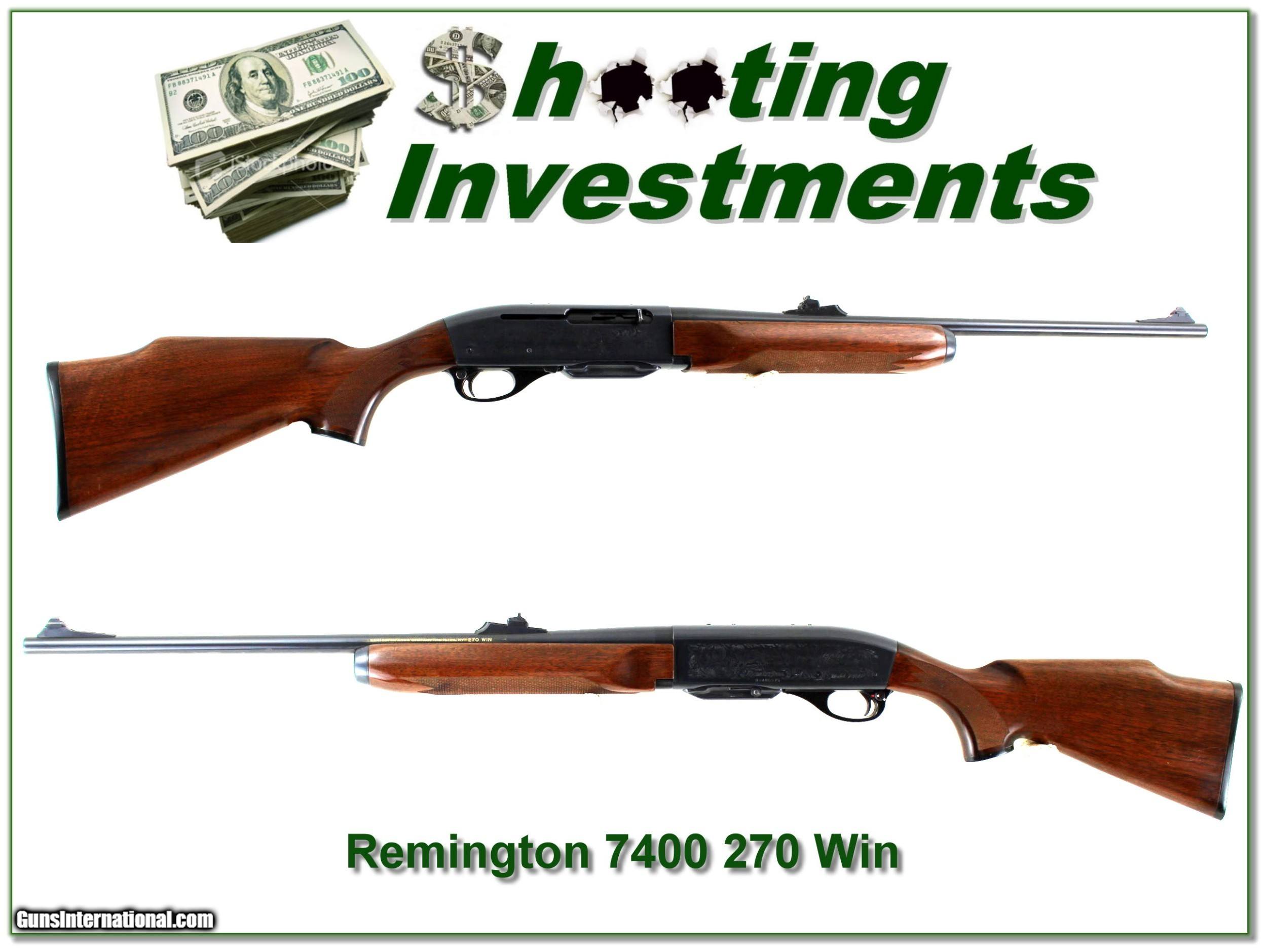 Description: Hunters, this is a classic deer gun. It is a Remington 7400 in the much harder to find factory engraved model in 270 Winchester. The metal is excellent the wood has a few marks from some field use. It will make a classic hunting gun and there will never be more made like it! That makes it a real Shooting Investment! Shipping and insurance is $49. Please email me with any questions or larger pictures. (Consign your quality firearms with Shooting Investments for only 12%! Let me know if you have any you would like to sell!) 22-0558 Payment: Payment is by Money Order, Cashiers Check or Personal Check. I can now also accept Credit Cards (MasterCard, Visa, Discover & American Express) with a 3% convenience fee. Shipping: The shipping charge will be listed in each description. It is $49 for most long guns. Some heavy guns, over 48in boxes or those insured for over $2000 will be higher. Shipments to Alaska and Hawaii are higher because air shipment is required. Most firearms are shipped on Tuesday and Thursday and usually in 5 days of receipt of payment. We package all shipments carefully and insure them. Optics are shipped Priority Mail and most other non-firearm shipments are shipped First Class. Returns: Our return policy is simple. If for any reason you are not pleased with your purchase, you may return your item for a full refund of purchase price. Ammunition cannot be returned. It is important to us that you are happy. Guns cannot be fired or dissembled before returning them and they must be returned in the same condition as received. Notification of a return must occur with-in 3 days of receipt at your dealer. Shipping, convenience and dealer fees are not refundable and are the responsibility of the buyer. Lay-a-way: If needed, we offer a 60 day lay-a-way option on most firearms. It is 1/3 now, 1/3 in 30 days and 1/3 in 60 days. Lay-a-way firearm sales are final and if not completed the first payment cannot be returned. Consigning your firearms with Shooting Investments: We will help you get top dollar for your firearms. While most local guns shops charge 20% or more, our fee is only 12% with a minimum of $75. At your local gun shop it might take months to sell. Selling on-line provides instant access to thousands of interested buyers. You won’t find any other on-line dealer willing to sell your firearms for only 12% or listing every gun on 3 separate s. Selling through an House typically costs the seller 15% and the buyer an addition 15% (so 30%) and you have to wait several months to sell and longer to receive funds. If properly priced, we will sell your firearms in a few weeks. Send us an email or give us a call and we’ll explain how easy it is for you to get top dollar. Trading: Trading for use is really just buying your gun to re-sell. If you have a gun you want to trade, please email a picture and we will let you know what we can give or it. You will always get more if we sell it for you on consignment. Help for California Buyers: We are happy to ship to California. It is the buyer’s responsibility to make sure any item you buy is legal in your state. We are also happy to help with your purchase of a firearm from someone other than us. If you see a gun you would like to buy but the seller can’t or won’t ship to California they can ship to use and we’ll then ship it to your California dealer. The cost for this service is only $30 + shipping. Let us know if we can help! SOLD |