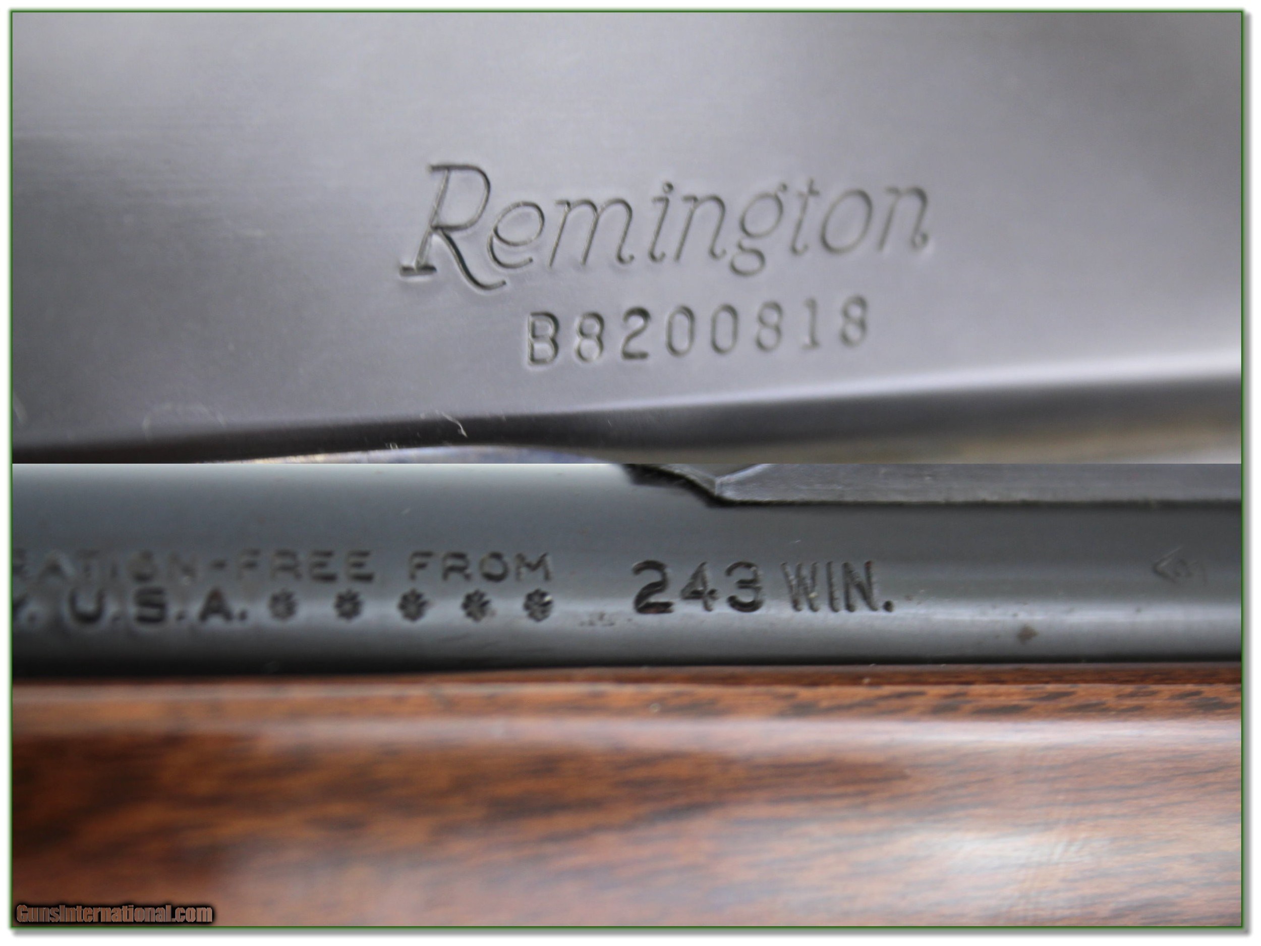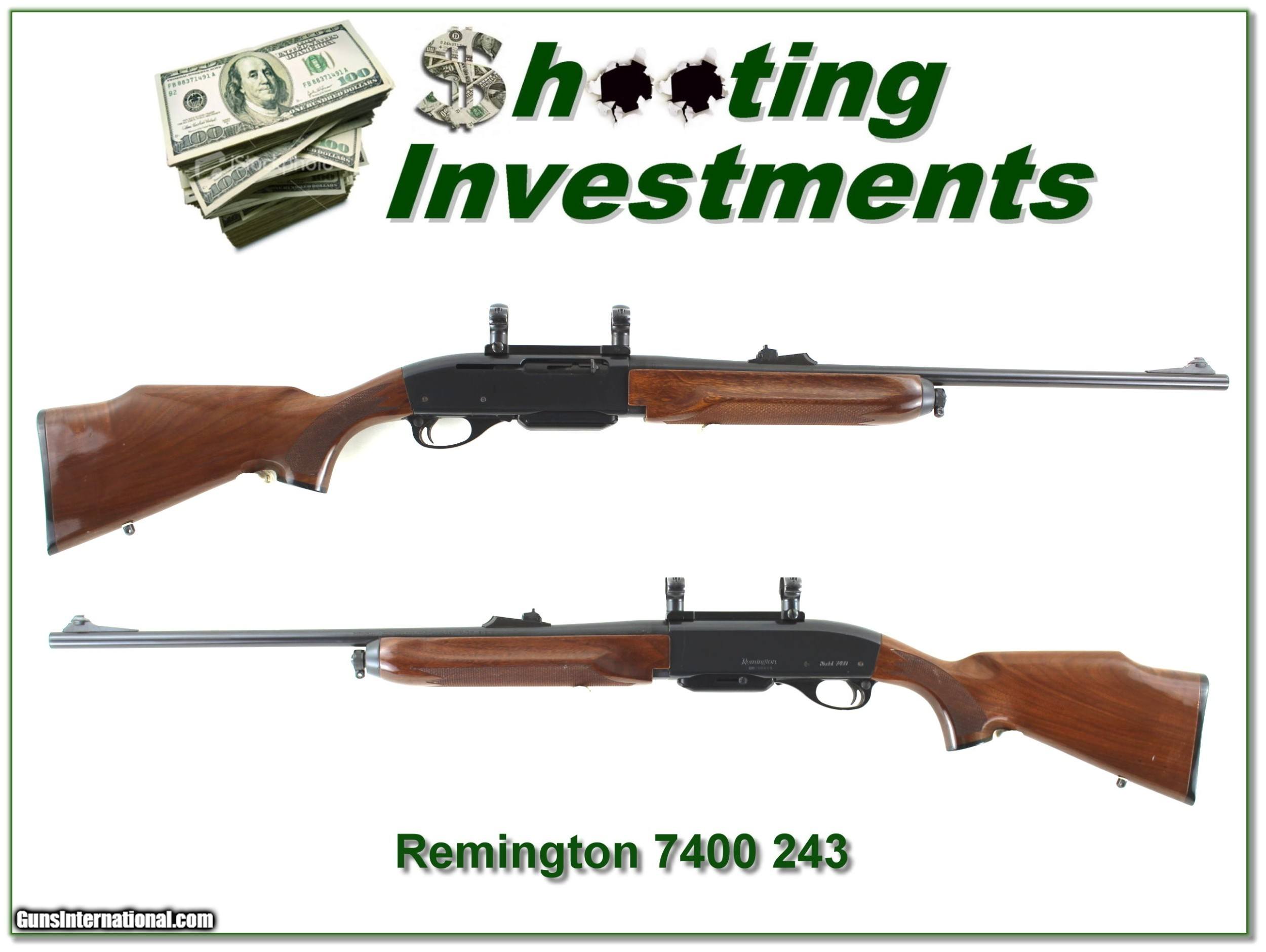 Description: This is a hard to find and never to be made again Remington 7400 in 243 Winchester. It will have almost no recoil. It is in excellent condition with just a couple marks. From the bolt and chamber, I am sure only a few rounds ever fired. It comes as seen with sights and bases and rings. It will make a classic Remington for your collector or to use! Either way it’s a real Shooting Investment. Shipping and insurance is $39. Please email me with any questions or larger pictures. (Consign your quality firearms with Shooting Investments for only 12%! Let me know if you have any you would like to sell!) 21-0798 Payment: Payment is by Money Order, Cashiers Check or Personal Check. I can now also accept Credit Cards (MasterCard, Visa, Discover & American Express) with a 3% convenience fee. Shipping: The shipping charge will be listed in each description. It is $39 for most firearms. Some heavy guns or those insured for over $2000 will be higher. Shipments to Alaska and Hawaii are higher because air shipment is required. Most firearms are shipped on Tuesday and Thursday and usually in 5 days of receipt of payment. We package all shipments carefully and insure them. Optics are shipped Priority Mail and most other non-firearm shipments are shipped First Class. Returns: Our return policy is simple. If for any reason you are not pleased with your purchase, you may return your item for a full refund of purchase price. Ammunition cannot be returned. It is important to us that you are happy. Guns cannot be fired or dissembled before returning them and they must be returned in the same condition as received. Notification of a return must occur with-in 3 days of receipt at your dealer. Shipping, convenience and dealer fees are not refundable and are the responsibility of the buyer. Lay-a-way: If needed, we offer a 60 day lay-a-way option on most firearms. It is 1/3 now, 1/3 in 30 days and 1/3 in 60 days. Lay-a-way firearm sales are final and if not completed the first payment cannot be returned. Consigning your firearms with Shooting Investments: We will help you get top dollar for your firearms. While most local guns shops charge 20% or more, our fee is only 12% with a minimum of $75. At your local gun shop it might take months to sell. Selling on-line provides instant access to thousands of interested buyers. You won’t find any other on-line dealer willing to sell your firearms for only 12% or listing every gun on 3 separate s. Selling through an House typically costs the seller 15% and the buyer an addition 15% (so 30%) and you have to wait several months to sell and longer to receive funds. If properly priced, we will sell your firearms in a few weeks. Send us an email or give us a call and we’ll explain how easy it is for you to get top dollar. Trading: Trading for use is really just buying your gun to re-sell. If you have a gun you want to trade, please email a picture and we will let you know what we can give or it. You will always get more if we sell it for you on consignment. Help for California Buyers: We are happy to ship to California. It is the buyer’s responsibility to make sure any item you buy is legal in your state. We are also happy to help with your purchase of a firearm from someone other than us. If you see a gun you would like to buy but the seller can’t or won’t ship to California they can ship to use and we’ll then ship it to your California dealer. The cost for this service is only $30 + shipping. Let us know if we can help! SOLD |