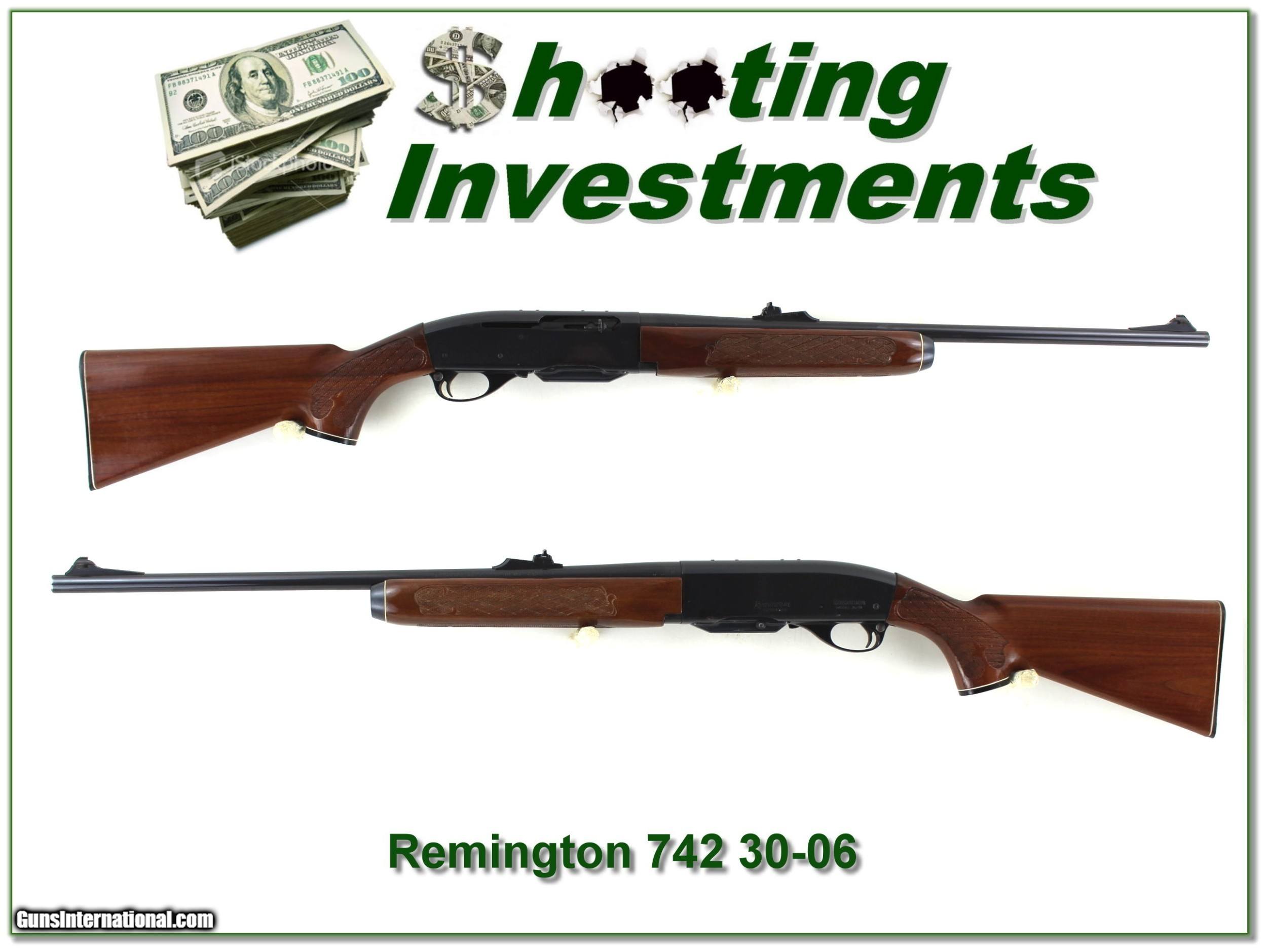 Description: This is a 1977 made Remington 742 in 30-06. Aside from a few spots on the right side of the receiver and barrel near the muzzle it is in excellent condition. No marks of note on the wood and I’m sure not many rounds through it. It will make a classic hunting gun and they won’t be making any more of these! I am selling this one on consignment and as such lay-a-way can’t be used. It does of course have the standard 3-day inspection. Shipping and insurance is $49. Please email me with any questions or larger pictures. (Consign your quality firearms with Shooting Investments for only 12%! Let me know if you have any you would like to sell!) 22-0039 Payment: Payment is by Money Order, Cashiers Check or Personal Check. I can now also accept Credit Cards (MasterCard, Visa, Discover & American Express) with a 3% convenience fee. Shipping: The shipping charge will be listed in each description. It is $49 for most long guns. Some heavy guns, over 48in boxes or those insured for over $2000 will be higher. Shipments to Alaska and Hawaii are higher because air shipment is required. Most firearms are shipped on Tuesday and Thursday and usually in 5 days of receipt of payment. We package all shipments carefully and insure them. Optics are shipped Priority Mail and most other non-firearm shipments are shipped First Class. Returns: Our return policy is simple. If for any reason you are not pleased with your purchase, you may return your item for a full refund of purchase price. Ammunition cannot be returned. It is important to us that you are happy. Guns cannot be fired or dissembled before returning them and they must be returned in the same condition as received. Notification of a return must occur with-in 3 days of receipt at your dealer. Shipping, convenience and dealer fees are not refundable and are the responsibility of the buyer. Lay-a-way: If needed, we offer a 60 day lay-a-way option on most firearms. It is 1/3 now, 1/3 in 30 days and 1/3 in 60 days. Lay-a-way firearm sales are final and if not completed the first payment cannot be returned. Consigning your firearms with Shooting Investments: We will help you get top dollar for your firearms. While most local guns shops charge 20% or more, our fee is only 12% with a minimum of $75. At your local gun shop it might take months to sell. Selling on-line provides instant access to thousands of interested buyers. You won’t find any other on-line dealer willing to sell your firearms for only 12% or listing every gun on 3 separate s. Selling through an House typically costs the seller 15% and the buyer an addition 15% (so 30%) and you have to wait several months to sell and longer to receive funds. If properly priced, we will sell your firearms in a few weeks. Send us an email or give us a call and we’ll explain how easy it is for you to get top dollar. Trading: Trading for use is really just buying your gun to re-sell. If you have a gun you want to trade, please email a picture and we will let you know what we can give or it. You will always get more if we sell it for you on consignment. Help for California Buyers: We are happy to ship to California. It is the buyer’s responsibility to make sure any item you buy is legal in your state. We are also happy to help with your purchase of a firearm from someone other than us. If you see a gun you would like to buy but the seller can’t or won’t ship to California they can ship to use and we’ll then ship it to your California dealer. The cost for this service is only $30 + shipping. Let us know if we can help! SOLD |