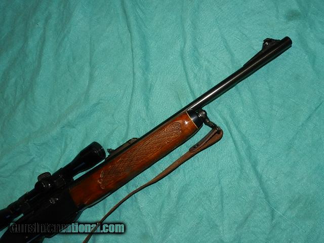 Description: An excellent working Remington model 742 CARBINE as listed on the barrel, chambered for the .308 caliber. with an 18 1/2" barrel, and a clean , shiny rifled bore. The barrel has the original sights, and comes t with the gun and has a top rail mounted Weaver scope mount and a Glenfield 4X32 scope with crystal clear optics, and a good cross-hairs. The exterior metal has about 96% blue, with a covering of thin long storage grease of which I've removed most of it. The quality America walnut wood with press checkered Remington gasket weave design checkering is very good, and the action is stiff from non-use. Looks like this gun was not used muches with one mag. This quality rig is ready to go. We don’t have asite .I prefer money orders or a check. Item ships when funds come in. If you can only pay with a card let me know. I’m sorry I don’t list my phone number, did that for 30 days, never again.. I can’t talk on the phone all day…who will ship the guns? I’m just one person, and it’s very busy here! I do a brisk volume! I hope you like my wide selection of unusual guns, knives and gun parts. Shipping price determined by zip code. I try to keep the prices affordable, which means I make less money than most dealers. You won’t get altitude sickness with my prices! I consistently have the best selection of older guns If you BUY IT NOW you must still contact us for details buy it now doesn't end the sale, it just sends an email telling us you want to buy this gun. A phone call won’t secure a sale! Not home many times, the first buyer by email buys the gun !Thissite does not close down a sale when you do a BUY IT NOW like Ebay! I can get six buy it nows in an hour, first buyer to email gets the guns, others are in second place! Best to send another email . Sometimes not home to get calls. Some guns are required shipment to a gun dealer near you for a transfer to you when it arrives. With the widest selection of older guns at great prices, We don’t have a store, and sell on the internet only. Thank You for viewing my inventory. SOLD |