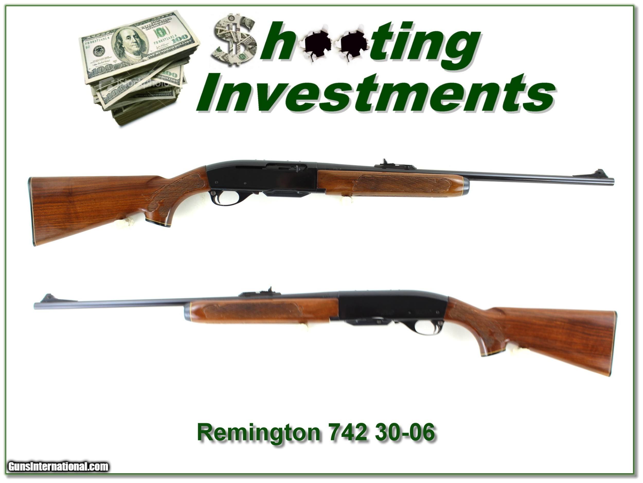Description: This is an excellent condition Remington 742 Woodsmaster in 30-06. It was made in 1969 and I am sure not many rounds fired. I find no marks of note on metal or wood. It will make a classic hunting Remington and they don’t make these anymore! Shipping with insurance is $39. Please email me with any questions or larger pictures. (Consign your quality firearms with Shooting Investments for only 12%! Let me know if you have any you would like to sell!) 21-0188 Payment: Payment is by Money Order, Cashiers Check or Personal Check. I can now also accept Credit Cards (MasterCard, Visa, Discover & American Express) with a 3% convenience fee. Shipping: The shipping charge will be listed in each description. It is $39 for most firearms. Some heavy guns or those insured for over $2000 will be higher. Shipments to Alaska and Hawaii are higher because air shipment is required. Most firearms are shipped on Tuesday and Thursday and usually in 5 days of receipt of payment. We package all shipments carefully and insure them. Optics are shipped Priority Mail and most other non-firearm shipments are shipped First Class. Returns: Our return policy is simple. If for any reason you are not pleased with your purchase, you may return your item for a full refund of purchase price. Ammunition cannot be returned. It is important to us that you are happy. Guns cannot be fired or dissembled before returning them and they must be returned in the same condition as received. Notification of a return must occur with-in 3 days of receipt at your dealer. Shipping, convenience and dealer fees are not refundable and are the responsibility of the buyer. Lay-a-way: If needed, we offer a 60 day lay-a-way option on most firearms. It is 1/3 now, 1/3 in 30 days and 1/3 in 60 days. Lay-a-way firearm sales are final and if not completed the first payment cannot be returned. Consigning your firearms with Shooting Investments: We will help you get top dollar for your firearms. While most local guns shops charge 20% or more, our fee is only 12% with a minimum of $75. At your local gun shop it might take months to sell. Selling on-line provides instant access to thousands of interested buyers. You won’t find any other on-line dealer willing to sell your firearms for only 12% or listing every gun on 3 separate s. Selling through an House typically costs the seller 15% and the buyer an addition 15% (so 30%) and you have to wait several months to sell and longer to receive funds. If properly priced, we will sell your firearms in a few weeks. Send us an email or give us a call and we’ll explain how easy it is for you to get top dollar. Trading: Trading for use is really just buying your gun to re-sell. If you have a gun you want to trade, please email a picture and we will let you know what we can give or it. You will always get more if we sell it for you on consignment. Help for California Buyers: We are happy to ship to California. It is the buyer’s responsibility to make sure any item you buy is legal in your state. We are also happy to help with your purchase of a firearm from someone other than us. If you see a gun you would like to buy but the seller can’t or won’t ship to California they can ship to use and we’ll then ship it to your California dealer. The cost for this service is only $30 + shipping. Let us know if we can help! SOLD |