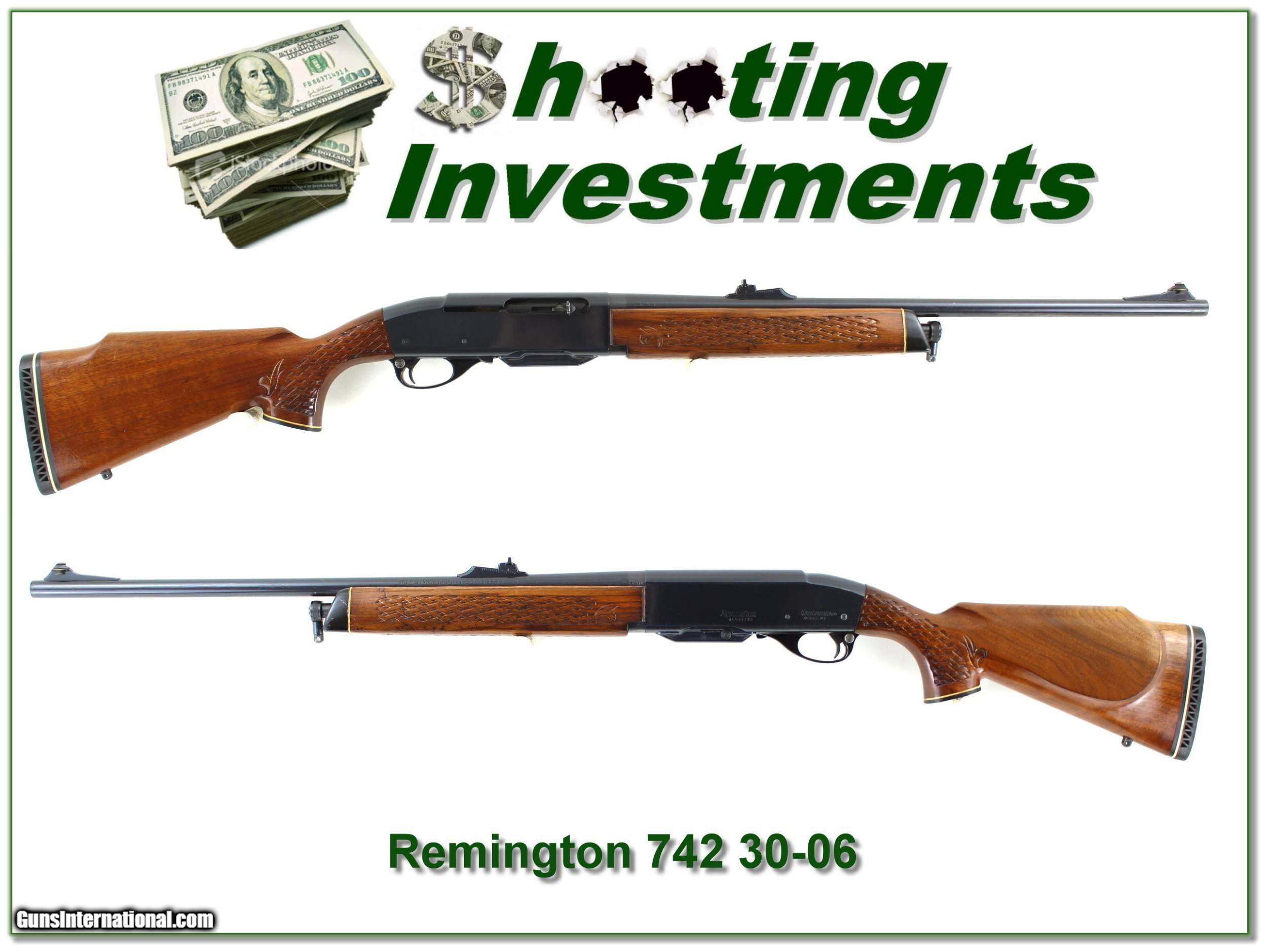 Description: This is a 1974 made Remington 742 Woodsmaster in 30-06. The blue is excellent with only light thinning on the receiver carry points. From the bolt and chamber, I don’t think may rounds fired. The wood is the deluxe with basket week checkering and a few marks from use mostly on the edges of the forearm. Shipping and insurance is $39. Please email me with any questions or larger pictures. (Consign your quality firearms with Shooting Investments for only 12%! Let me know if you have any you would like to sell!) 20-0255 Payment: Payment is by Money Order, Cashiers Check or Personal Check. I can now also accept Credit Cards (MasterCard, Visa, Discover & American Express) with a 3% convenience fee. Shipping: The shipping charge will be listed in each description. It is $39 for most firearms. Some heavy guns or those insured for over $2000 will be higher. Shipments to Alaska and Hawaii are higher because air shipment is required. Most firearms are shipped on Tuesday and Thursday and usually in 5 days of receipt of payment. We package all shipments carefully and insure them. Optics are shipped Priority Mail and most other non-firearm shipments are shipped First Class. Returns: Our return policy is simple. If for any reason you are not pleased with your purchase, you may return your item for a full refund of purchase price. Ammunition cannot be returned. It is important to us that you are happy. Guns cannot be fired or dissembled before returning them and they must be returned in the same condition as received. Notification of a return must occur with-in 3 days of receipt at your dealer. Shipping, convenience and dealer fees are not refundable and are the responsibility of the buyer. Lay-a-way: If needed, we offer a 60 day lay-a-way option on most firearms. It is 1/3 now, 1/3 in 30 days and 1/3 in 60 days. Lay-a-way firearm sales are final and if not completed the first payment cannot be returned. Consigning your firearms with Shooting Investments: We will help you get top dollar for your firearms. While most local guns shops charge 20% or more, our fee is only 12% with a minimum of $75. At your local gun shop it might take months to sell. Selling on-line provides instant access to thousands of interested buyers. You won’t find any other on-line dealer willing to sell your firearms for only 12% or listing every gun on 3 separate s. Selling through an House typically costs the seller 15% and the buyer an addition 15% (so 30%) and you have to wait several months to sell and longer to receive funds. If properly priced, we will sell your firearms in a few weeks. Send us an email or give us a call and we’ll explain how easy it is for you to get top dollar. Trading: Trading for use is really just buying your gun to re-sell. If you have a gun you want to trade, please email a picture and we will let you know what we can give or it. You will always get more if we sell it for you on consignment. Help for California Buyers: We are happy to ship to California. It is the buyer’s responsibility to make sure any item you buy is legal in your state. We are also happy to help with your purchase of a firearm from someone other than us. If you see a gun you would like to buy but the seller can’t or won’t ship to California they can ship to use and we’ll then ship it to your California dealer. The cost for this service is only $30 + shipping. Let us know if we can help! SOLD |