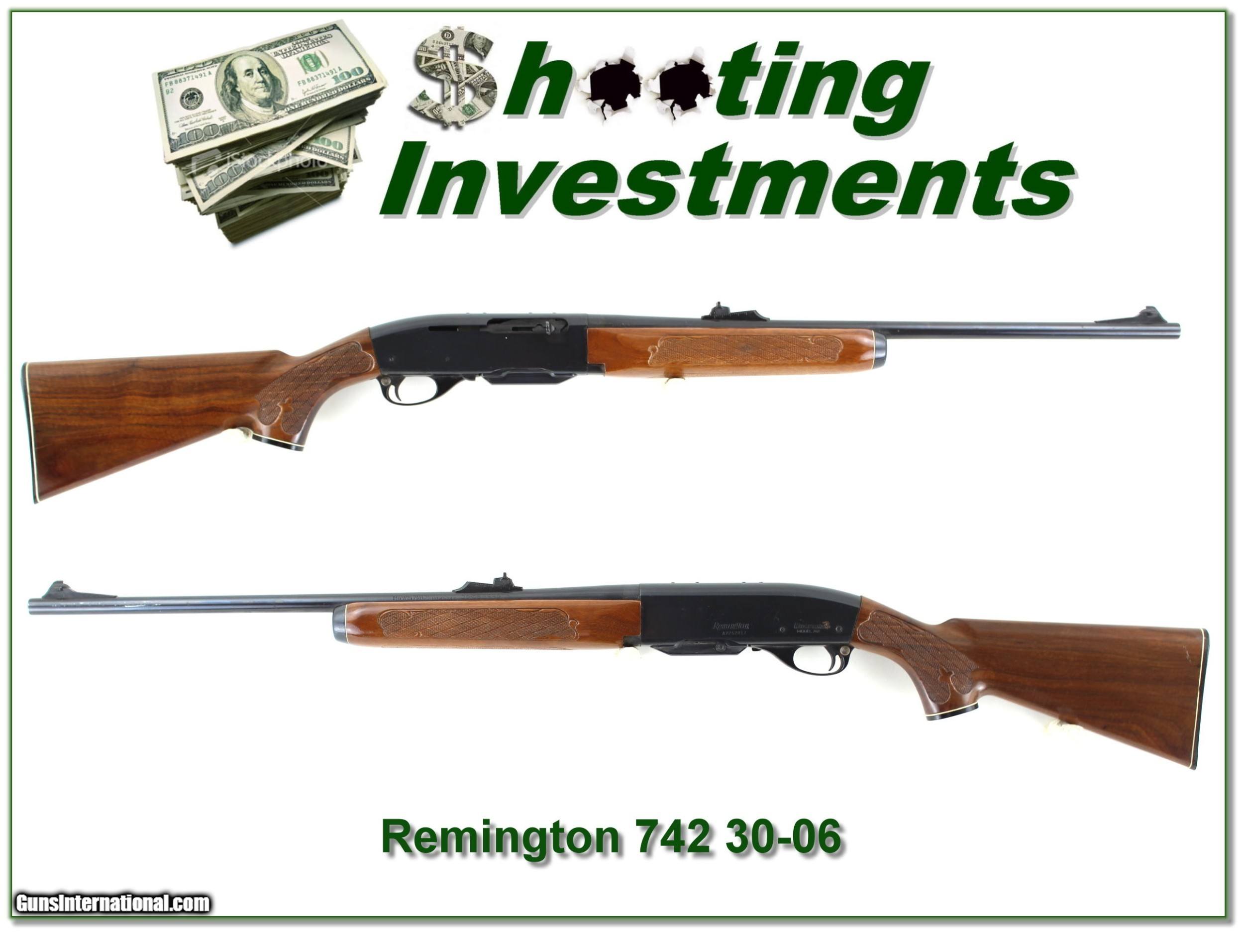 Description: This is a 1976 made Remington 742 in 30-06. From the action I am sure only a few rounds fired. It has excellent wood with no marks of note. Aside from a couple spots on the left side of the receiver this one is in in excellent collector condition. I don’t think a scope was ever mounted. I am selling this one on consignment and as such lay-a-way can’t be used. It does of course have the standard 3-day inspection. Shipping and insurance is $39. Please email me with any questions or larger pictures. (Consign your quality firearms with Shooting Investments for only 12%! Let me know if you have any you would like to sell!) 21-0332 Payment: Payment is by Money Order, Cashiers Check or Personal Check. I can now also accept Credit Cards (MasterCard, Visa, Discover & American Express) with a 3% convenience fee. Shipping: The shipping charge will be listed in each description. It is $39 for most firearms. Some heavy guns or those insured for over $2000 will be higher. Shipments to Alaska and Hawaii are higher because air shipment is required. Most firearms are shipped on Tuesday and Thursday and usually in 5 days of receipt of payment. We package all shipments carefully and insure them. Optics are shipped Priority Mail and most other non-firearm shipments are shipped First Class. Returns: Our return policy is simple. If for any reason you are not pleased with your purchase, you may return your item for a full refund of purchase price. Ammunition cannot be returned. It is important to us that you are happy. Guns cannot be fired or dissembled before returning them and they must be returned in the same condition as received. Notification of a return must occur with-in 3 days of receipt at your dealer. Shipping, convenience and dealer fees are not refundable and are the responsibility of the buyer. Lay-a-way: If needed, we offer a 60 day lay-a-way option on most firearms. It is 1/3 now, 1/3 in 30 days and 1/3 in 60 days. Lay-a-way firearm sales are final and if not completed the first payment cannot be returned. Consigning your firearms with Shooting Investments: We will help you get top dollar for your firearms. While most local guns shops charge 20% or more, our fee is only 12% with a minimum of $75. At your local gun shop it might take months to sell. Selling on-line provides instant access to thousands of interested buyers. You won’t find any other on-line dealer willing to sell your firearms for only 12% or listing every gun on 3 separate s. Selling through an House typically costs the seller 15% and the buyer an addition 15% (so 30%) and you have to wait several months to sell and longer to receive funds. If properly priced, we will sell your firearms in a few weeks. Send us an email or give us a call and we’ll explain how easy it is for you to get top dollar. Trading: Trading for use is really just buying your gun to re-sell. If you have a gun you want to trade, please email a picture and we will let you know what we can give or it. You will always get more if we sell it for you on consignment. Help for California Buyers: We are happy to ship to California. It is the buyer’s responsibility to make sure any item you buy is legal in your state. We are also happy to help with your purchase of a firearm from someone other than us. If you see a gun you would like to buy but the seller can’t or won’t ship to California they can ship to use and we’ll then ship it to your California dealer. The cost for this service is only $30 + shipping. Let us know if we can help! SOLD |