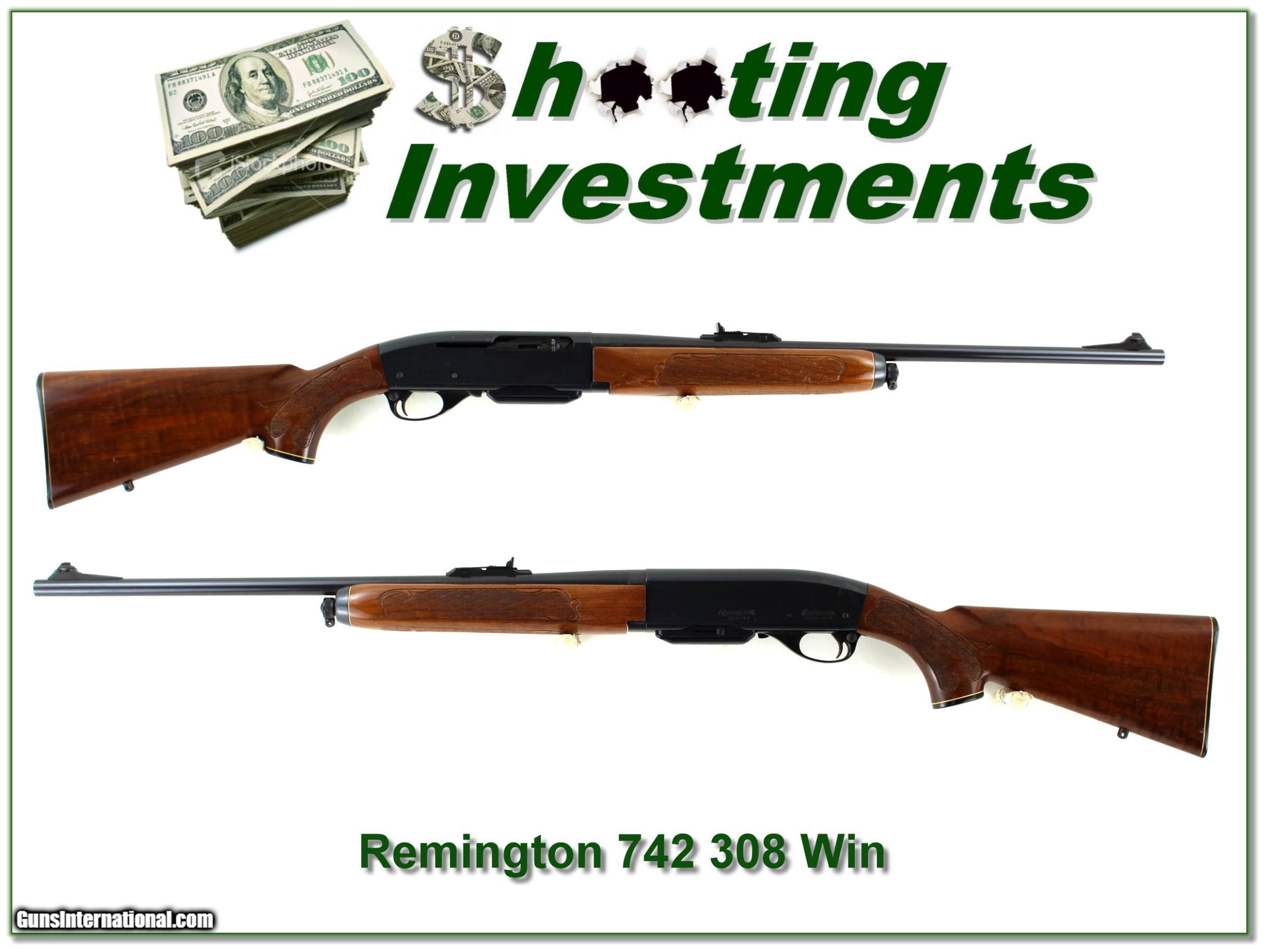 Description: This is a 1968 made Remington 742 in the harder to find 308 Winchester. It is in very good condition with just a minor marks on the wood and some on the rear sides of the receiver. It will make a classic deer, hog or bear gun and there will be no more of these! That makes it a real Shooting Investment. Shipping and insurance is $49. Please email me with any questions or larger pictures. (Consign your quality firearms with Shooting Investments for only 12%! Let me know if you have any you would like to sell!) 22-0340 Payment: Payment is by Money Order, Cashiers Check or Personal Check. I can now also accept Credit Cards (MasterCard, Visa, Discover & American Express) with a 3% convenience fee. Shipping: The shipping charge will be listed in each description. It is $49 for most long guns. Some heavy guns, over 48in boxes or those insured for over $2000 will be higher. Shipments to Alaska and Hawaii are higher because air shipment is required. Most firearms are shipped on Tuesday and Thursday and usually in 5 days of receipt of payment. We package all shipments carefully and insure them. Optics are shipped Priority Mail and most other non-firearm shipments are shipped First Class. Returns: Our return policy is simple. If for any reason you are not pleased with your purchase, you may return your item for a full refund of purchase price. Ammunition cannot be returned. It is important to us that you are happy. Guns cannot be fired or dissembled before returning them and they must be returned in the same condition as received. Notification of a return must occur with-in 3 days of receipt at your dealer. Shipping, convenience and dealer fees are not refundable and are the responsibility of the buyer. Lay-a-way: If needed, we offer a 60 day lay-a-way option on most firearms. It is 1/3 now, 1/3 in 30 days and 1/3 in 60 days. Lay-a-way firearm sales are final and if not completed the first payment cannot be returned. Consigning your firearms with Shooting Investments: We will help you get top dollar for your firearms. While most local guns shops charge 20% or more, our fee is only 12% with a minimum of $75. At your local gun shop it might take months to sell. Selling on-line provides instant access to thousands of interested buyers. You won’t find any other on-line dealer willing to sell your firearms for only 12% or listing every gun on 3 separate s. Selling through an House typically costs the seller 15% and the buyer an addition 15% (so 30%) and you have to wait several months to sell and longer to receive funds. If properly priced, we will sell your firearms in a few weeks. Send us an email or give us a call and we’ll explain how easy it is for you to get top dollar. Trading: Trading for use is really just buying your gun to re-sell. If you have a gun you want to trade, please email a picture and we will let you know what we can give or it. You will always get more if we sell it for you on consignment. Help for California Buyers: We are happy to ship to California. It is the buyer’s responsibility to make sure any item you buy is legal in your state. We are also happy to help with your purchase of a firearm from someone other than us. If you see a gun you would like to buy but the seller can’t or won’t ship to California they can ship to use and we’ll then ship it to your California dealer. The cost for this service is only $30 + shipping. Let us know if we can help! SOLD |