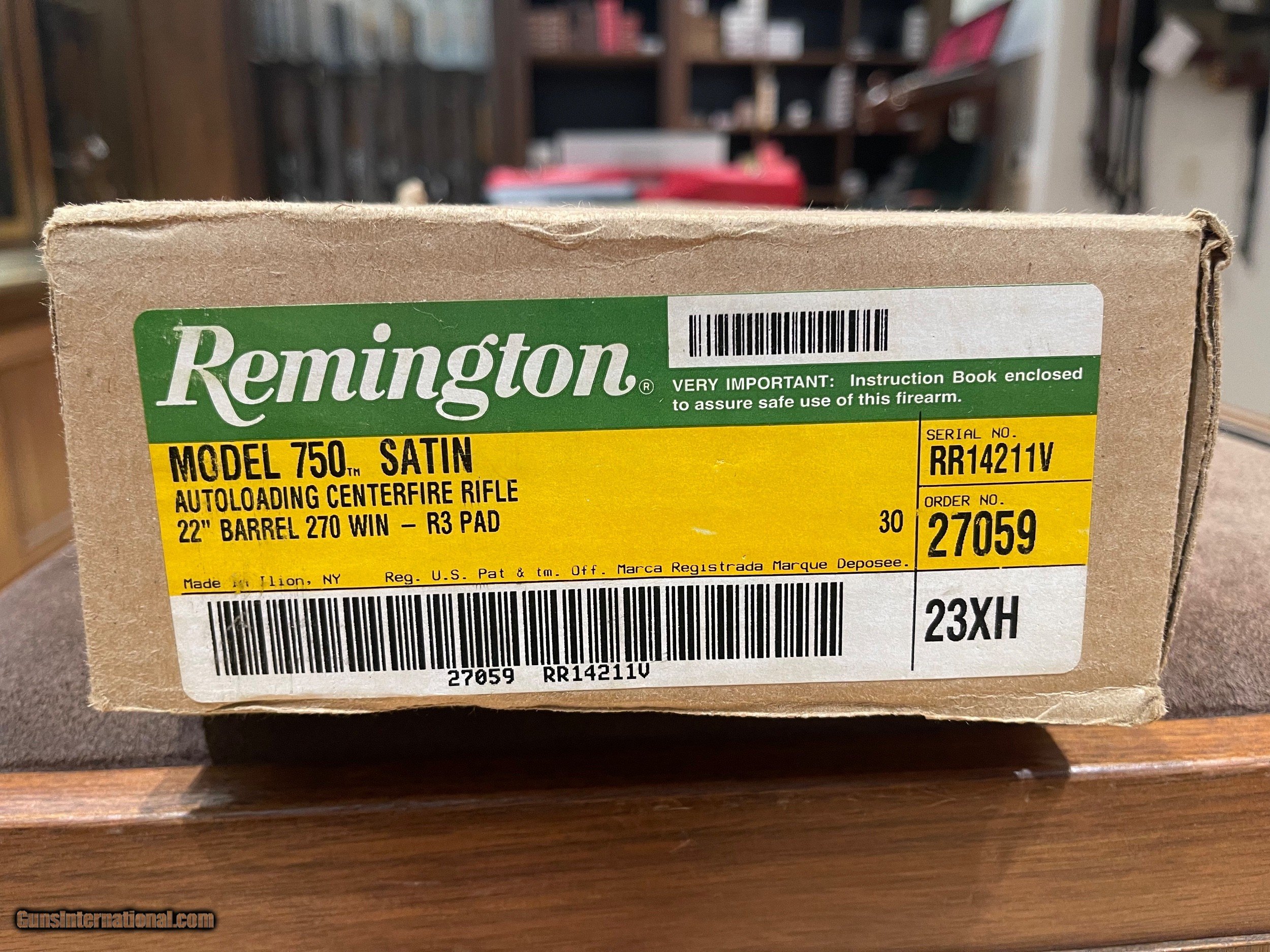 Description: New old stock. Remington 750 270win Satin with orginal box. This rifle looks to be unfired / used. SOLD Rifle Caliber: .270 Winchester |