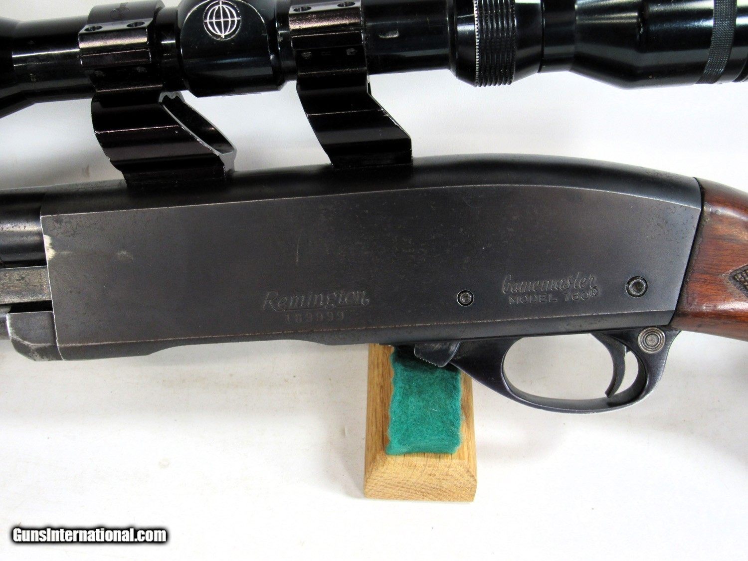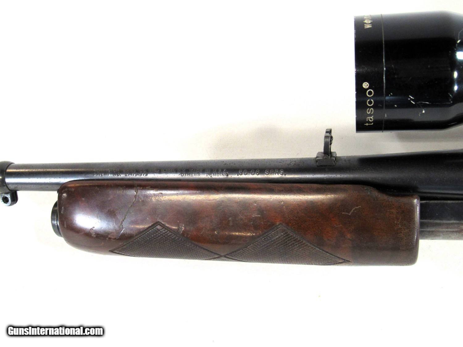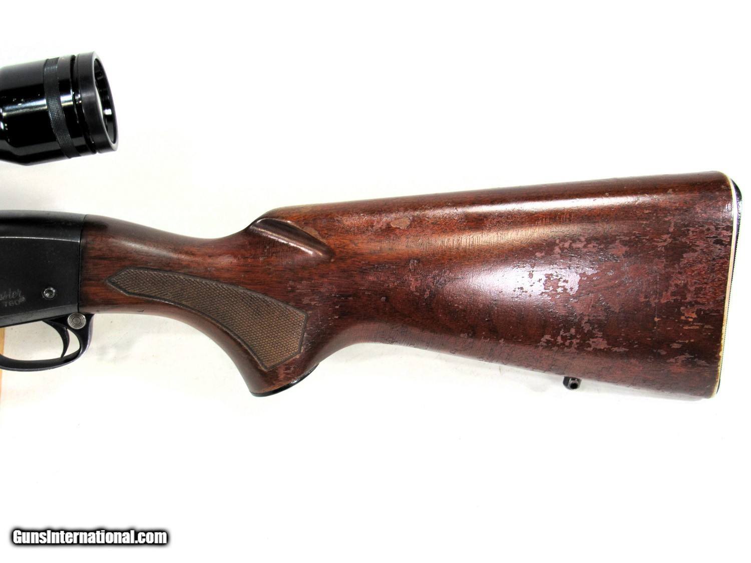 Description: REMINGTON 760 30-06. EARLY GUN WITH DIAMOND CHECKERING. 80% OVERALL WITH 3.5-10 TASCO. SOLD Rifle Caliber: .30-06 Springfield |