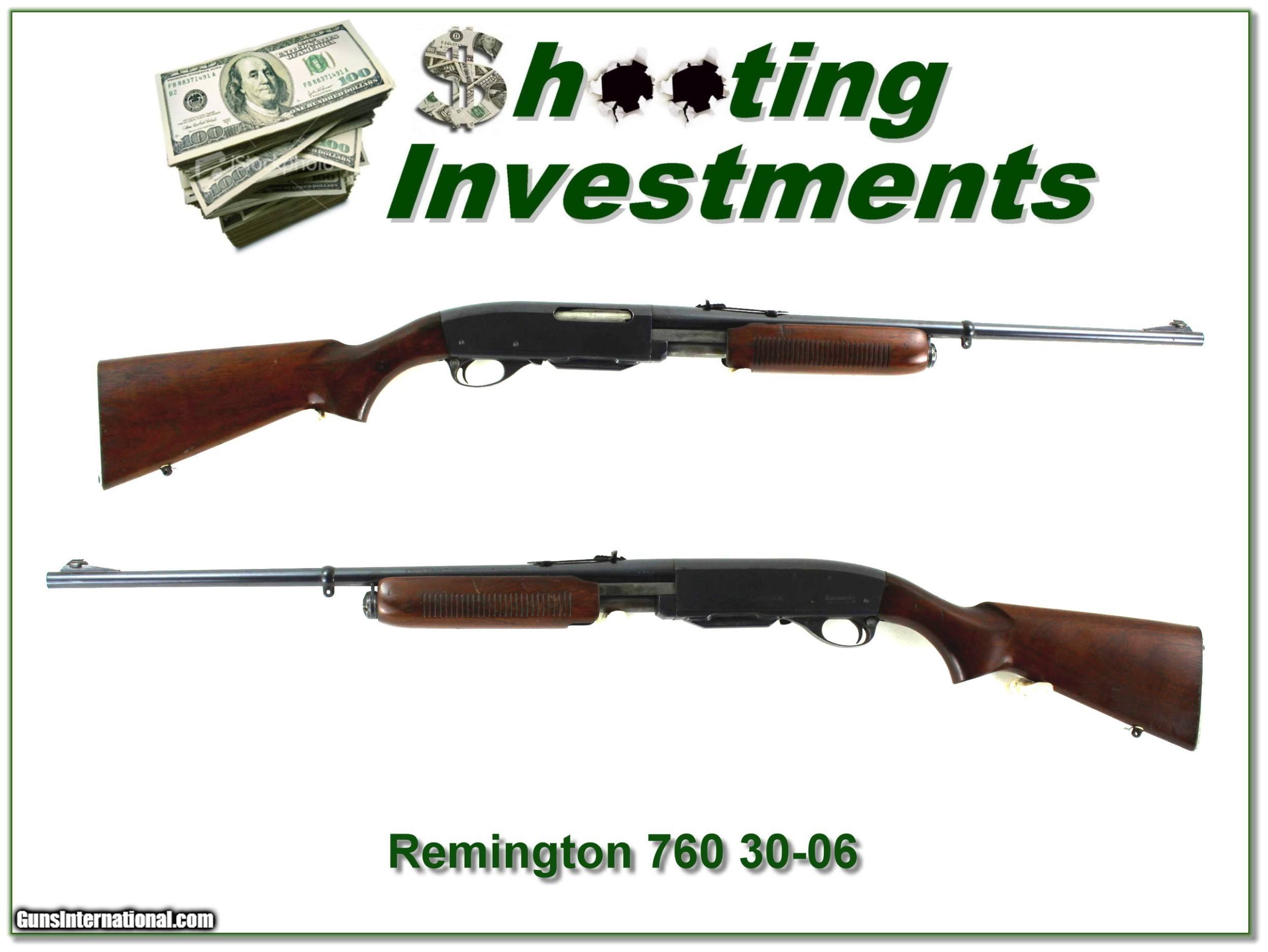 Description: Hunters, this is a very nice and first year, 1952, made Remington 760 in 30-06. It shows light use for it’s age and will make a classic deep woods hunt gun. It is a real Shooting Investment. Shipping and insurance is $49. Please email me with any questions or larger pictures. (Consign your quality firearms with Shooting Investments for only 12%! Let me know if you have any you would like to sell!) 22-1167 Payment: Payment is by Money Order, Cashiers Check or Personal Check. I can now also accept Credit Cards (MasterCard, Visa, Discover & American Express) with a 3% convenience fee. Shipping: The shipping charge will be listed in each description. It is $49 for most long guns. Some heavy guns, over 48in boxes or those insured for over $2000 will be higher. Shipments to Alaska and Hawaii are higher because air shipment is required. Most firearms are shipped on Tuesday and Thursday and usually in 5 days of receipt of payment. We package all shipments carefully and insure them. Optics are shipped Priority Mail and most other non-firearm shipments are shipped First Class. Returns: Our return policy is simple. If for any reason you are not pleased with your purchase, you may return your item for a full refund of purchase price. Ammunition cannot be returned. It is important to us that you are happy. Guns cannot be fired or dissembled before returning them and they must be returned in the same condition as received. Notification of a return must occur with-in 3 days of receipt at your dealer. Shipping, convenience and dealer fees are not refundable and are the responsibility of the buyer. Lay-a-way: If needed, we offer a 60 day lay-a-way option on most firearms. It is 1/3 now, 1/3 in 30 days and 1/3 in 60 days. Lay-a-way firearm sales are final and if not completed the first payment cannot be returned. Consigning your firearms with Shooting Investments: We will help you get top dollar for your firearms. While most local guns shops charge 20% or more, our fee is only 12% with a minimum of $75. At your local gun shop it might take months to sell. Selling on-line provides instant access to thousands of interested buyers. You won’t find any other on-line dealer willing to sell your firearms for only 12% or listing every gun on 3 separate s. Selling through an House typically costs the seller 15% and the buyer an addition 15% (so 30%) and you have to wait several months to sell and longer to receive funds. If properly priced, we will sell your firearms in a few weeks. Send us an email or give us a call and we’ll explain how easy it is for you to get top dollar. Trading: Trading for use is really just buying your gun to re-sell. If you have a gun you want to trade, please email a picture and we will let you know what we can give or it. You will always get more if we sell it for you on consignment. Help for California Buyers: We are happy to ship to California. It is the buyer’s responsibility to make sure any item you buy is legal in your state. We are also happy to help with your purchase of a firearm from someone other than us. If you see a gun you would like to buy but the seller can’t or won’t ship to California they can ship to use and we’ll then ship it to your California dealer. The cost for this service is only $30 + shipping. Let us know if we can help! SOLD |