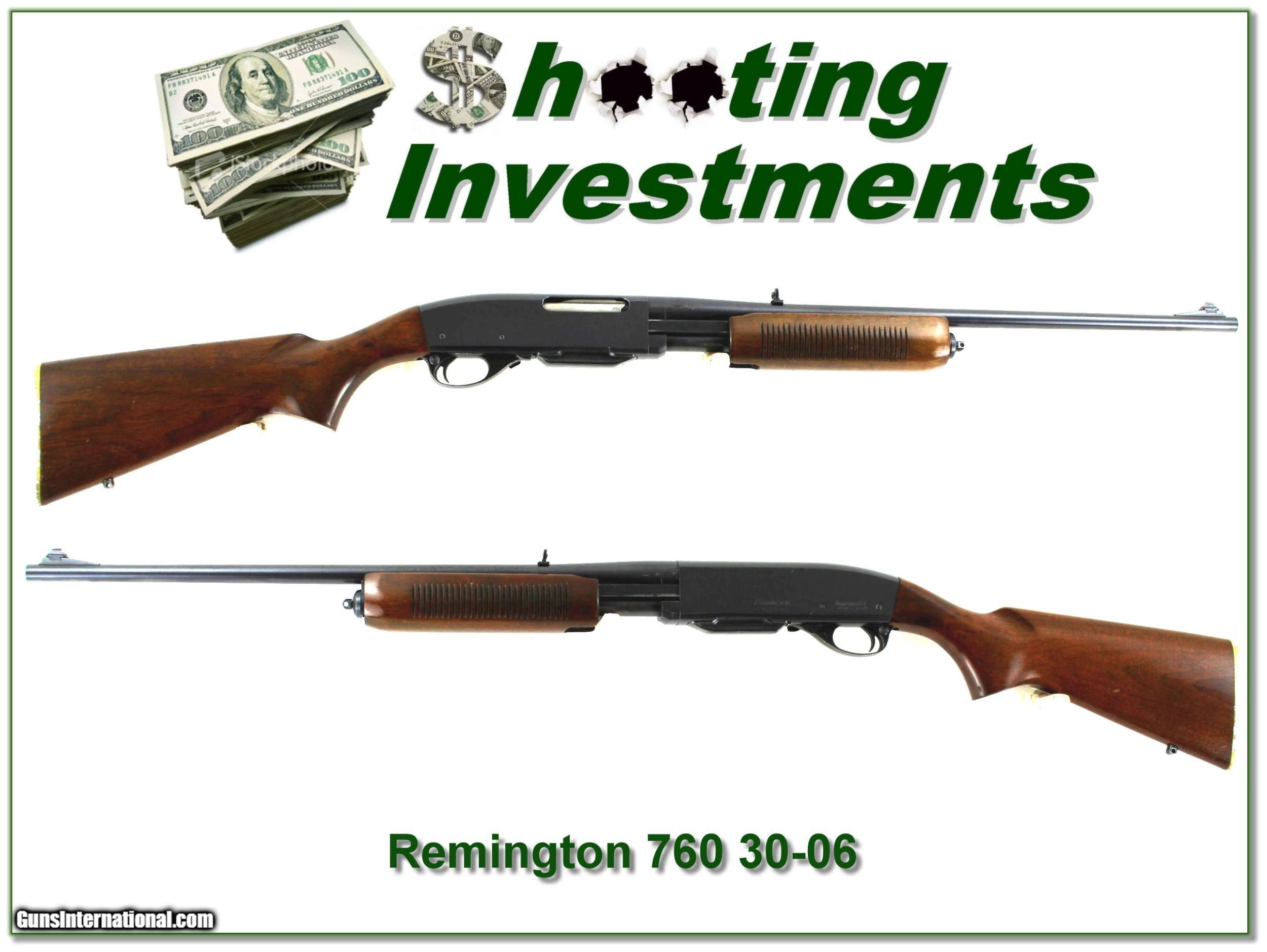 Description: This is a 1955 made Remington 760 Gamemaster in 30-06. It is in excellent condition for a 1955 gun with only a few marks from light use. I am sure not many rounds ever fired through this one! Shipping and insurance is $49. Please email me with any questions or larger pictures. (Consign your quality firearms with Shooting Investments for only 12%! Let me know if you have any you would like to sell!) 23-0169 Payment: Payment is by Money Order, Cashiers Check or Personal Check. I can now also accept Credit Cards (MasterCard, Visa, Discover & American Express) with a 3% convenience fee. Shipping: The shipping charge will be listed in each description. It is $49 for most long guns. Some heavy guns, over 48in boxes or those insured for over $2000 will be higher. Shipments to Alaska and Hawaii are higher because air shipment is required. Most firearms are shipped on Tuesday and Thursday and usually in 5 days of receipt of payment. We package all shipments carefully and insure them. Optics are shipped Priority Mail and most other non-firearm shipments are shipped First Class. Returns: Our return policy is simple. If for any reason you are not pleased with your purchase, you may return your item for a full refund of purchase price. Ammunition cannot be returned. It is important to us that you are happy. Guns cannot be fired or dissembled before returning them and they must be returned in the same condition as received. Notification of a return must occur with-in 3 days of receipt at your dealer. Shipping, convenience and dealer fees are not refundable and are the responsibility of the buyer. Lay-a-way: If needed, we offer a 60 day lay-a-way option on most firearms. It is 1/3 now, 1/3 in 30 days and 1/3 in 60 days. Lay-a-way firearm sales are final and if not completed the first payment cannot be returned. Consigning your firearms with Shooting Investments: We will help you get top dollar for your firearms. While most local guns shops charge 20% or more, our fee is only 12% with a minimum of $75. At your local gun shop it might take months to sell. Selling on-line provides instant access to thousands of interested buyers. You won’t find any other on-line dealer willing to sell your firearms for only 12% or listing every gun on 3 separate s. Selling through an House typically costs the seller 15% and the buyer an addition 15% (so 30%) and you have to wait several months to sell and longer to receive funds. If properly priced, we will sell your firearms in a few weeks. Send us an email or give us a call and we’ll explain how easy it is for you to get top dollar. Trading: Trading for use is really just buying your gun to re-sell. If you have a gun you want to trade, please email a picture and we will let you know what we can give or it. You will always get more if we sell it for you on consignment. Help for California Buyers: We are happy to ship to California. It is the buyer’s responsibility to make sure any item you buy is legal in your state. We are also happy to help with your purchase of a firearm from someone other than us. If you see a gun you would like to buy but the seller can’t or won’t ship to California they can ship to use and we’ll then ship it to your California dealer. The cost for this service is only $30 + shipping. Let us know if we can help! SOLD |