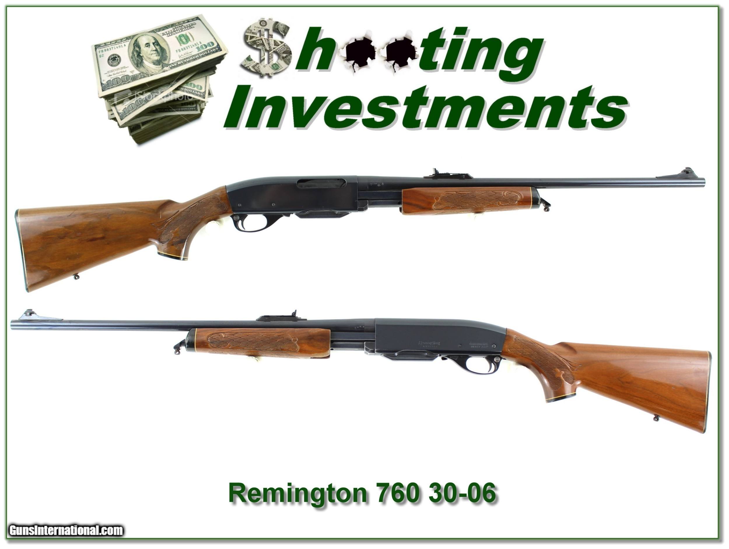 Description: This is a Remington 760 Gamemaster in 30-06. The blue is excellent with just a few marks. The wood is very good with a few marks mostly on the right side of the stock. It has a 22in barrel with open sights. Shipping and insurance is $39. Please email me with any questions or larger pictures. (Consign your quality firearms with Shooting Investments for only 12%! Let me know if you have any you would like to sell!) 20-1344 Payment: Payment is by Money Order, Cashier’s Check or Personal Check. I can now also accept Credit Cards (MasterCard, Visa, Discover & American Express) with a 3% convenience fee. Shipping: The shipping charge will be listed in each description. It is $39 for most firearms. Some heavy guns or those insured for over $2000 will be higher. Shipments to Alaska and Hawaii are higher because air shipment is required. Most firearms are shipped on Tuesday and Thursday and usually in 5 days of receipt of payment. We package all shipments carefully and insure them. Optics are shipped Priority Mail and most other non-firearm shipments are shipped First Class. Returns: Our return policy is simple. If for any reason you are not pleased with your purchase, you may return your item for a full refund of purchase price. Ammunition cannot be returned. It is important to us that you are happy. Guns cannot be fired or dissembled before returning them and they must be returned in the same condition as received. Notification of a return must occur with-in 3 days of receipt at your dealer. Shipping, convenience and dealer fees are not refundable and are the responsibility of the buyer. Lay-a-way: If needed, we offer a 60 day lay-a-way option on most firearms. It is 1/3 now, 1/3 in 30 days and 1/3 in 60 days. Lay-a-way firearm sales are final and if not completed the first payment cannot be returned. Consigning your firearms with Shooting Investments: We will help you get top dollar for your firearms. While most local guns shops charge 20% or more, our fee is only 12% with a minimum of $75. At your local gun shop it might take months to sell. Selling on-line provides instant access to thousands of interested buyers. You won’t find any other on-line dealer willing to sell your firearms for only 12% or listing every gun on 3 separate s. Selling through an House typically costs the seller 15% and the buyer an addition 15% (so 30%) and you have to wait several months to sell and longer to receive funds. If properly priced, we will sell your firearms in a few weeks. Send us an email or give us a call and we’ll explain how easy it is for you to get top dollar. Trading: Trading for use is really just buying your gun to re-sell. If you have a gun you want to trade, please email a picture and we will let you know what we can give or it. You will always get more if we sell it for you on consignment. Help for California Buyers: We are happy to ship to California. It is the buyer’s responsibility to make sure any item you buy is legal in your state. We are also happy to help with your purchase of a firearm from someone other than us. If you see a gun you would like to buy but the seller can’t or won’t ship to California they can ship to use and we’ll then ship it to your California dealer. The cost for this service is only $30 + shipping. Let us know if we can help! SOLD |