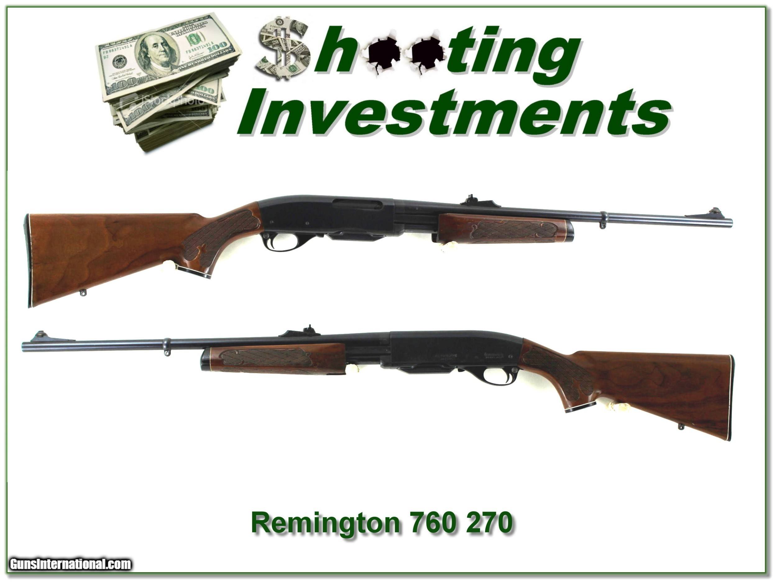 Description: This is a very nice 1977 made Remington 760 pump in the harder to find 270 Winchester. It has a 22in barrel and blue shows only a few minor marks. The wood has excellent figure no marks of note with some clear finish loss on the rear grip. This one will make a classic hunting gun and there will be no more! It is a real Shooting Investment. Shipping and insurance is $49. Please email me with any questions or larger pictures. (Consign your quality firearms with Shooting Investments for only 12%! Let me know if you have any you would like to sell!) 22-0373 Payment: Payment is by Money Order, Cashiers Check or Personal Check. I can now also accept Credit Cards (MasterCard, Visa, Discover & American Express) with a 3% convenience fee. Shipping: The shipping charge will be listed in each description. It is $49 for most long guns. Some heavy guns, over 48in boxes or those insured for over $2000 will be higher. Shipments to Alaska and Hawaii are higher because air shipment is required. Most firearms are shipped on Tuesday and Thursday and usually in 5 days of receipt of payment. We package all shipments carefully and insure them. Optics are shipped Priority Mail and most other non-firearm shipments are shipped First Class. Returns: Our return policy is simple. If for any reason you are not pleased with your purchase, you may return your item for a full refund of purchase price. Ammunition cannot be returned. It is important to us that you are happy. Guns cannot be fired or dissembled before returning them and they must be returned in the same condition as received. Notification of a return must occur with-in 3 days of receipt at your dealer. Shipping, convenience and dealer fees are not refundable and are the responsibility of the buyer. Lay-a-way: If needed, we offer a 60 day lay-a-way option on most firearms. It is 1/3 now, 1/3 in 30 days and 1/3 in 60 days. Lay-a-way firearm sales are final and if not completed the first payment cannot be returned. Consigning your firearms with Shooting Investments: We will help you get top dollar for your firearms. While most local guns shops charge 20% or more, our fee is only 12% with a minimum of $75. At your local gun shop it might take months to sell. Selling on-line provides instant access to thousands of interested buyers. You won’t find any other on-line dealer willing to sell your firearms for only 12% or listing every gun on 3 separate s. Selling through an House typically costs the seller 15% and the buyer an addition 15% (so 30%) and you have to wait several months to sell and longer to receive funds. If properly priced, we will sell your firearms in a few weeks. Send us an email or give us a call and we’ll explain how easy it is for you to get top dollar. Trading: Trading for use is really just buying your gun to re-sell. If you have a gun you want to trade, please email a picture and we will let you know what we can give or it. You will always get more if we sell it for you on consignment. Help for California Buyers: We are happy to ship to California. It is the buyer’s responsibility to make sure any item you buy is legal in your state. We are also happy to help with your purchase of a firearm from someone other than us. If you see a gun you would like to buy but the seller can’t or won’t ship to California they can ship to use and we’ll then ship it to your California dealer. The cost for this service is only $30 + shipping. Let us know if we can help! SOLD |