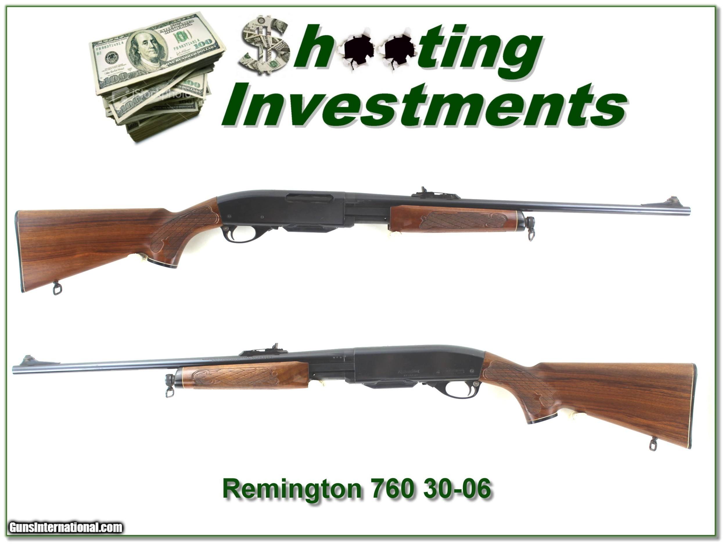 Description: This is an excellent condition Remington 760 Gamemaster 30-06. It has very nice wood with excellent grain. Both blue and wood are excellent with only a few minor marks. It will make a classic hunting gun or be a fine addition to your collection. It is a real Shooting Investment! Shipping and insurance is $39. Please email me with any questions or larger pictures. (Consign your quality firearms with Shooting Investments for only 12%! Let me know if you have any you would like to sell!) 21-1282 Payment: Payment is by Money Order, Cashiers Check or Personal Check. I can now also accept Credit Cards (MasterCard, Visa, Discover & American Express) with a 3% convenience fee. Shipping: The shipping charge will be listed in each description. It is $39 for most firearms. Some heavy guns or those insured for over $2000 will be higher. Shipments to Alaska and Hawaii are higher because air shipment is required. Most firearms are shipped on Tuesday and Thursday and usually in 5 days of receipt of payment. We package all shipments carefully and insure them. Optics are shipped Priority Mail and most other non-firearm shipments are shipped First Class. Returns: Our return policy is simple. If for any reason you are not pleased with your purchase, you may return your item for a full refund of purchase price. Ammunition cannot be returned. It is important to us that you are happy. Guns cannot be fired or dissembled before returning them and they must be returned in the same condition as received. Notification of a return must occur with-in 3 days of receipt at your dealer. Shipping, convenience and dealer fees are not refundable and are the responsibility of the buyer. Lay-a-way: If needed, we offer a 60 day lay-a-way option on most firearms. It is 1/3 now, 1/3 in 30 days and 1/3 in 60 days. Lay-a-way firearm sales are final and if not completed the first payment cannot be returned. Consigning your firearms with Shooting Investments: We will help you get top dollar for your firearms. While most local guns shops charge 20% or more, our fee is only 12% with a minimum of $75. At your local gun shop it might take months to sell. Selling on-line provides instant access to thousands of interested buyers. You won’t find any other on-line dealer willing to sell your firearms for only 12% or listing every gun on 3 separate s. Selling through an House typically costs the seller 15% and the buyer an addition 15% (so 30%) and you have to wait several months to sell and longer to receive funds. If properly priced, we will sell your firearms in a few weeks. Send us an email or give us a call and we’ll explain how easy it is for you to get top dollar. Trading: Trading for use is really just buying your gun to re-sell. If you have a gun you want to trade, please email a picture and we will let you know what we can give or it. You will always get more if we sell it for you on consignment. Help for California Buyers: We are happy to ship to California. It is the buyer’s responsibility to make sure any item you buy is legal in your state. We are also happy to help with your purchase of a firearm from someone other than us. If you see a gun you would like to buy but the seller can’t or won’t ship to California they can ship to use and we’ll then ship it to your California dealer. The cost for this service is only $30 + shipping. Let us know if we can help! SOLD |