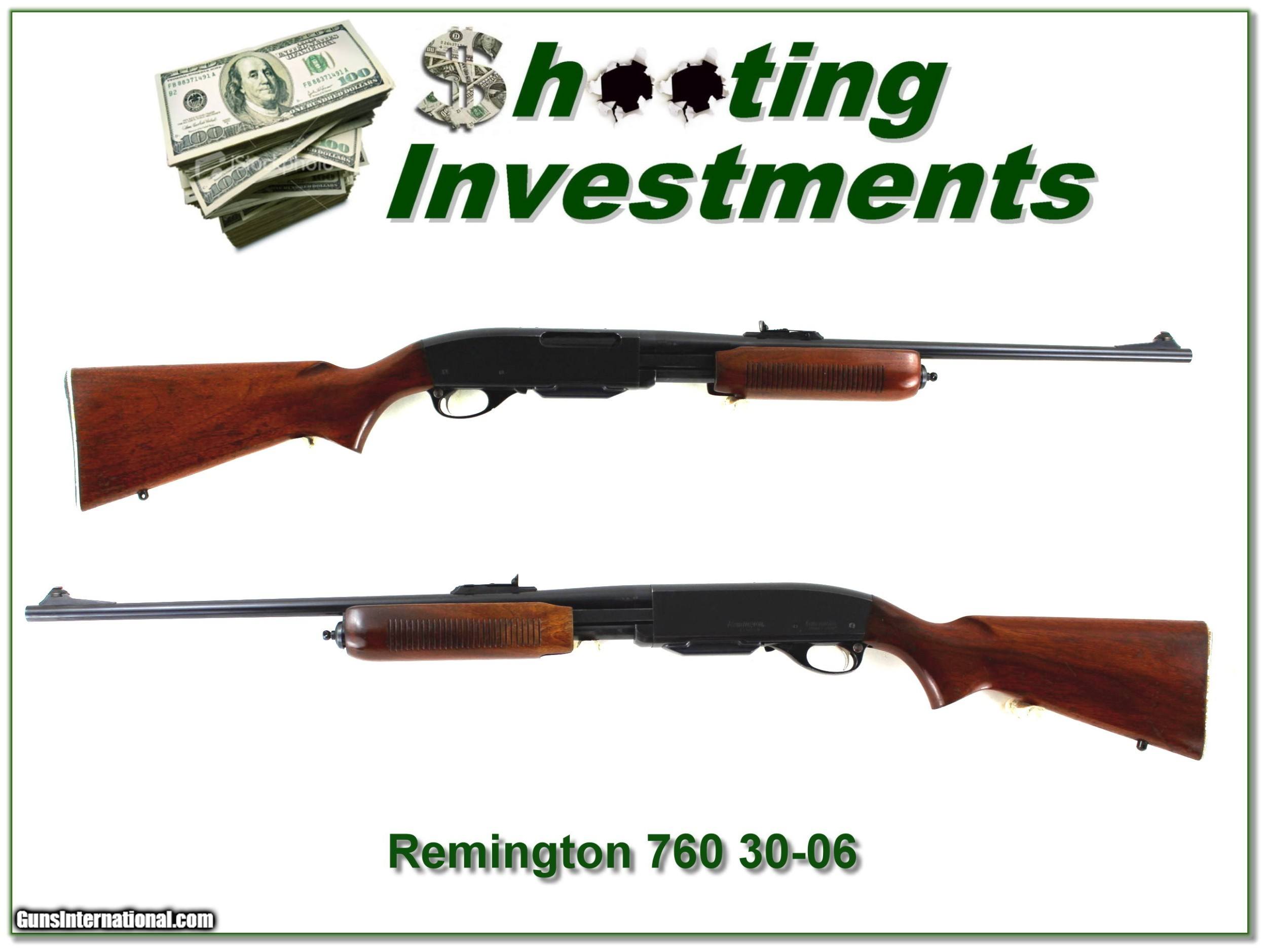 Description: This is a 1961 made Remington 760 in 30-06. It has excellent blue with only light edge thinning. I don’t believe a scope was ever mounted. The wood has a few marks I expect as much from storage as use. It will make a classic deep woods hunting gun! It is a real Shooting Investment! Shipping and insurance is $49. Please email me with any questions or larger pictures. (Consign your quality firearms with Shooting Investments for only 12%! Let me know if you have any you would like to sell!) 23-0170 Payment: Payment is by Money Order, Cashiers Check or Personal Check. I can now also accept Credit Cards (MasterCard, Visa, Discover & American Express) with a 3% convenience fee. Shipping: The shipping charge will be listed in each description. It is $49 for most long guns. Some heavy guns, over 48in boxes or those insured for over $2000 will be higher. Shipments to Alaska and Hawaii are higher because air shipment is required. Most firearms are shipped on Tuesday and Thursday and usually in 5 days of receipt of payment. We package all shipments carefully and insure them. Optics are shipped Priority Mail and most other non-firearm shipments are shipped First Class. Returns: Our return policy is simple. If for any reason you are not pleased with your purchase, you may return your item for a full refund of purchase price. Ammunition cannot be returned. It is important to us that you are happy. Guns cannot be fired or dissembled before returning them and they must be returned in the same condition as received. Notification of a return must occur with-in 3 days of receipt at your dealer. Shipping, convenience and dealer fees are not refundable and are the responsibility of the buyer. Lay-a-way: If needed, we offer a 60 day lay-a-way option on most firearms. It is 1/3 now, 1/3 in 30 days and 1/3 in 60 days. Lay-a-way firearm sales are final and if not completed the first payment cannot be returned. Consigning your firearms with Shooting Investments: We will help you get top dollar for your firearms. While most local guns shops charge 20% or more, our fee is only 12% with a minimum of $75. At your local gun shop it might take months to sell. Selling on-line provides instant access to thousands of interested buyers. You won’t find any other on-line dealer willing to sell your firearms for only 12% or listing every gun on 3 separate s. Selling through an House typically costs the seller 15% and the buyer an addition 15% (so 30%) and you have to wait several months to sell and longer to receive funds. If properly priced, we will sell your firearms in a few weeks. Send us an email or give us a call and we’ll explain how easy it is for you to get top dollar. Trading: Trading for use is really just buying your gun to re-sell. If you have a gun you want to trade, please email a picture and we will let you know what we can give or it. You will always get more if we sell it for you on consignment. Help for California Buyers: We are happy to ship to California. It is the buyer’s responsibility to make sure any item you buy is legal in your state. We are also happy to help with your purchase of a firearm from someone other than us. If you see a gun you would like to buy but the seller can’t or won’t ship to California they can ship to use and we’ll then ship it to your California dealer. The cost for this service is only $30 + shipping. Let us know if we can help! SOLD |