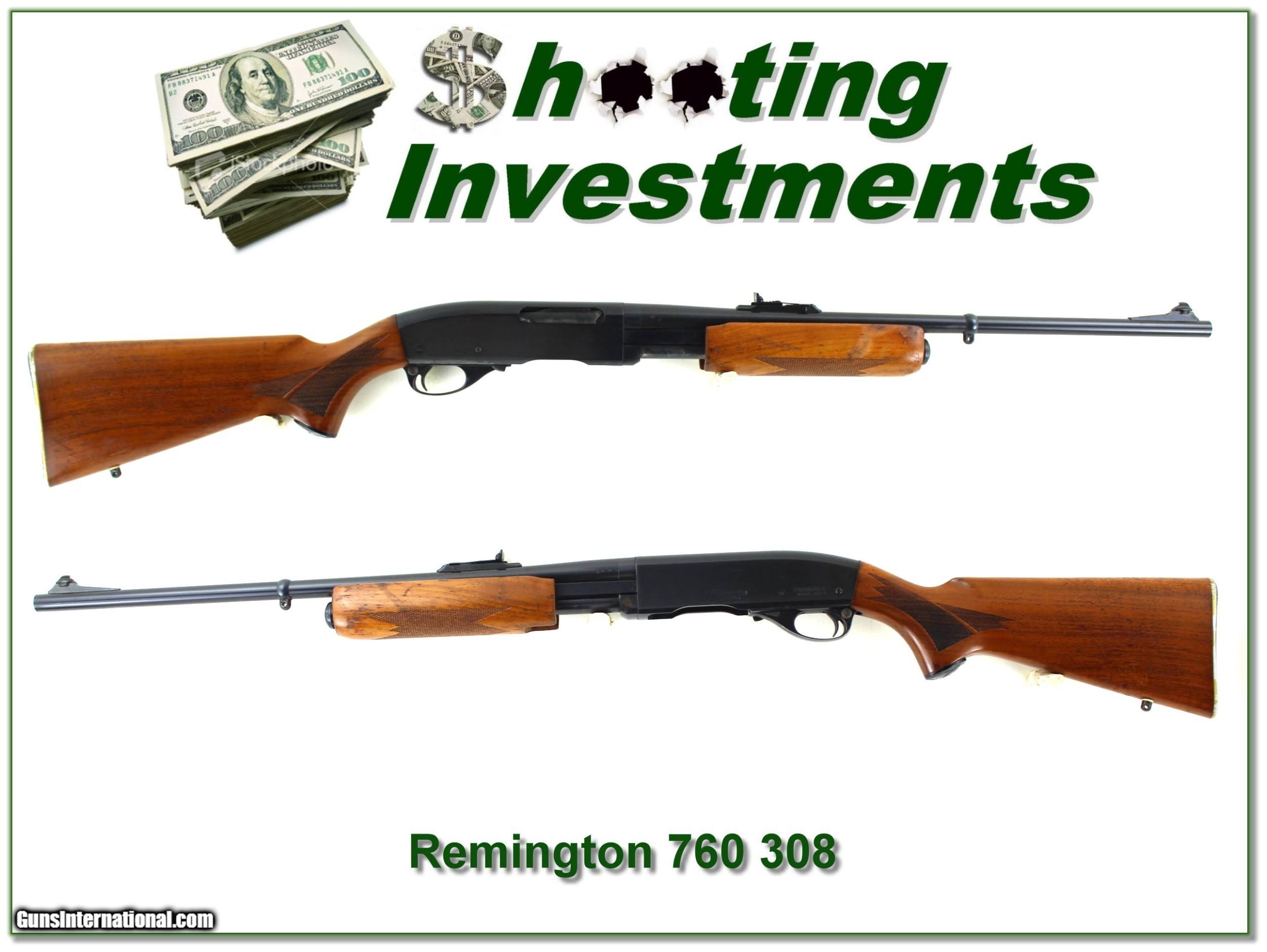 Description: This is a 1966 made Remington 760 Woodsmaster in 308 Winchester. The metal is excellent, and the wood has only a few minor marks. Note that I do not have the magazine but that aren’t hard to find. This will make a classic hunting gun and there will be no more. Shipping and insurance is $39. Please email me with any questions or larger pictures. (Consign your quality firearms with Shooting Investments for only 12%! Let me know if you have any you would like to sell!) 21-1487 Payment: Payment is by Money Order, Cashiers Check or Personal Check. I can now also accept Credit Cards (MasterCard, Visa, Discover & American Express) with a 3% convenience fee. Shipping: The shipping charge will be listed in each description. It is $39 for most firearms. Some heavy guns or those insured for over $2000 will be higher. Shipments to Alaska and Hawaii are higher because air shipment is required. Most firearms are shipped on Tuesday and Thursday and usually in 5 days of receipt of payment. We package all shipments carefully and insure them. Optics are shipped Priority Mail and most other non-firearm shipments are shipped First Class. Returns: Our return policy is simple. If for any reason you are not pleased with your purchase, you may return your item for a full refund of purchase price. Ammunition cannot be returned. It is important to us that you are happy. Guns cannot be fired or dissembled before returning them and they must be returned in the same condition as received. Notification of a return must occur with-in 3 days of receipt at your dealer. Shipping, convenience and dealer fees are not refundable and are the responsibility of the buyer. Lay-a-way: If needed, we offer a 60 day lay-a-way option on most firearms. It is 1/3 now, 1/3 in 30 days and 1/3 in 60 days. Lay-a-way firearm sales are final and if not completed the first payment cannot be returned. Consigning your firearms with Shooting Investments: We will help you get top dollar for your firearms. While most local guns shops charge 20% or more, our fee is only 12% with a minimum of $75. At your local gun shop it might take months to sell. Selling on-line provides instant access to thousands of interested buyers. You won’t find any other on-line dealer willing to sell your firearms for only 12% or listing every gun on 3 separate s. Selling through an House typically costs the seller 15% and the buyer an addition 15% (so 30%) and you have to wait several months to sell and longer to receive funds. If properly priced, we will sell your firearms in a few weeks. Send us an email or give us a call and we’ll explain how easy it is for you to get top dollar. Trading: Trading for use is really just buying your gun to re-sell. If you have a gun you want to trade, please email a picture and we will let you know what we can give or it. You will always get more if we sell it for you on consignment. Help for California Buyers: We are happy to ship to California. It is the buyer’s responsibility to make sure any item you buy is legal in your state. We are also happy to help with your purchase of a firearm from someone other than us. If you see a gun you would like to buy but the seller can’t or won’t ship to California they can ship to use and we’ll then ship it to your California dealer. The cost for this service is only $30 + shipping. Let us know if we can help! SOLD |