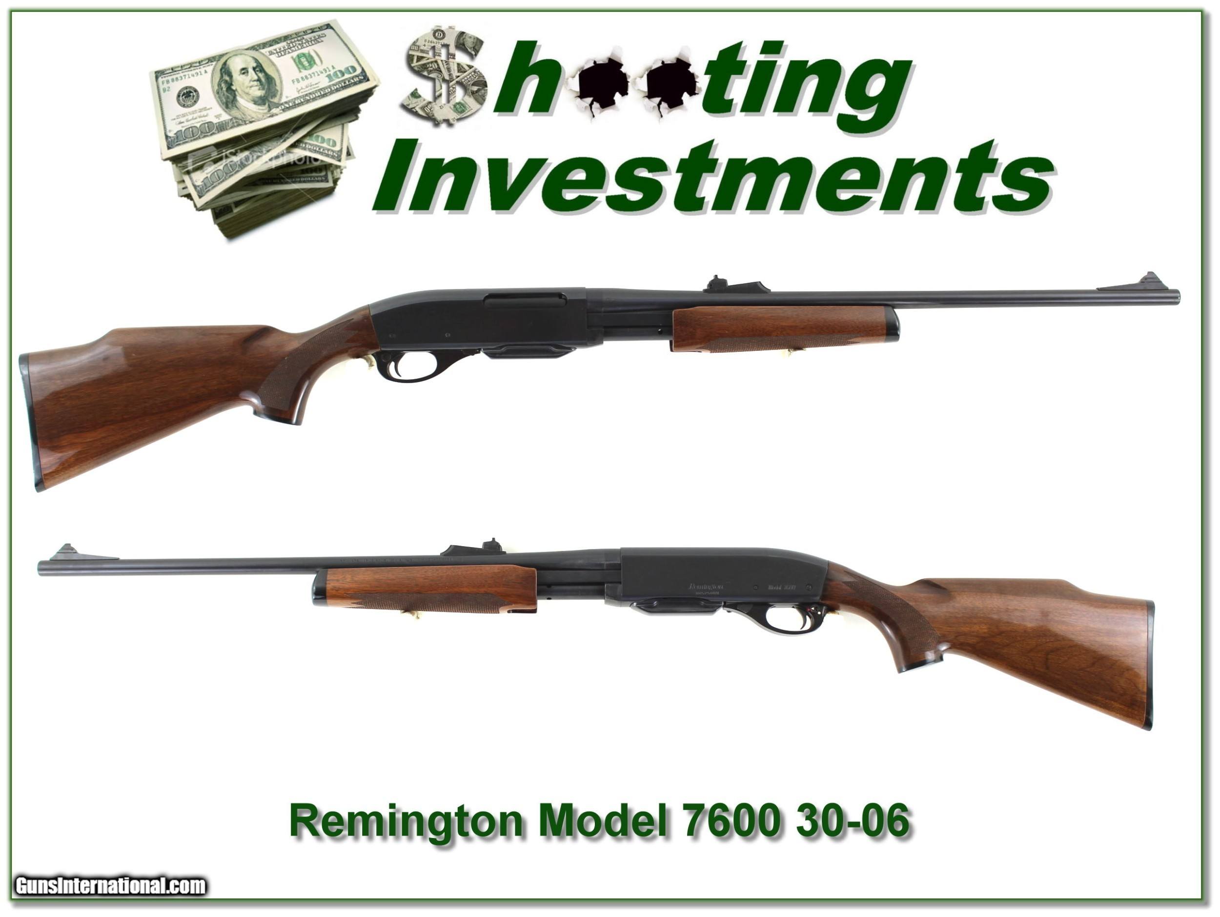 Description: Collectors and hunters, this is a like new condition Remington 7600 30-06. It looks unfired and I find no marks! There will never be more of these made! It is for sure a Shooting Investment. Shipping and insurance is $39. Please email me with any questions or larger pictures. (Consign your quality firearms with Shooting Investments for only 12%! Let me know if you have any you would like to sell!) 21-0902 Payment: Payment is by Money Order, Cashiers Check or Personal Check. I can now also accept Credit Cards (MasterCard, Visa, Discover & American Express) with a 3% convenience fee. Shipping: The shipping charge will be listed in each description. It is $39 for most firearms. Some heavy guns or those insured for over $2000 will be higher. Shipments to Alaska and Hawaii are higher because air shipment is required. Most firearms are shipped on Tuesday and Thursday and usually in 5 days of receipt of payment. We package all shipments carefully and insure them. Optics are shipped Priority Mail and most other non-firearm shipments are shipped First Class. Returns: Our return policy is simple. If for any reason you are not pleased with your purchase, you may return your item for a full refund of purchase price. Ammunition cannot be returned. It is important to us that you are happy. Guns cannot be fired or dissembled before returning them and they must be returned in the same condition as received. Notification of a return must occur with-in 3 days of receipt at your dealer. Shipping, convenience and dealer fees are not refundable and are the responsibility of the buyer. Lay-a-way: If needed, we offer a 60 day lay-a-way option on most firearms. It is 1/3 now, 1/3 in 30 days and 1/3 in 60 days. Lay-a-way firearm sales are final and if not completed the first payment cannot be returned. Consigning your firearms with Shooting Investments: We will help you get top dollar for your firearms. While most local guns shops charge 20% or more, our fee is only 12% with a minimum of $75. At your local gun shop it might take months to sell. Selling on-line provides instant access to thousands of interested buyers. You won’t find any other on-line dealer willing to sell your firearms for only 12% or listing every gun on 3 separate s. Selling through an House typically costs the seller 15% and the buyer an addition 15% (so 30%) and you have to wait several months to sell and longer to receive funds. If properly priced, we will sell your firearms in a few weeks. Send us an email or give us a call and we’ll explain how easy it is for you to get top dollar. Trading: Trading for use is really just buying your gun to re-sell. If you have a gun you want to trade, please email a picture and we will let you know what we can give or it. You will always get more if we sell it for you on consignment. Help for California Buyers: We are happy to ship to California. It is the buyer’s responsibility to make sure any item you buy is legal in your state. We are also happy to help with your purchase of a firearm from someone other than us. If you see a gun you would like to buy but the seller can’t or won’t ship to California they can ship to use and we’ll then ship it to your California dealer. The cost for this service is only $30 + shipping. Let us know if we can help! SOLD |