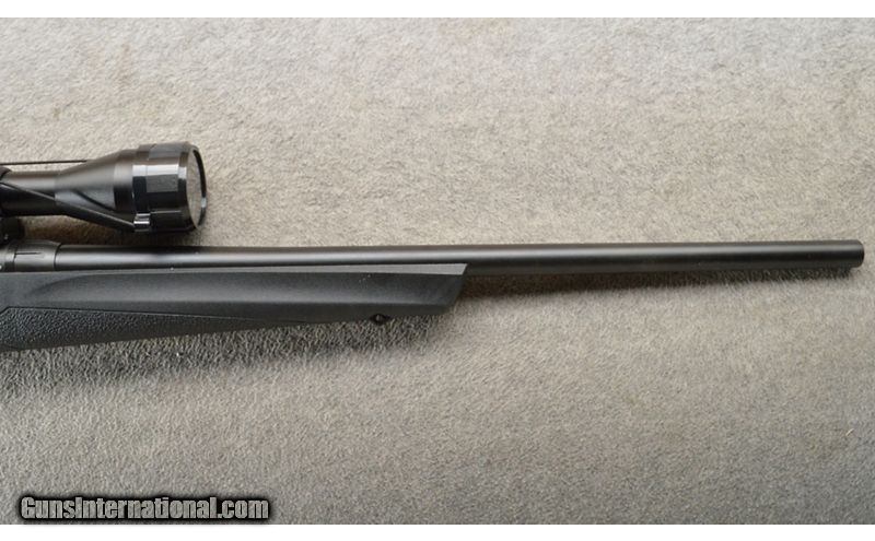 Description: Modern but classical design pillar bedded synthetic stock. Pillars free float barrel for optimal accuracy. Fed by a steel detachable box magazine with steel latch. CrossFire Trigger with two position safety is factory set at 3.5 pounds. Adjustable trigger block trigger. SuperCell Recoil Pad with up to 54% recoil reduction. Black synthetic stock and forearm. Includes a pre-mounted and bore-sighted Weaver 3-9x40mm riflescope. Stock photos. .243 Winchester SOLD Chambers: Bolt action repeater. Metal Condition: New in the box. Wood Condition: New in the box. Bore Condition: New in the box. Triggers: Adjustable trigger factory set a 3.5 lbs. Stock Dimensions: 12 1/2" LOP. Fore End: Black synthetic with molded sling mounts and finger grooves. Weight: 8 Lbs Even as Pictured Sights: Comes with a Weaver 3-9X40 mounted and bore sighted rifle scope. Item Location: Owatonna, MN |