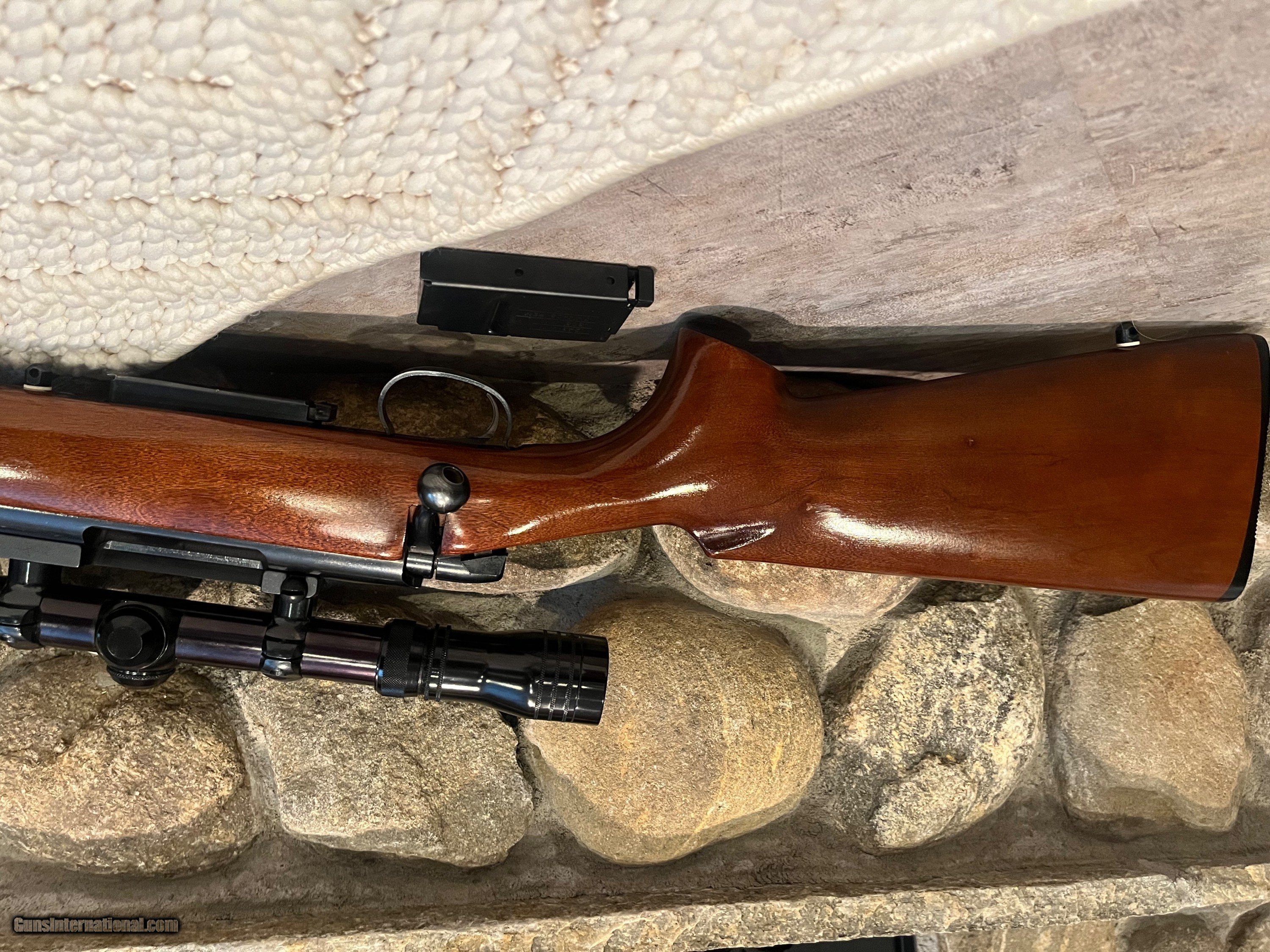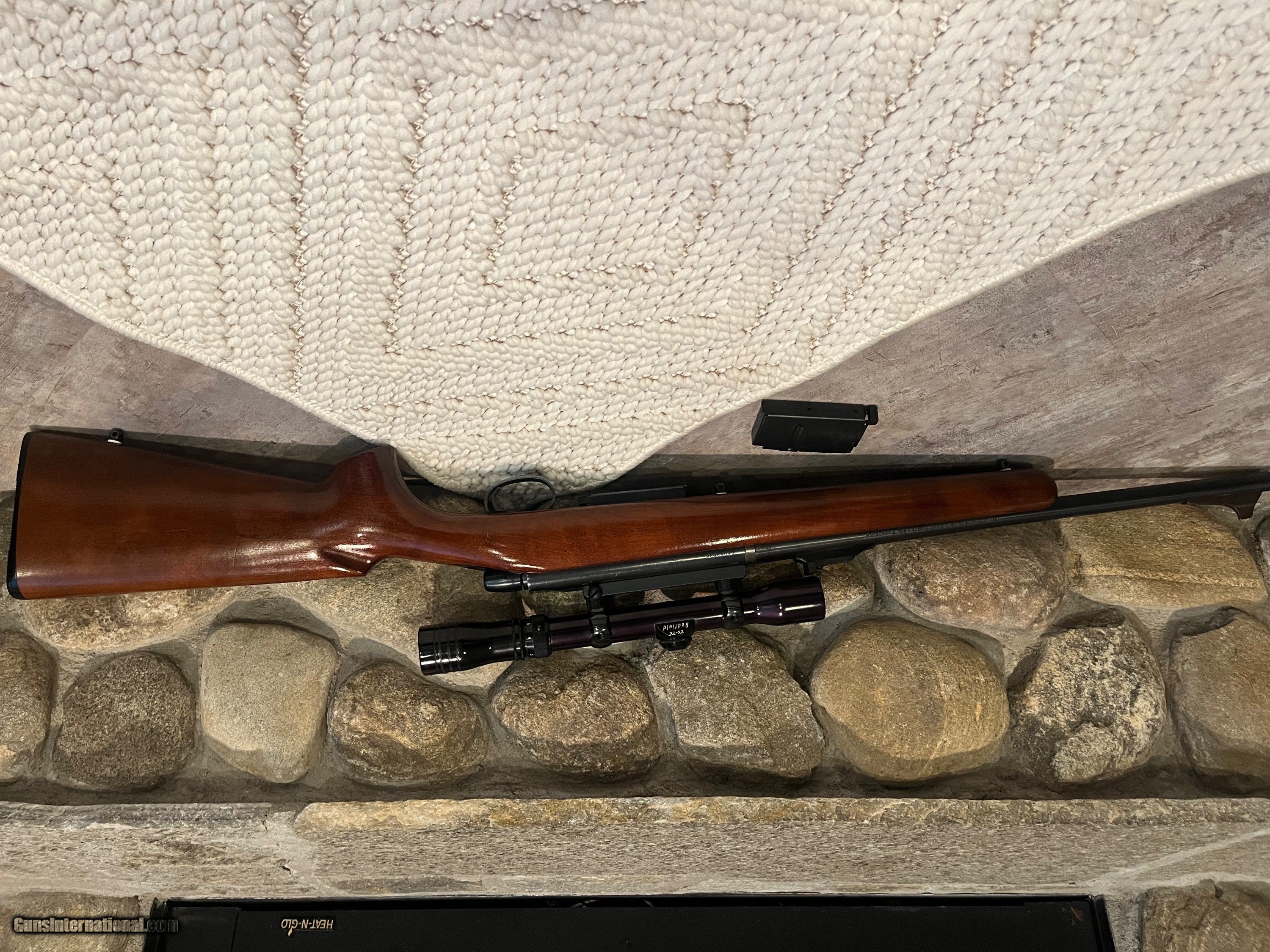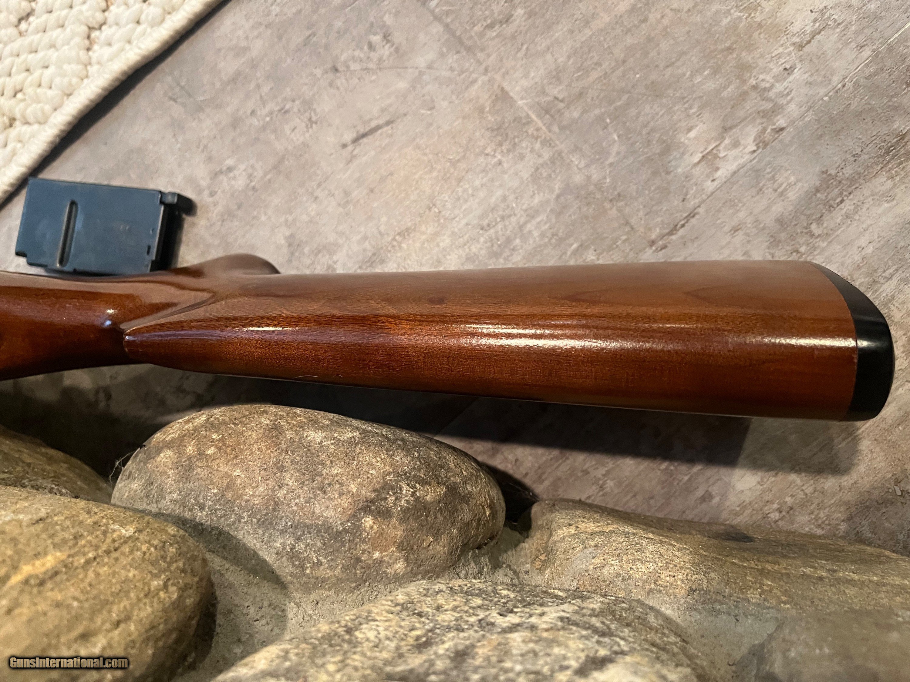 Description: Remington model 788 chambered in 7mm-08 with an 18 1/2 inch barrel. This gun is in good condition with some very minor indentations in wood and some light bluing fade as pictured. This is a hard caliber to find as it was only manufactured for one year in 1980. You don't see this caliber come up for sale very often. Included is a vintage Redfield wideview duplex 2X-7X scope and 2 clips. SOLD Rifle Caliber: 7mm-08 Remington Manufacturer: Remington Model: 788 |